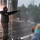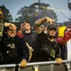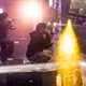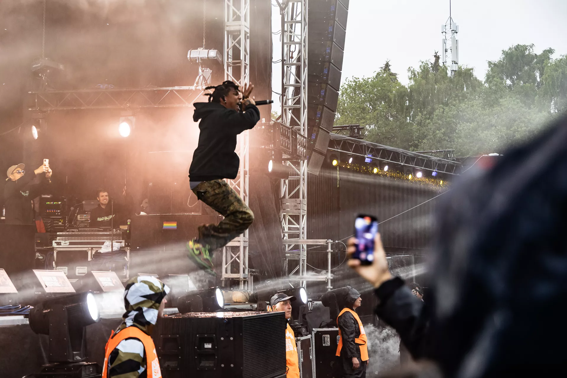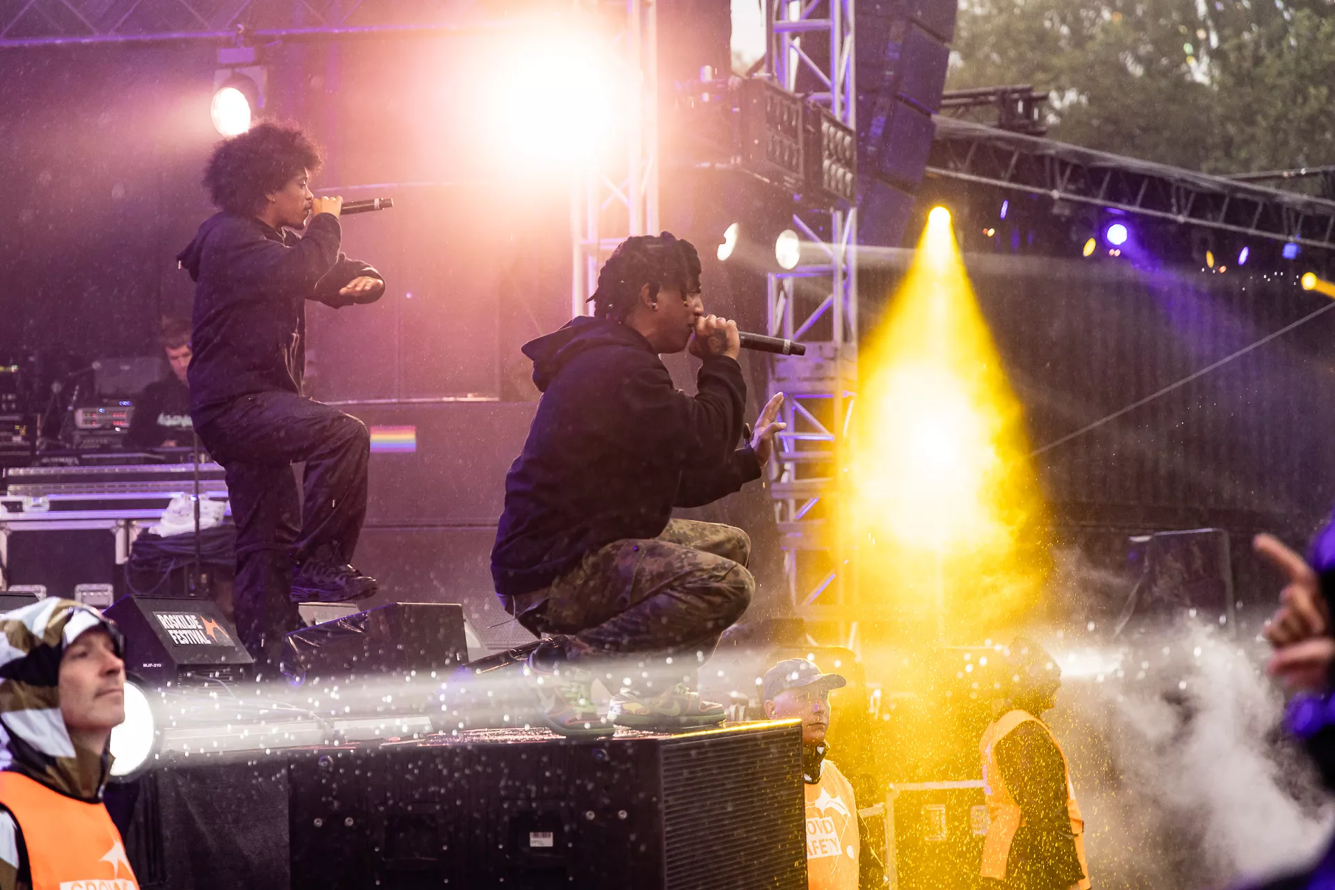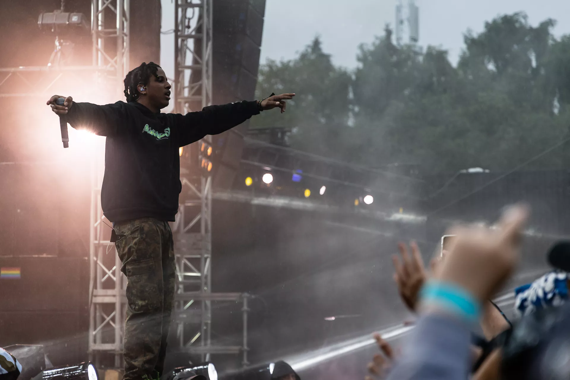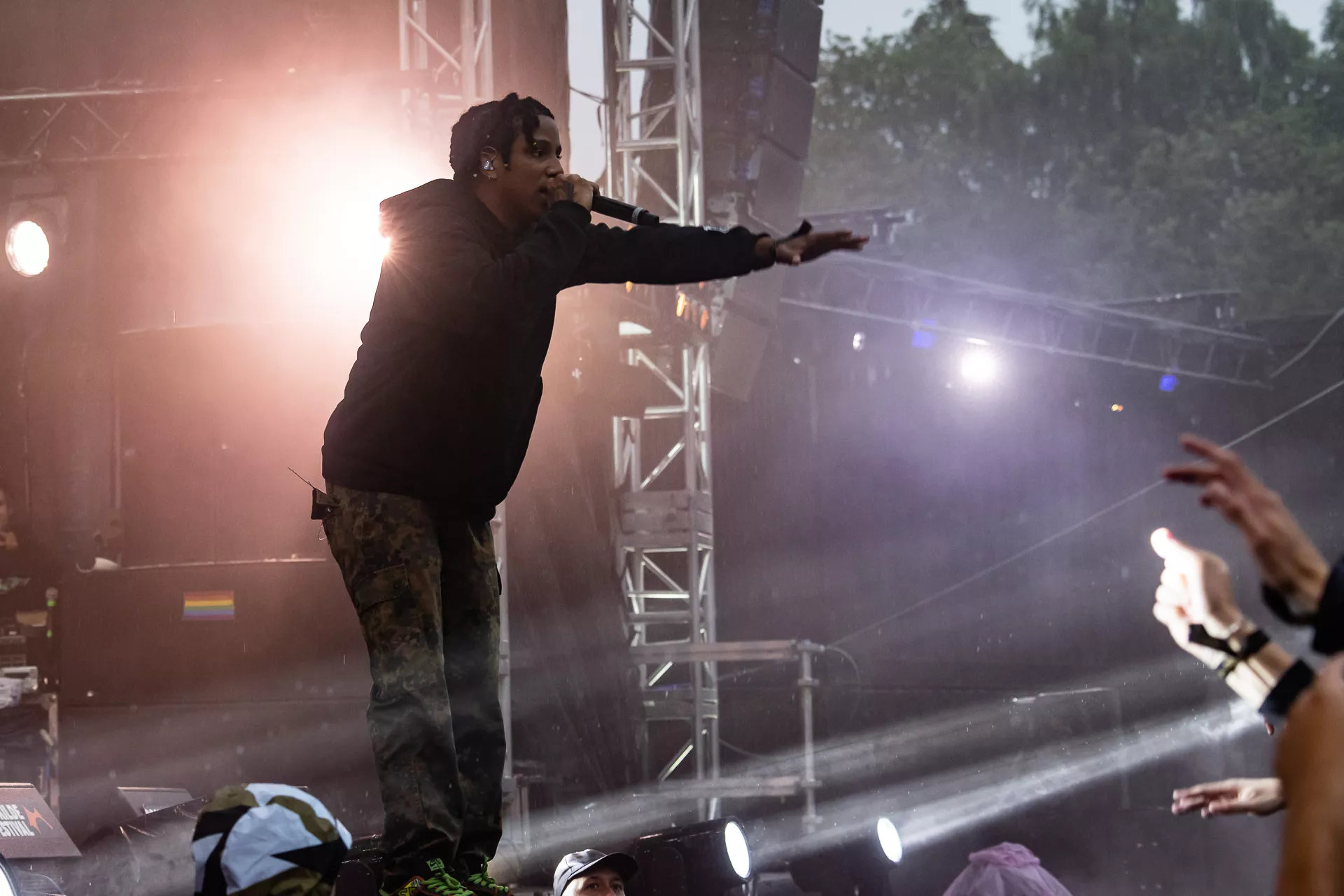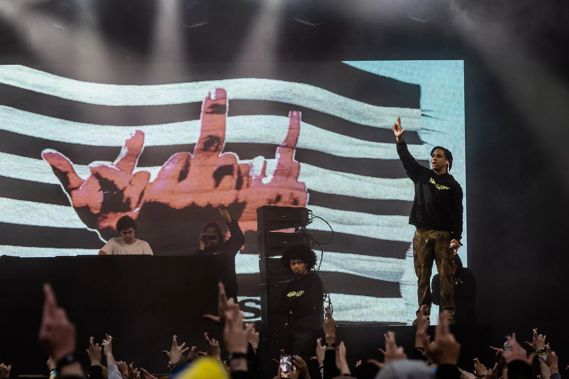 Til hele AG Clubs koncert på Apollo blafrede en grafik med et sort og hvidt amerikansk flag med