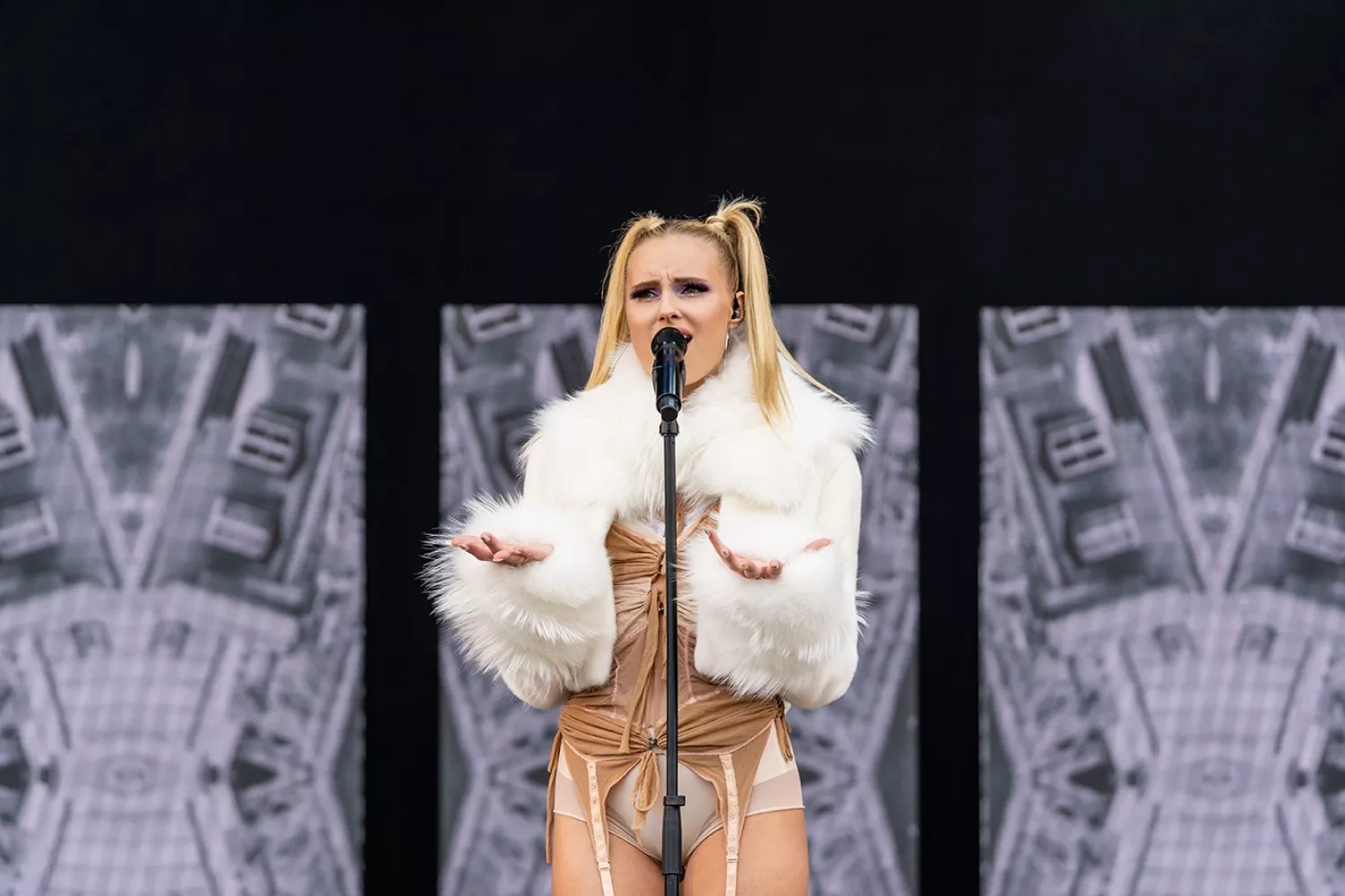 Men Clara går upåvirket på scenen. Med sig har hun en klassisk bandopstilling i form af trommer, bas, guitar og keys. Med en hel masse dansere oven i hatten, er der lagt op til en solid popkoncert.