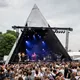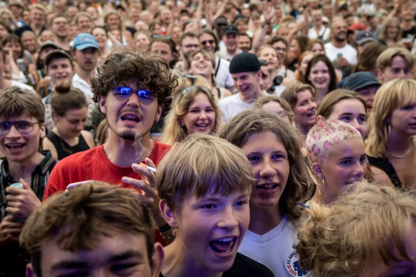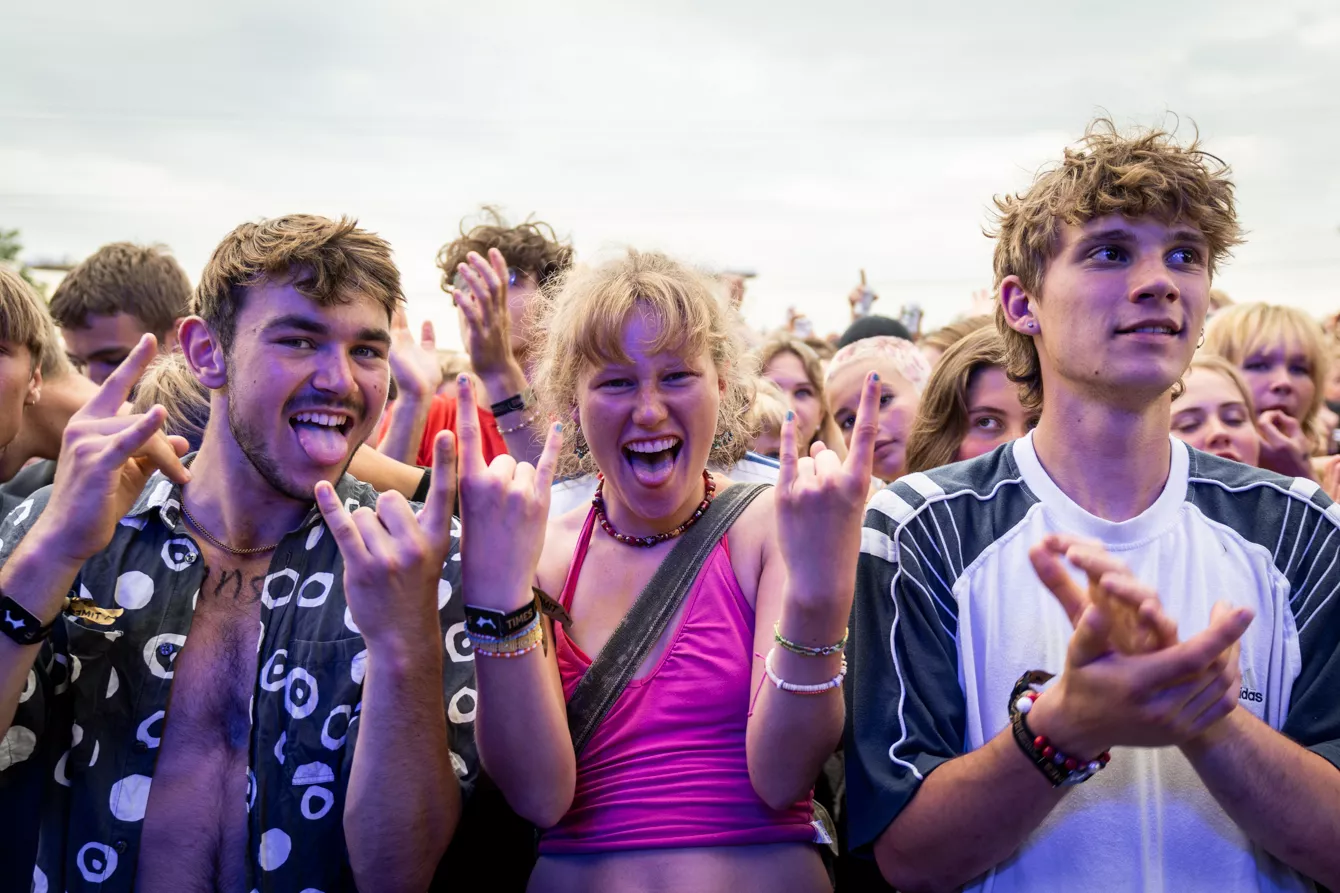18:30 har en stor forsamling af musikalske early-birds tilsluttet sig græstæppet foran Rising-scenen.
