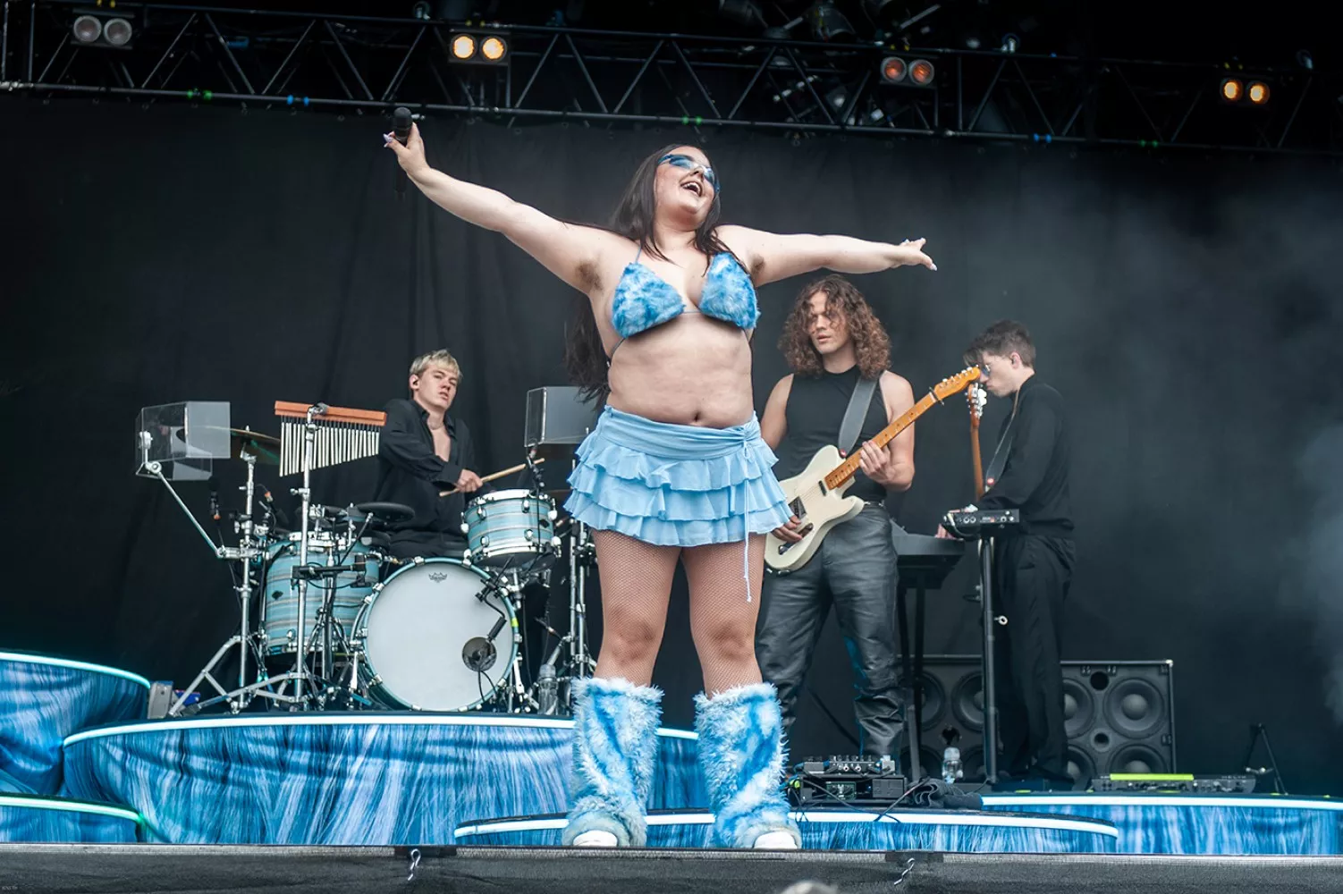 Med 10 minutters forsinkelse, grundet udfordringer ved indgangen til festivalen, går Jada på scenen, mens publikum stadig strømmer til.