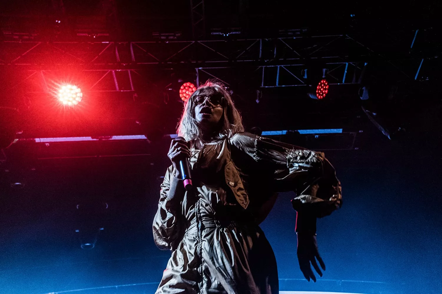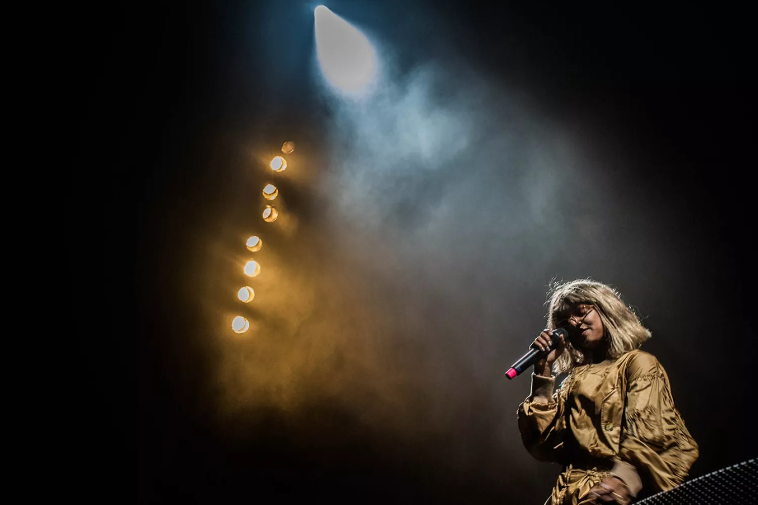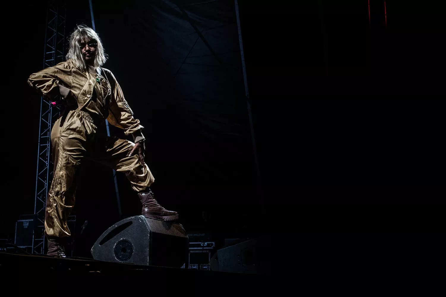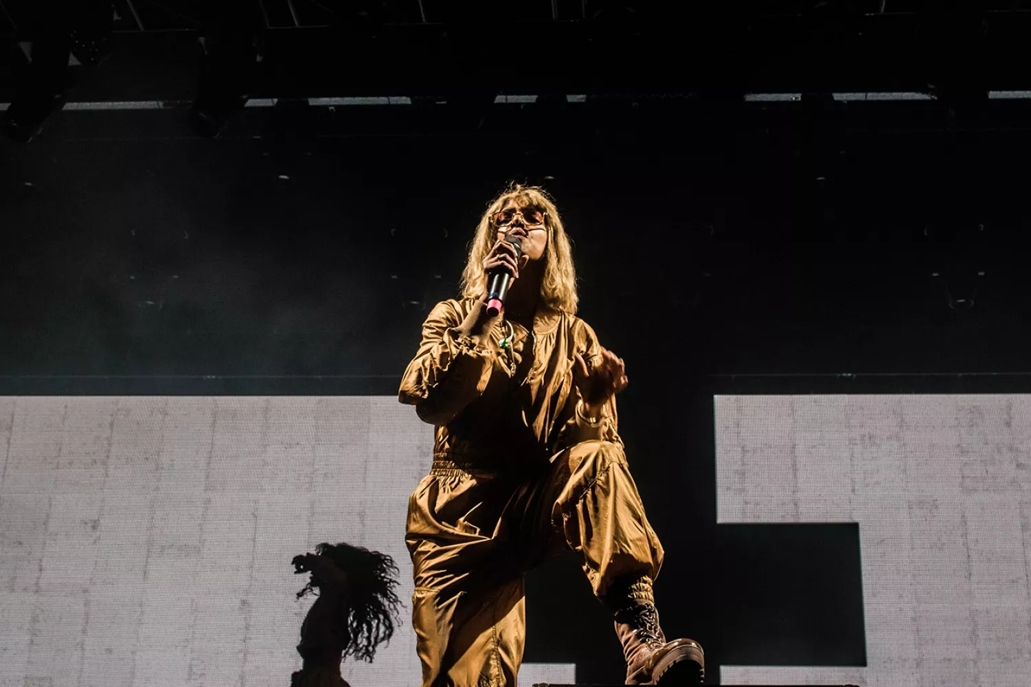 Maya Arulpragasm var ikke vildt meget til stede andet end sine delvist sungne og rappede nakkebrækkende vers i næsten konstant høj intensitet. Hun fik dog kontakt til publikum et par mærkbare gange i løbet af midnatsfesten. Det startede med typiske bemærkninger om at tro lidt på gud og lidt på videnskaben