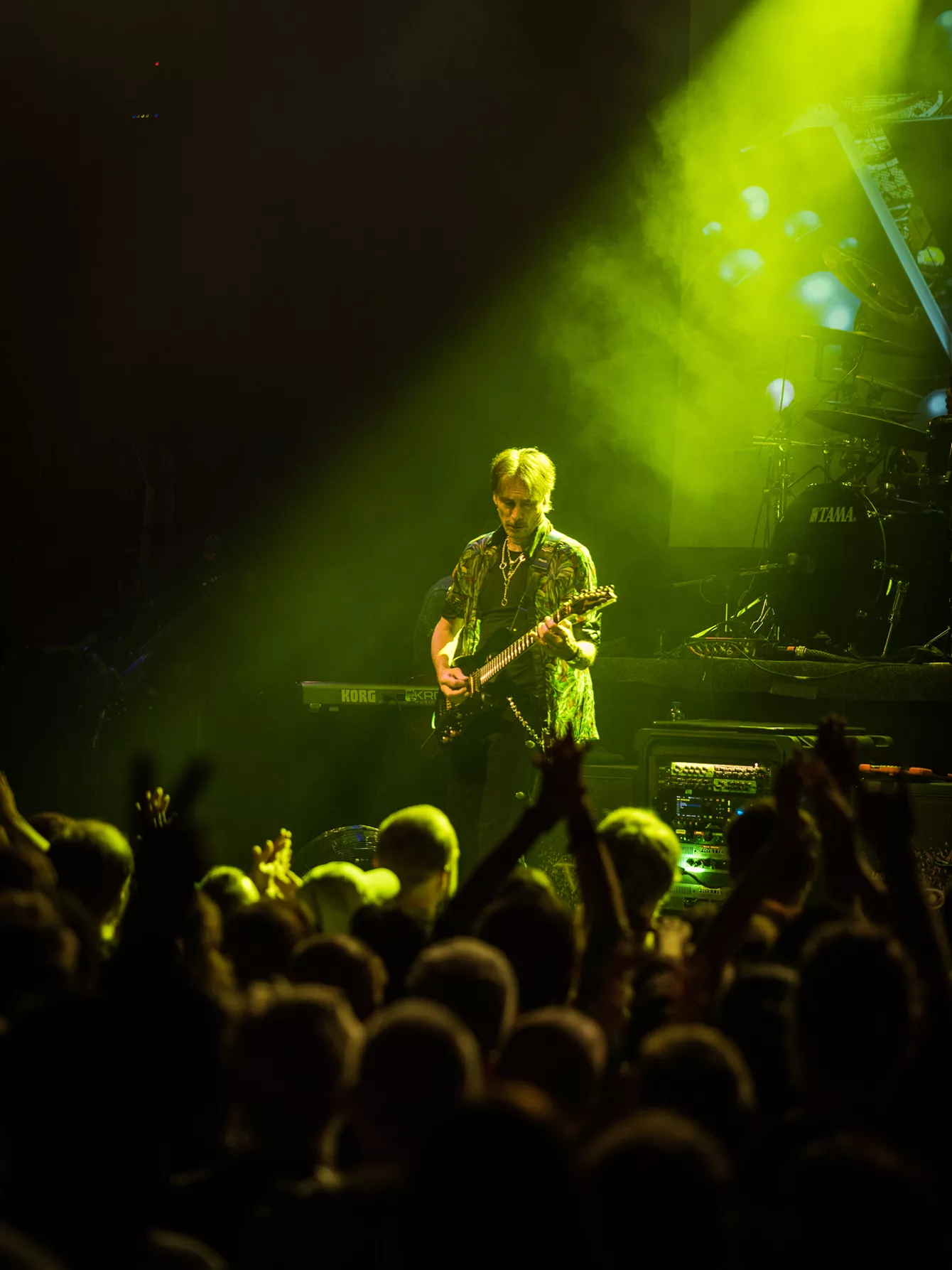 De omkring 500 publikummer fyldte ikke meget i Amager Bio, da 62-årige Steve Vai samt band slog takterne an med "Avalancha" fra det nye album Inviolate. Og der skulle da også lige sparkes lidt liv i både publikum og sætlisten, inden hofterne sådan rigtigt begyndte at rulle, og kæberne tabtes