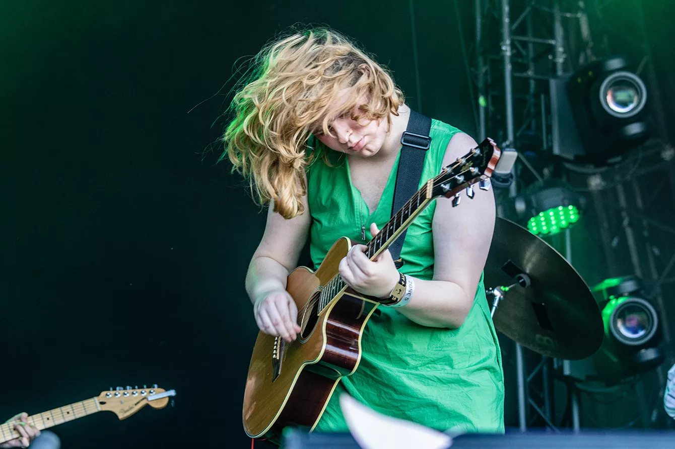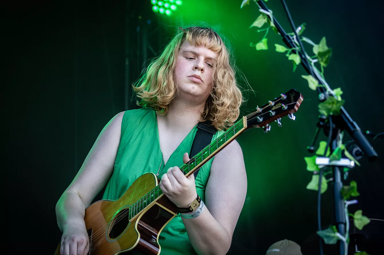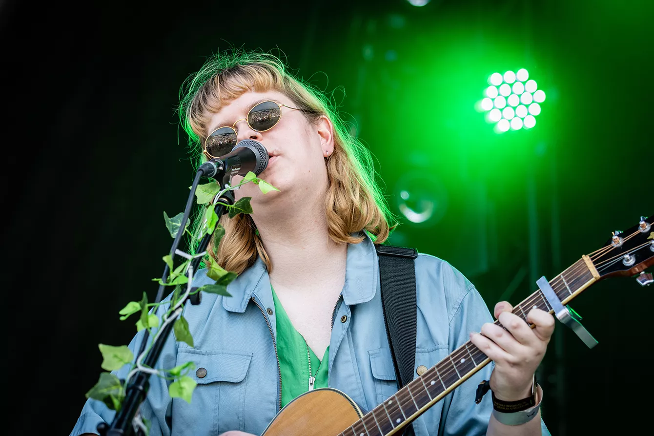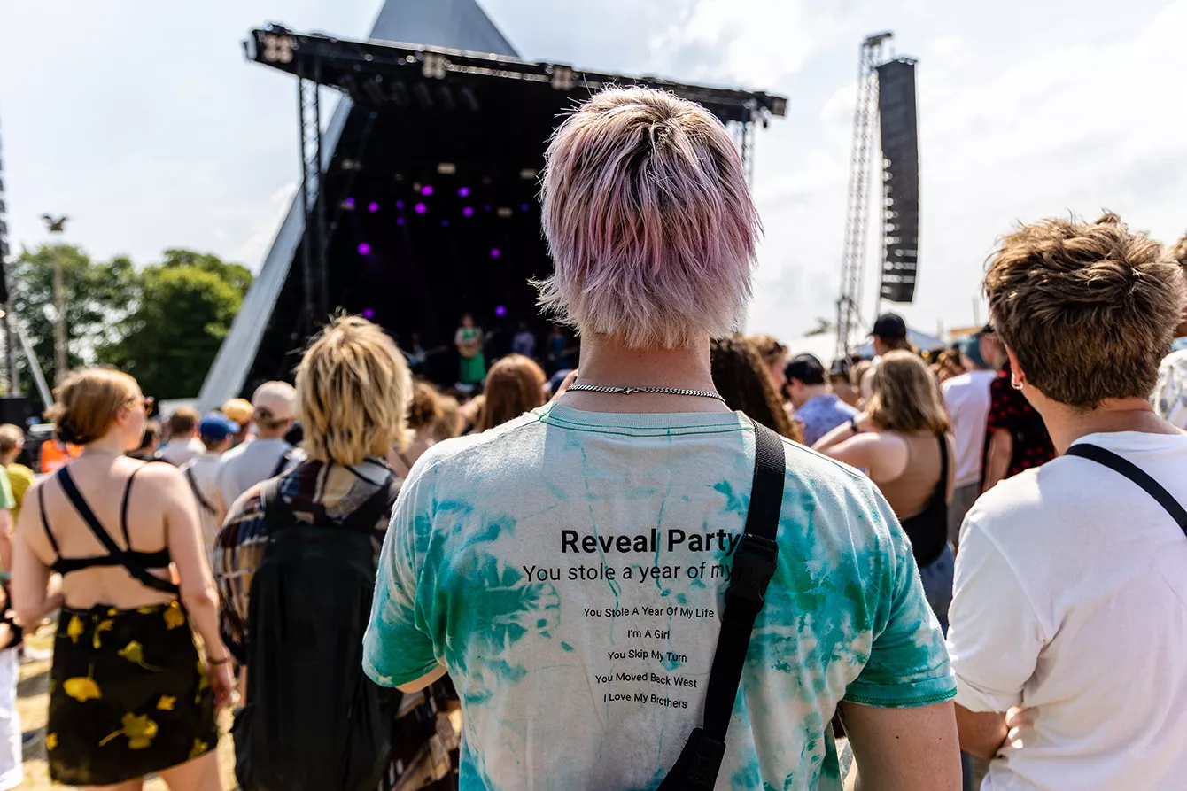 For fa’en da, Roskilde. Alt er jo det samme, intet er forandret. Sådan virkede det i hvert fald, da danske Reveal Party - aka Emily Holm Nyhuus - indtog Roskilde Festival som det første musikalske act i tre (!!!) år. Der blev lagt ud med “Further Away”, der blev leveret i selskab med et queer band
