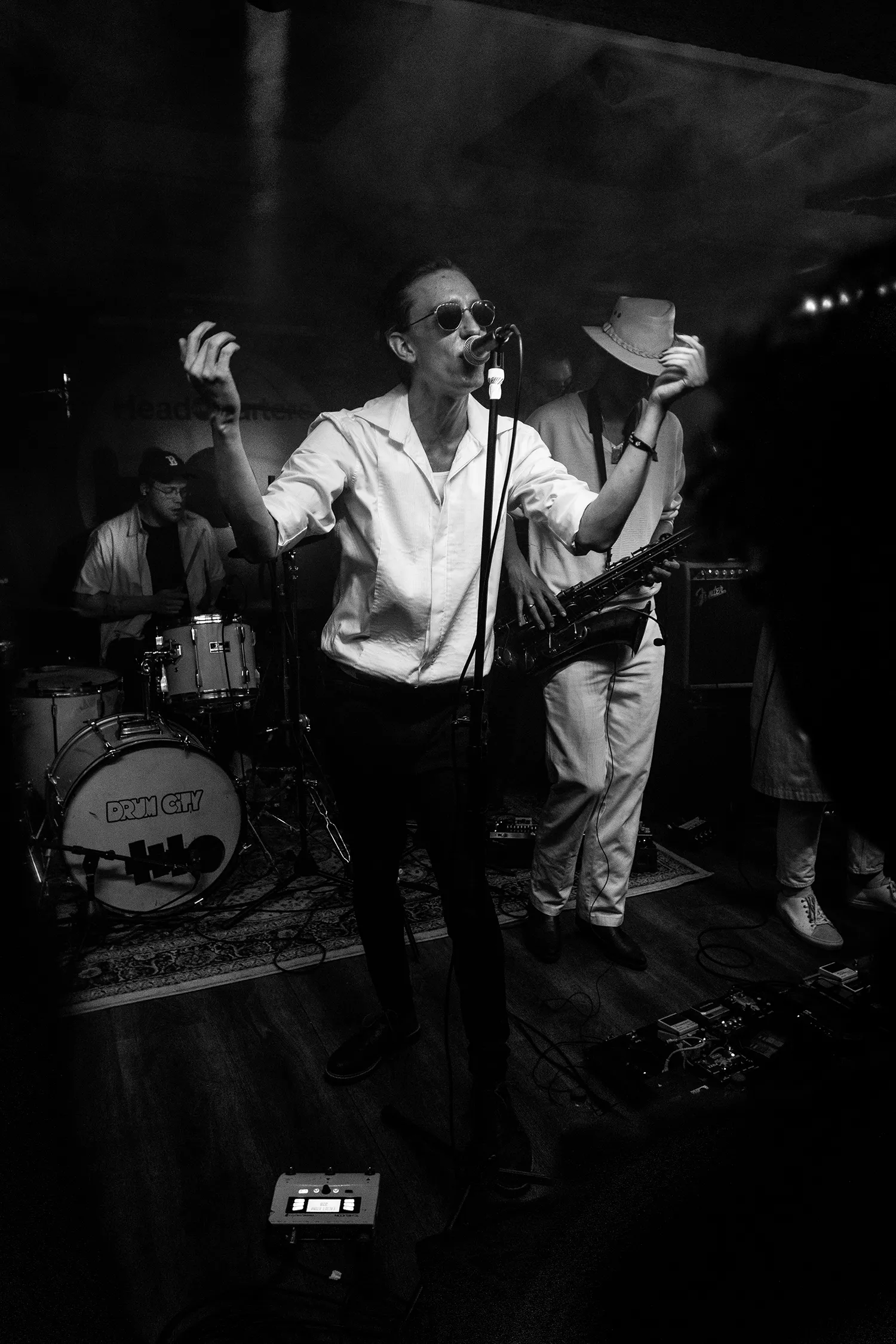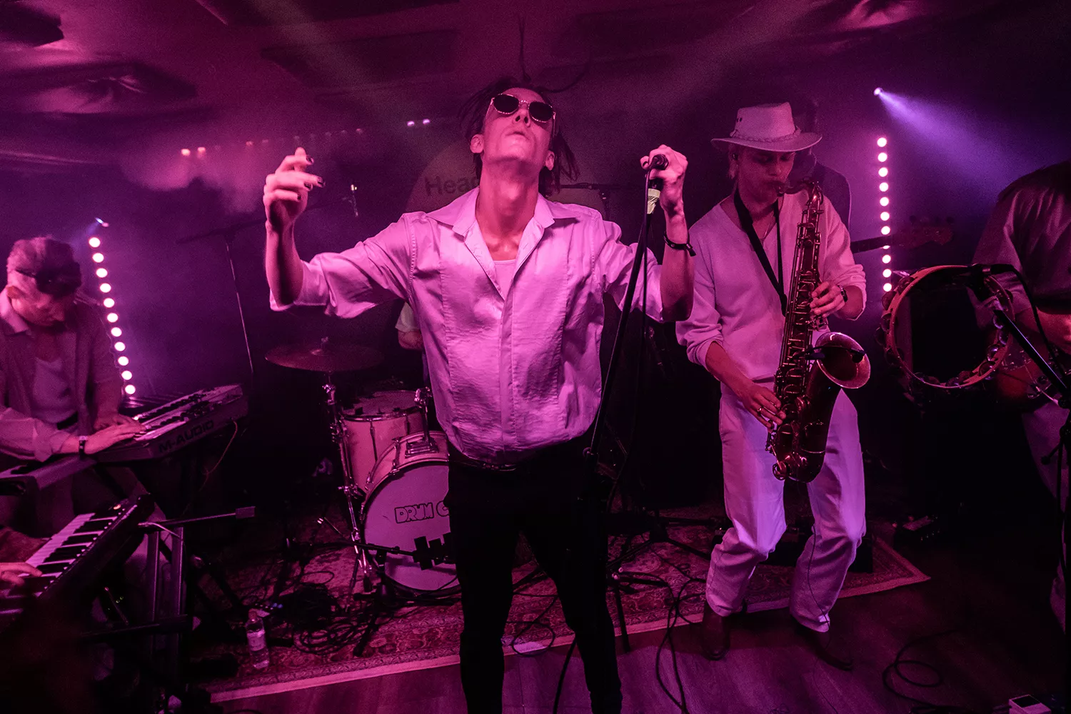 Der er mildt sagt pakket på HeadQuarters’ lille og lave scene, da Martin Zeppelin går på. Han har medbragt hele seks musikere på henholdsvis guitar, bas, trommer, to gange keyboard og tenorsaxofon, og de har ikke meget plads at agere på. Heldigvis er der lige så