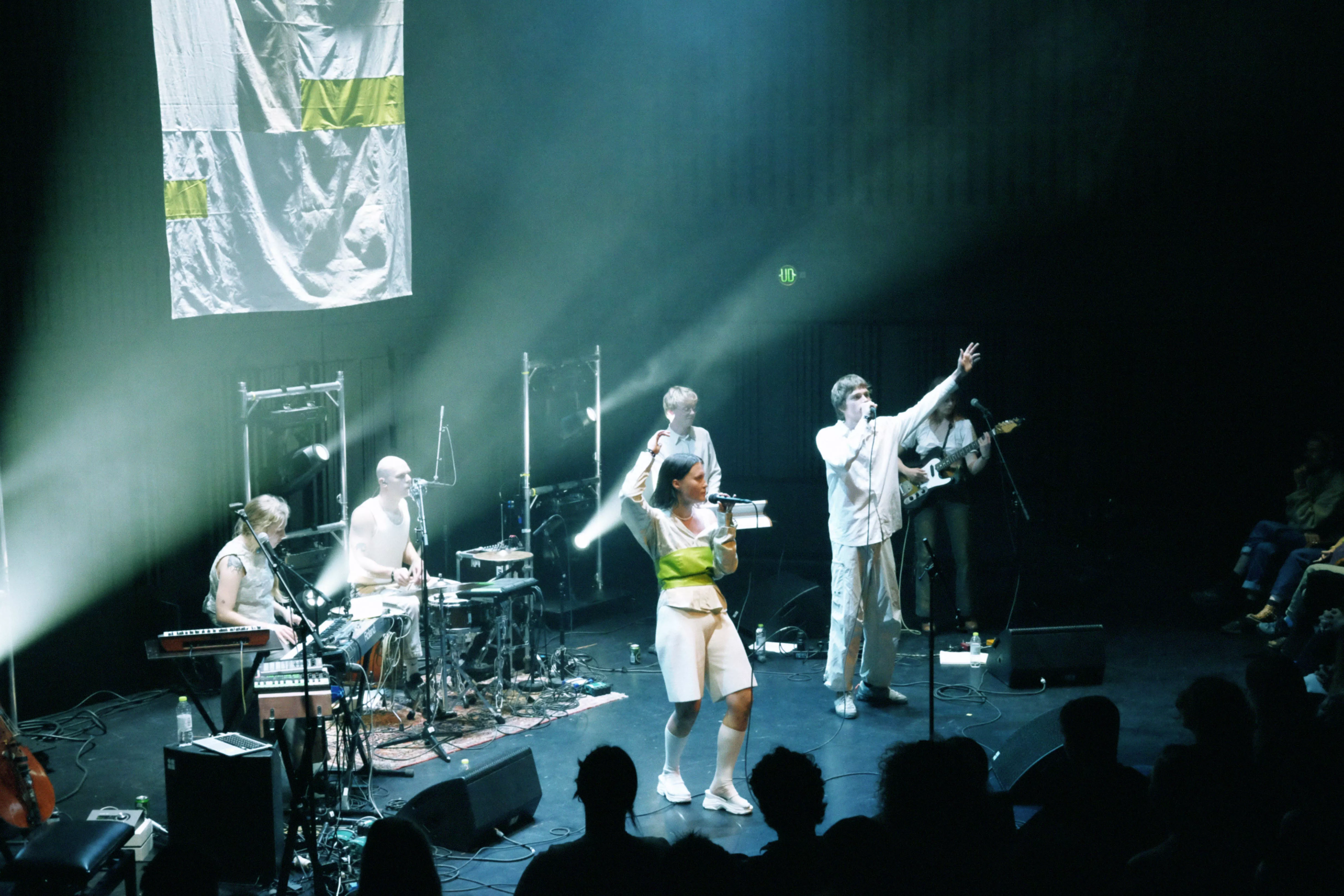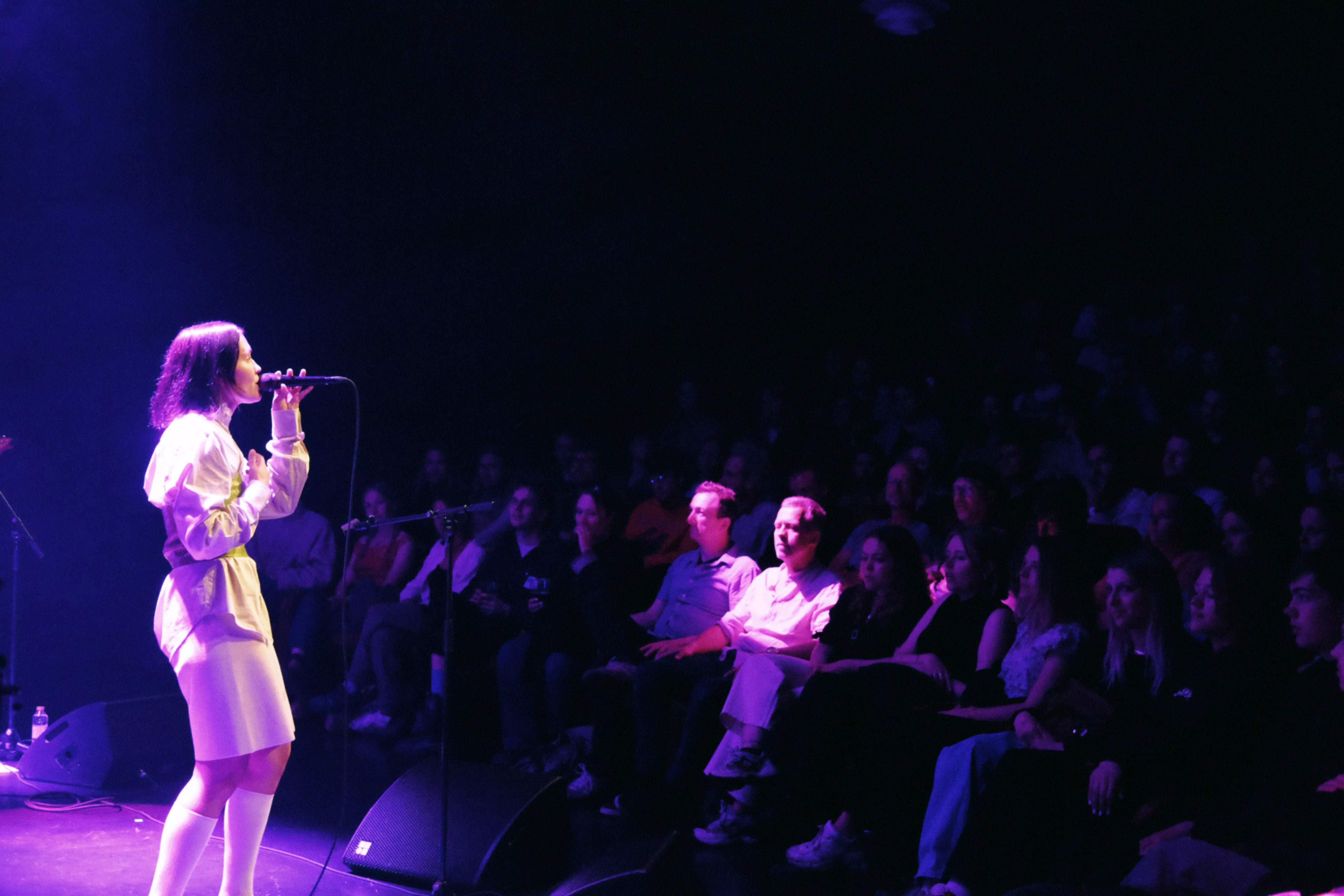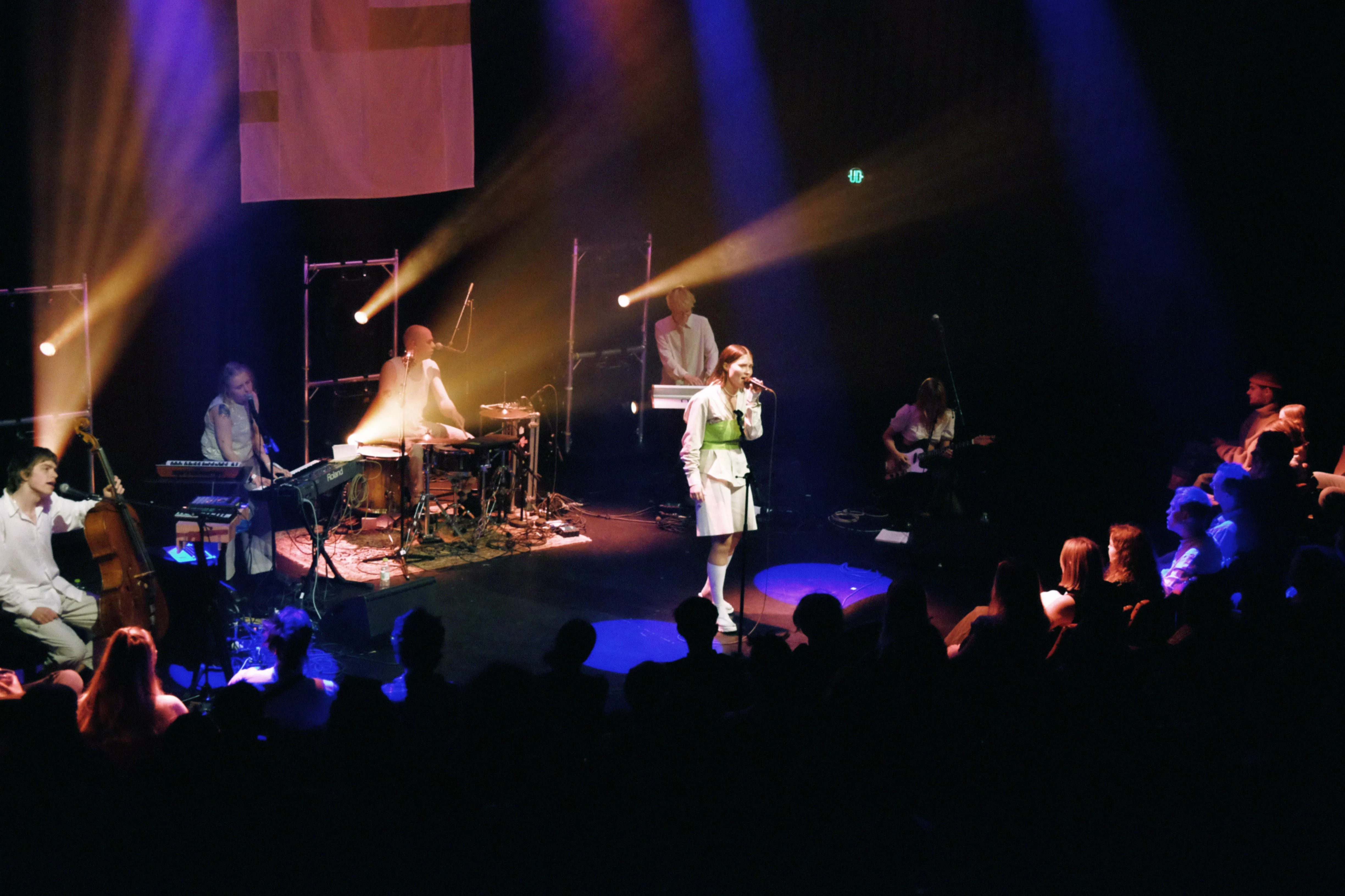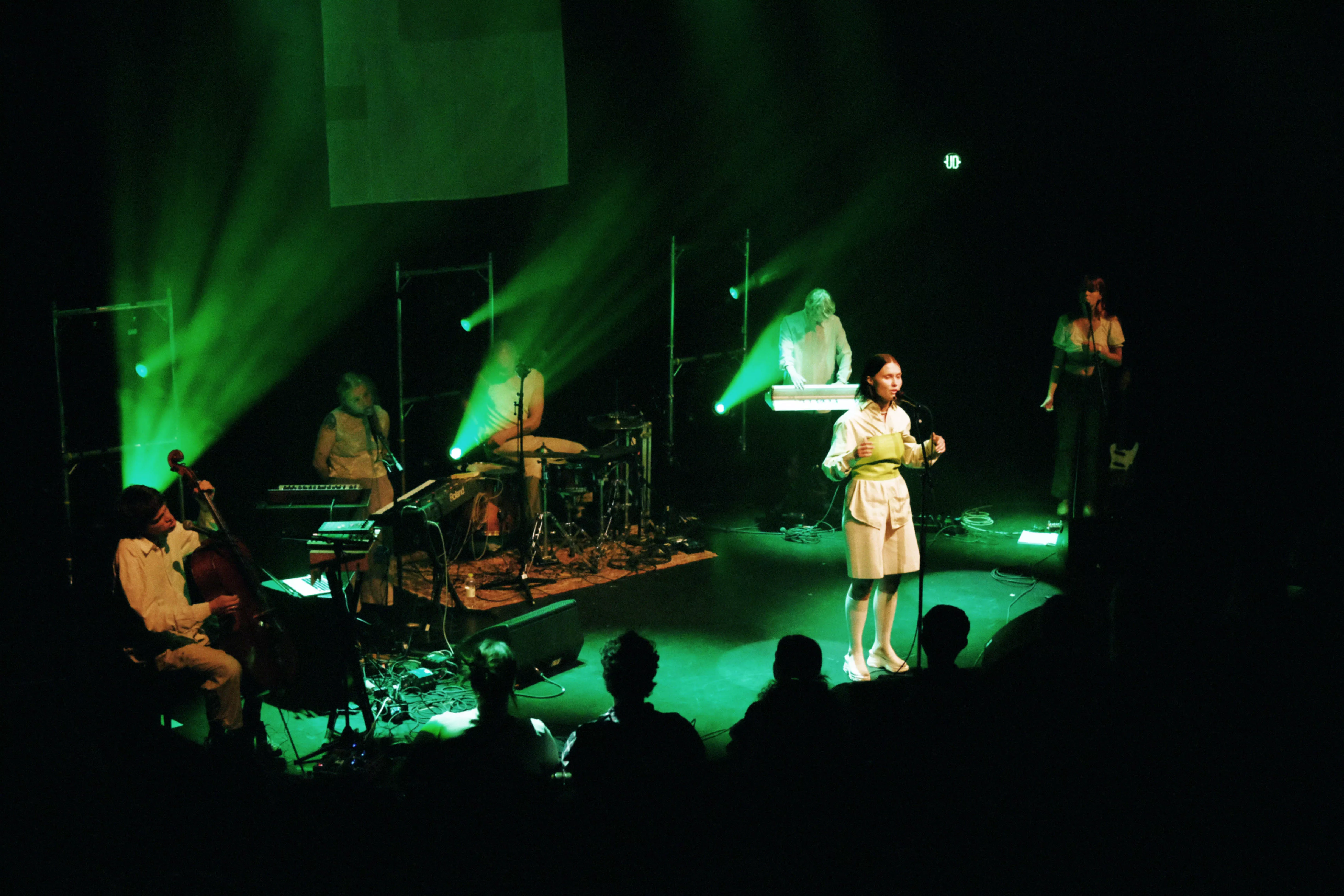 Musikhusets Lille Sal er fyldt til sidste plads, da sanger og sangskriver Viola Faber, bedre kendt som blot Faber, går på scenen lørdag klokken 17. Og scenegulvet er også pænt fyldt op, for Faber har medbragt fem musikere på henholdsvis cello/trompet,