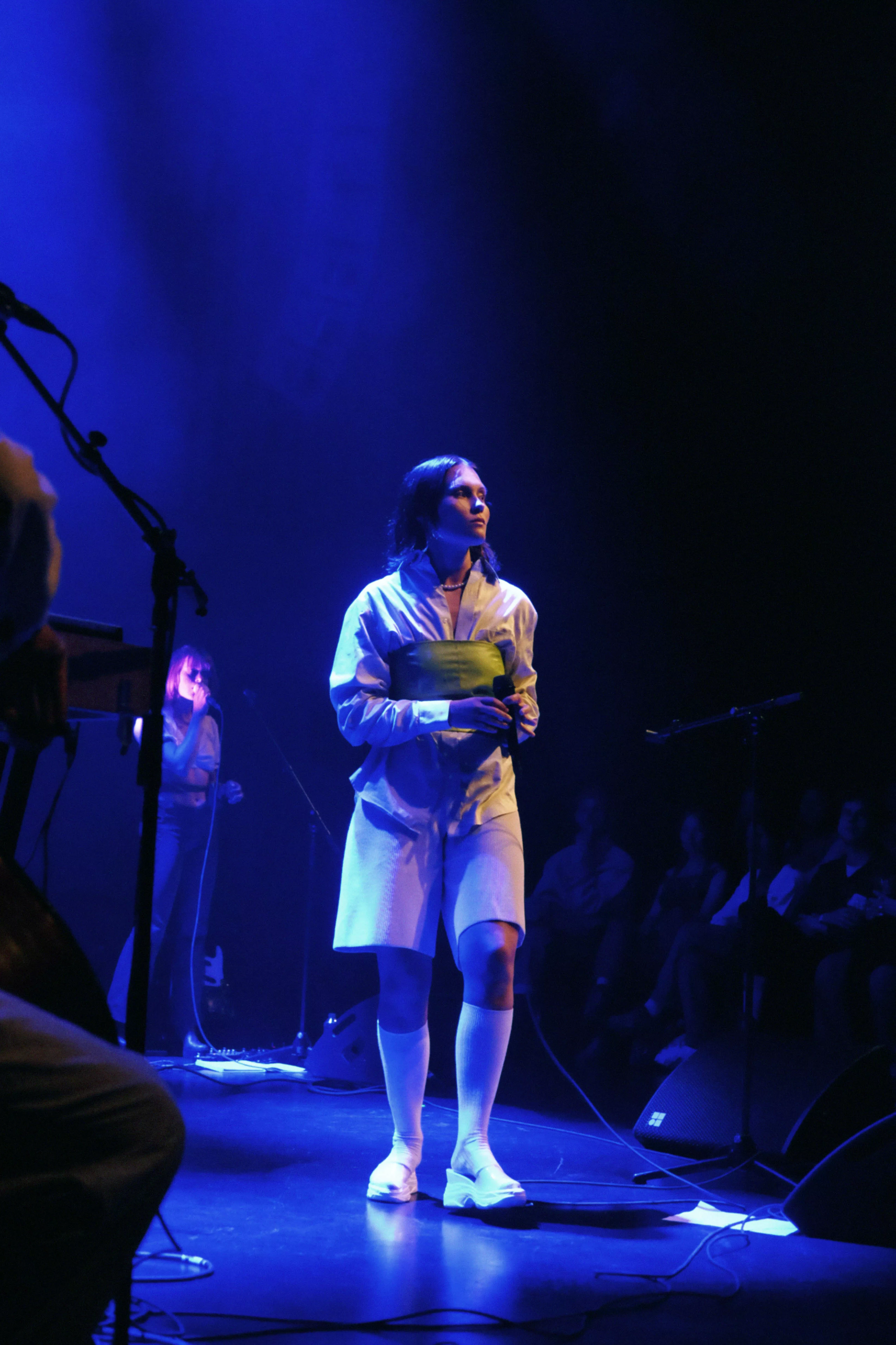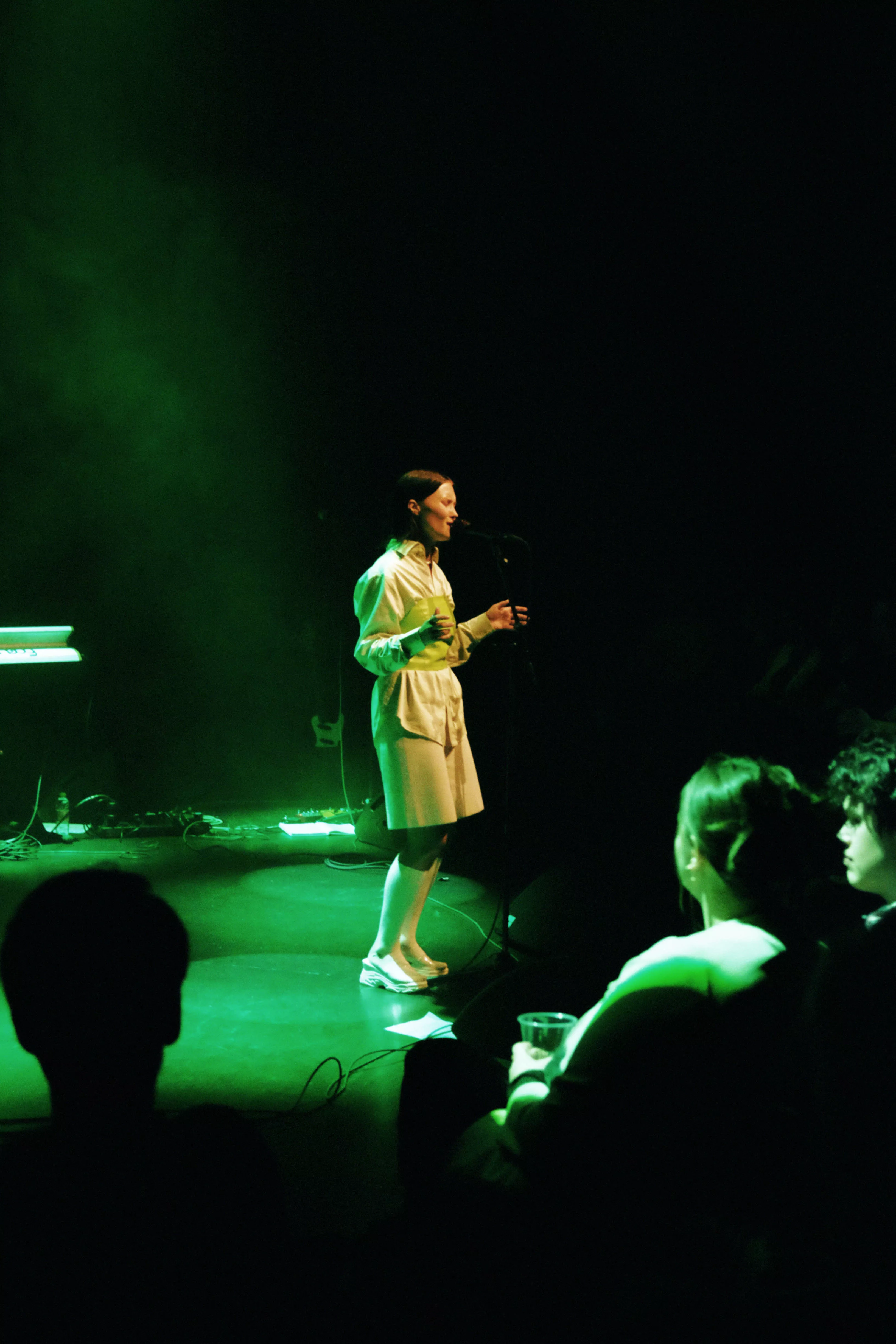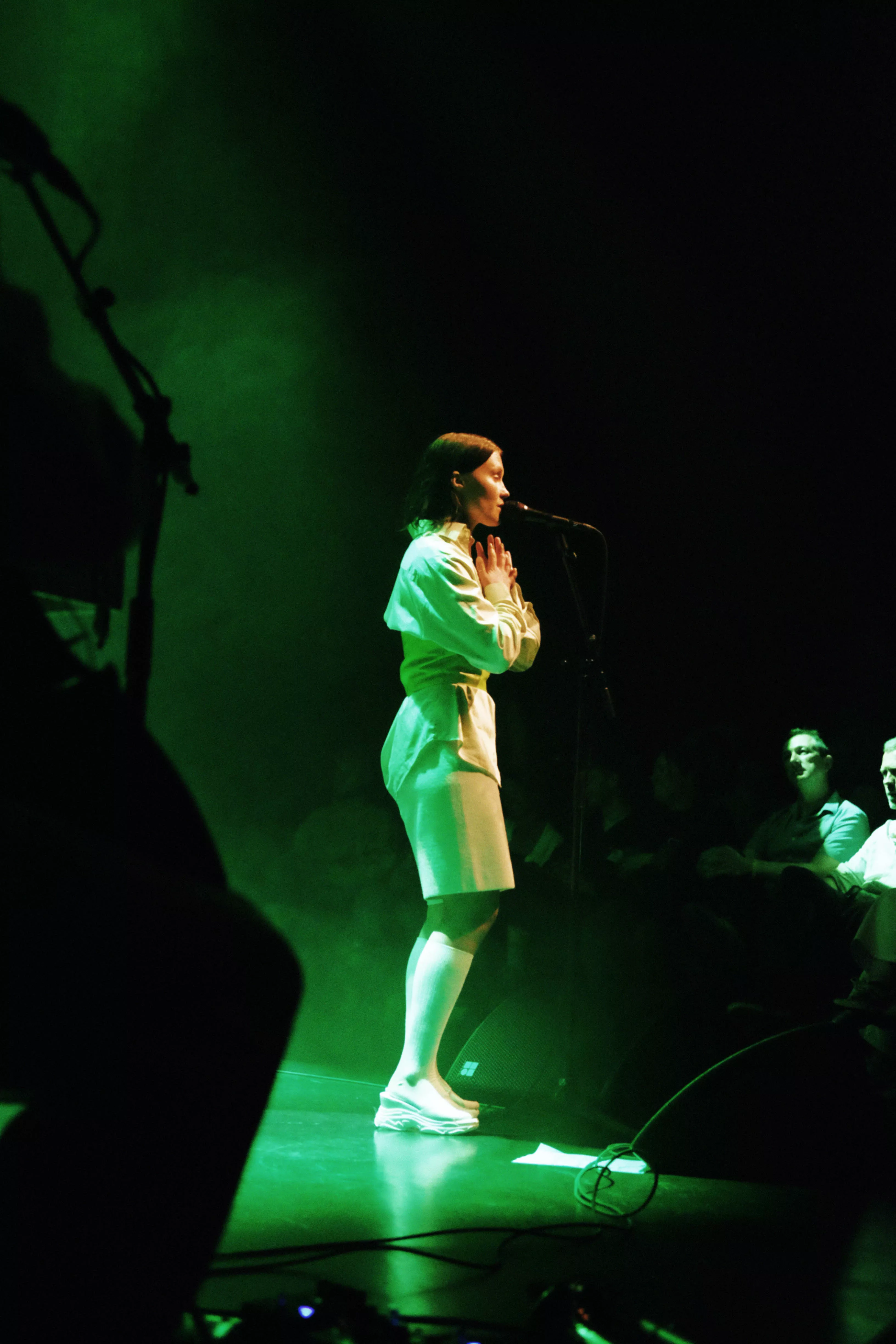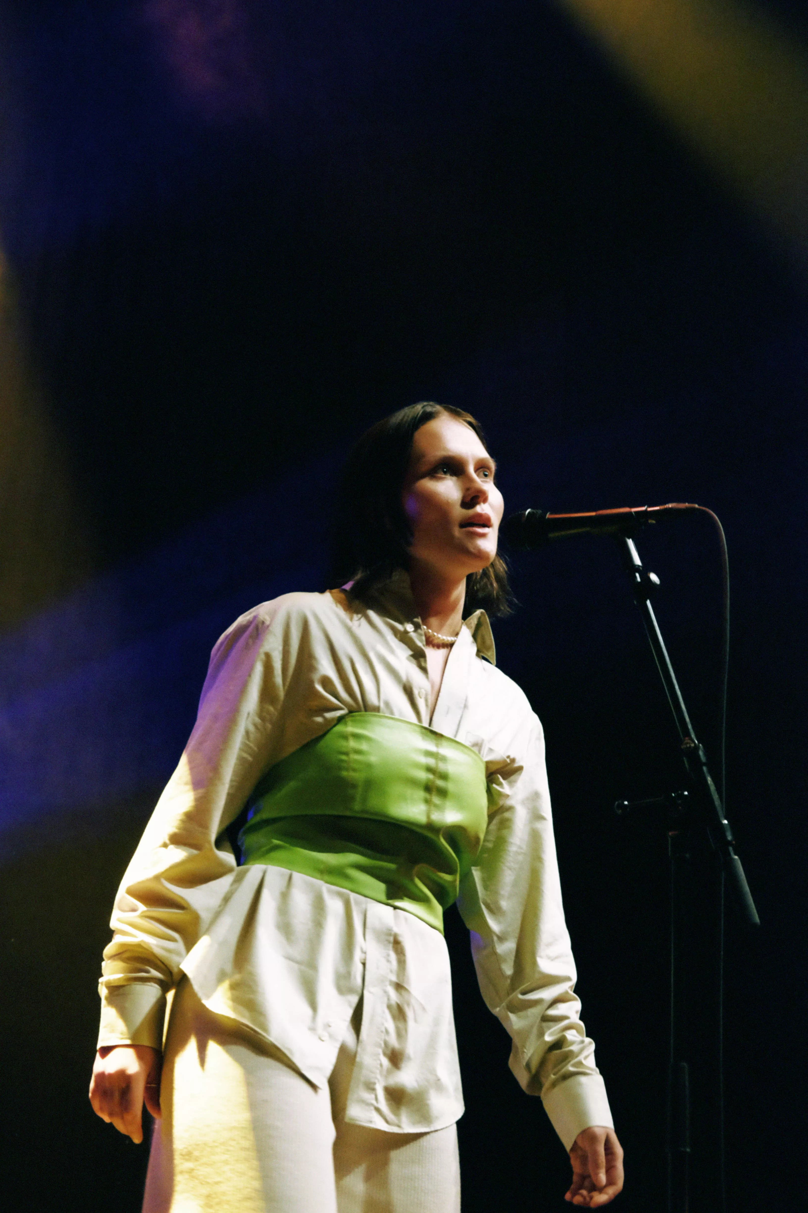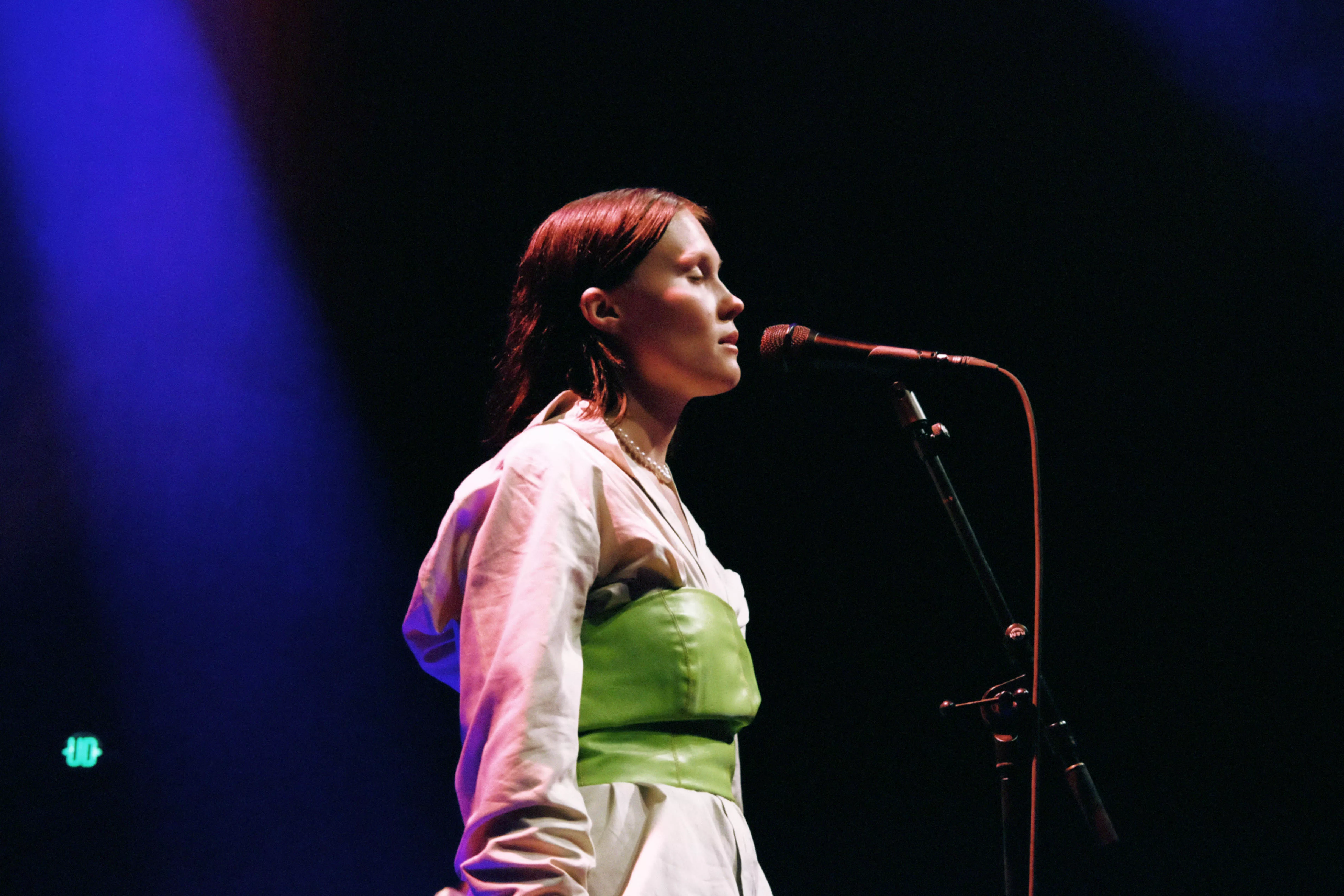 Musikhusets Lille Sal er fyldt til sidste plads, da sanger og sangskriver Viola Faber, bedre kendt som blot Faber, går på scenen lørdag klokken 17. Og scenegulvet er også pænt fyldt op, for Faber har medbragt fem musikere på henholdsvis cello/trompet,