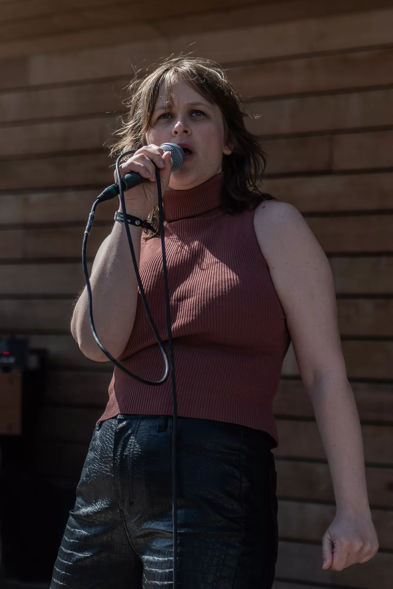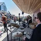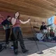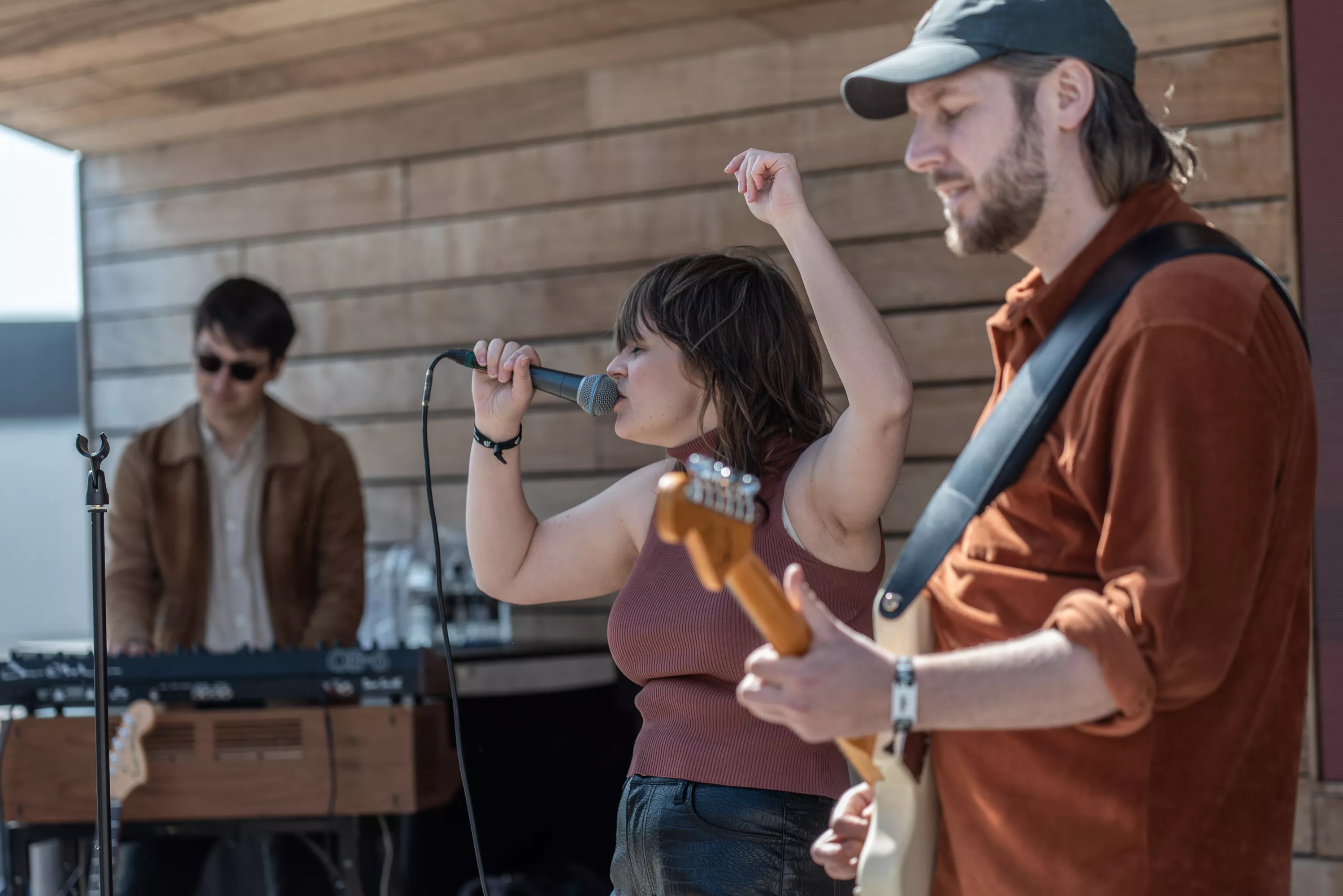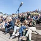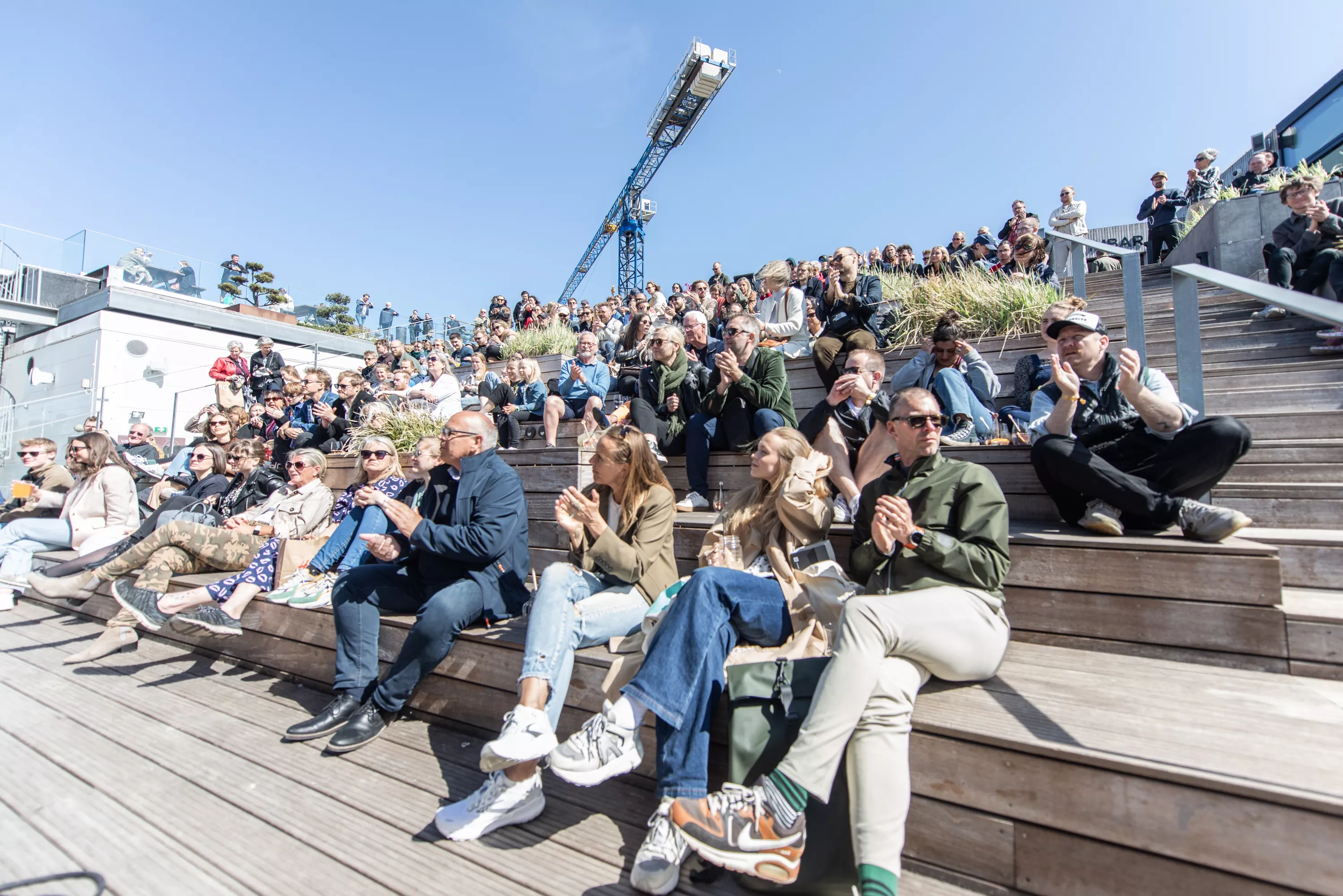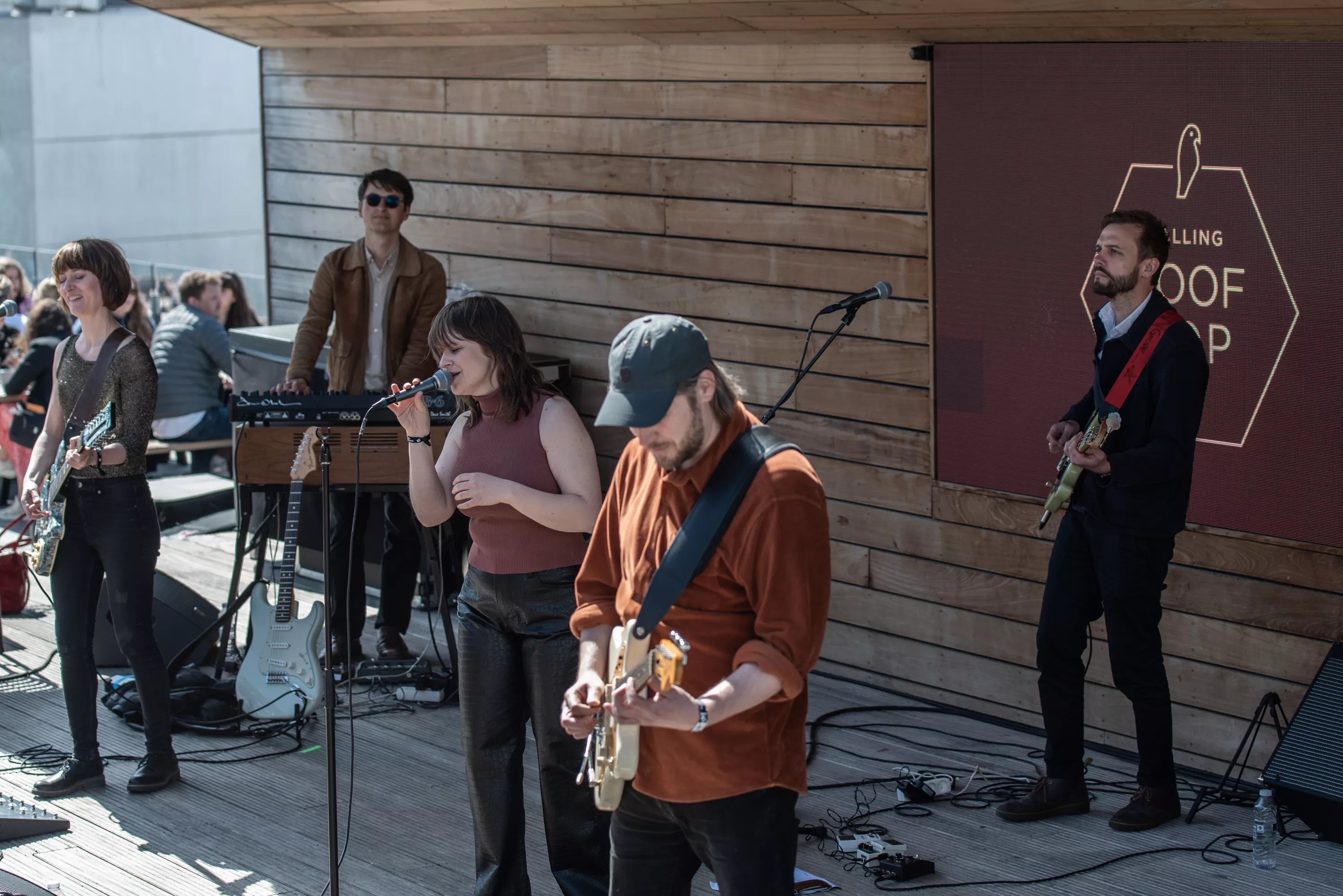 Blandt de mange scener på Spot Festival er Salling Rooftop i sjette etages højde den absolut højst beliggende, under åben himmel og med smuk udsigt ud over Aarhus Midtby. Da vejrguderne heldigvis er med festivalen i år, og der i øvrigt også er adgang på taget uden billet, er der ganske velbesøgt allerede
