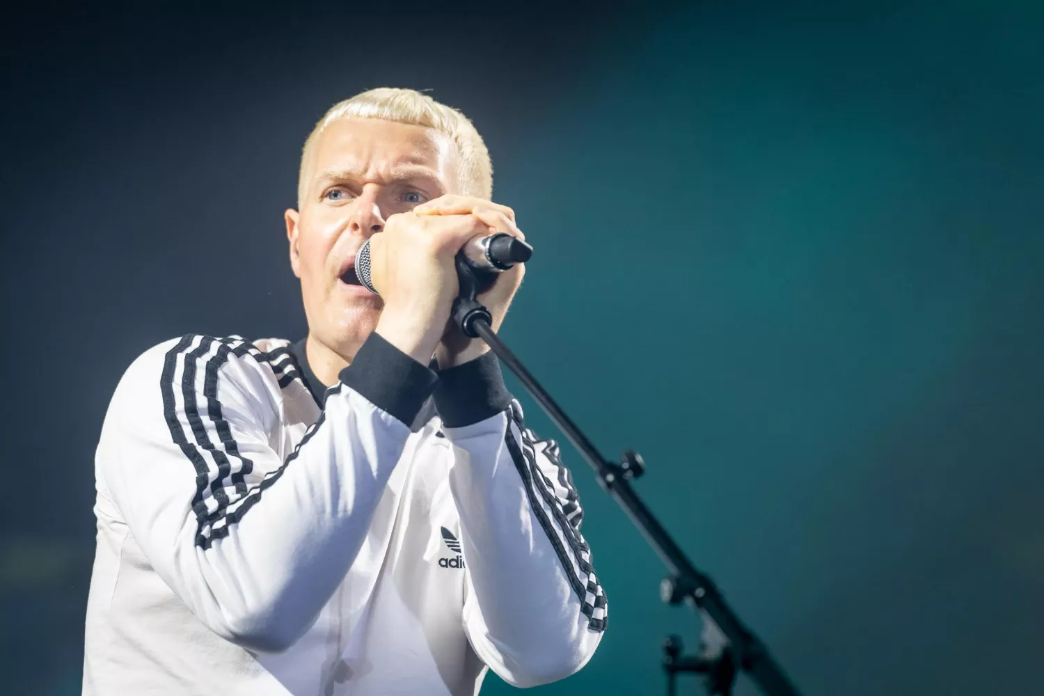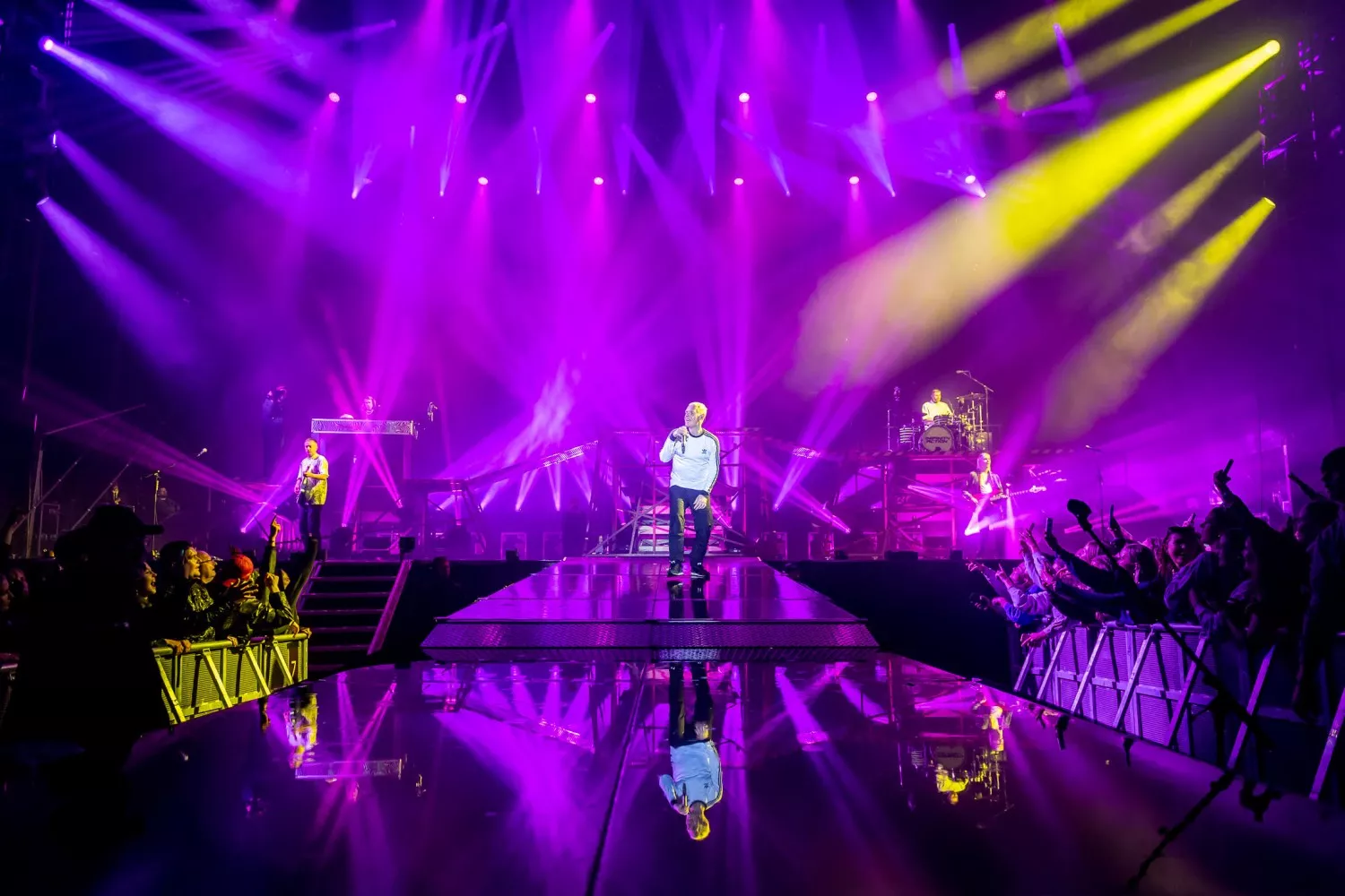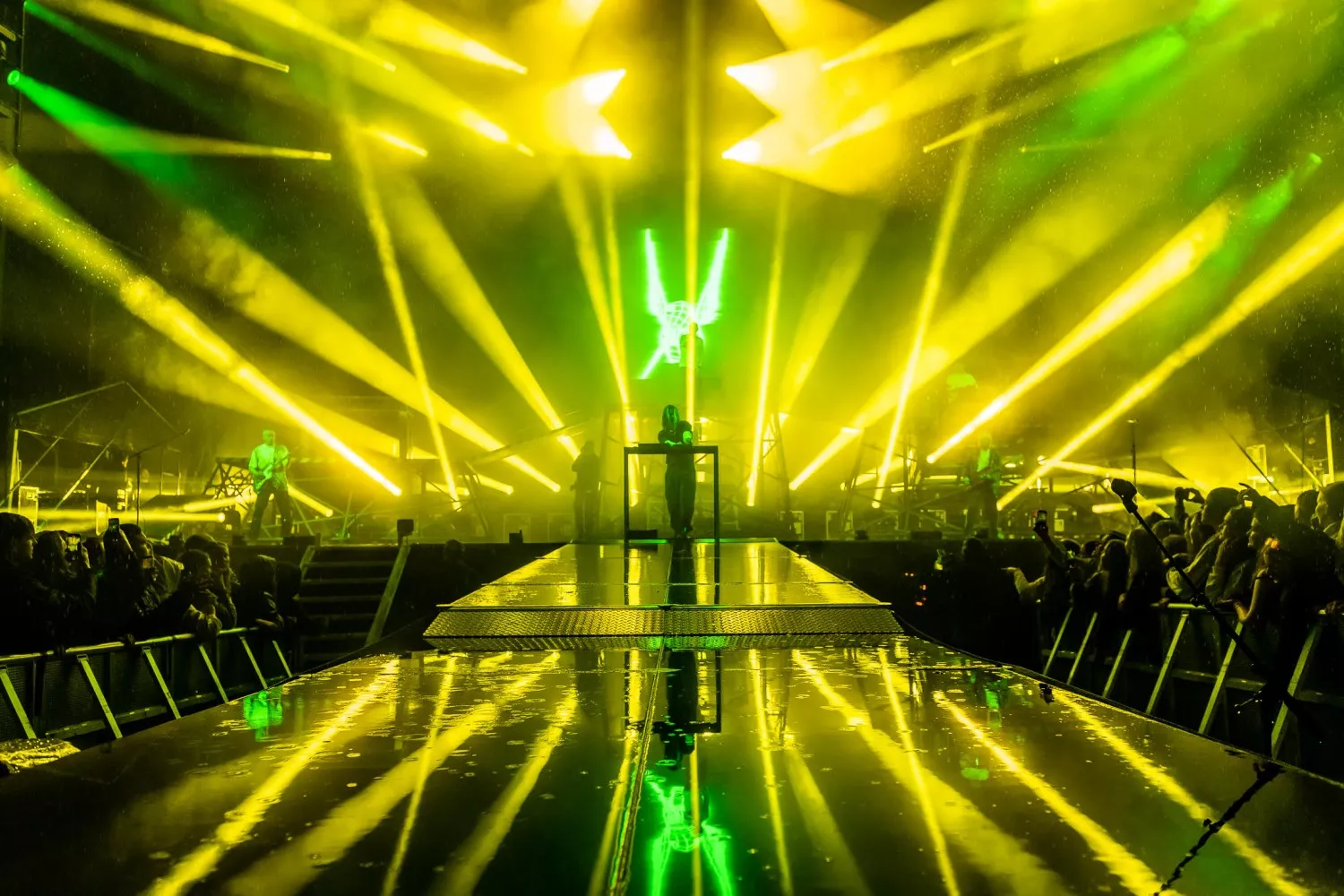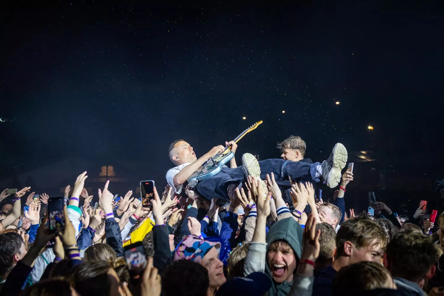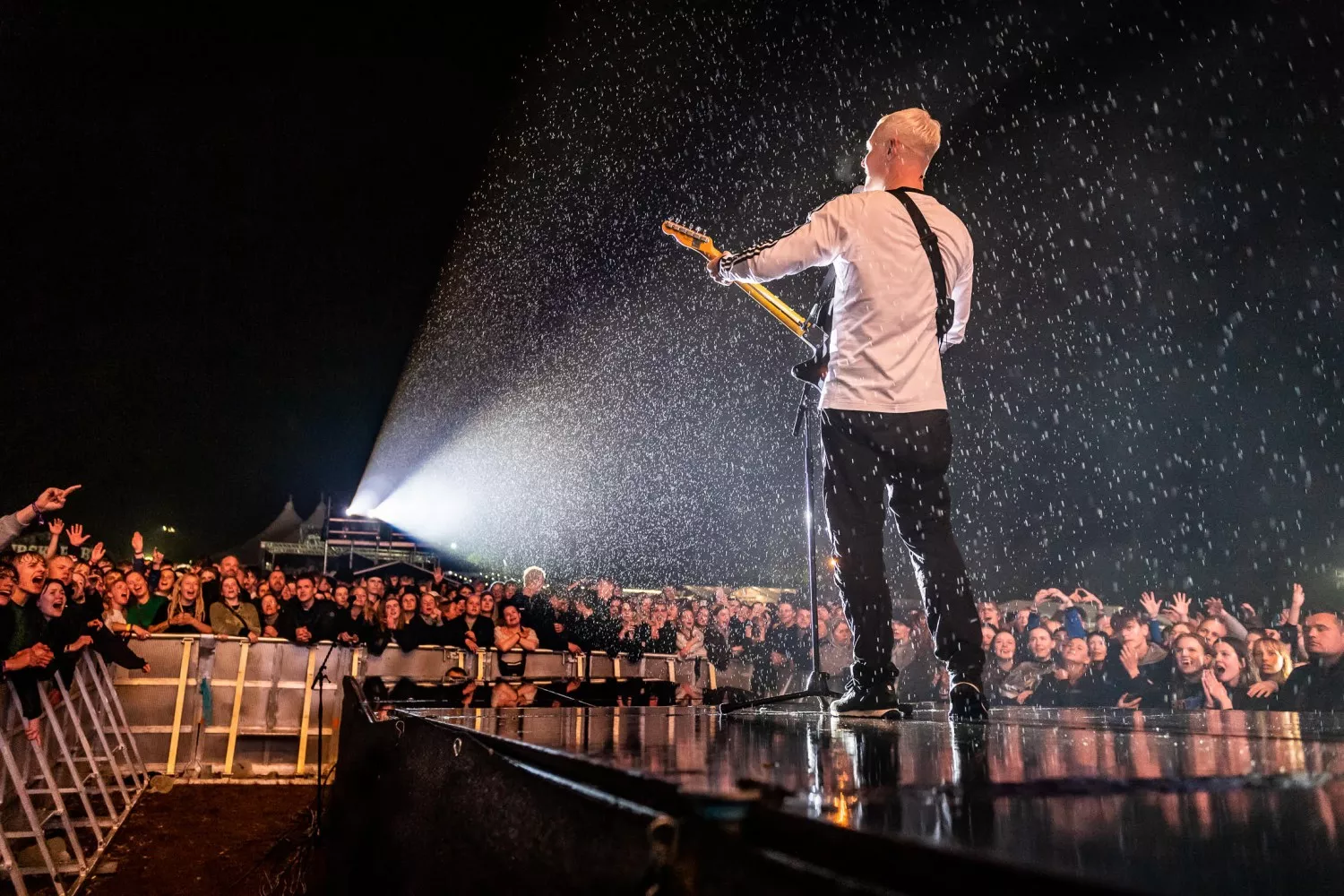 22.20 sker dét, som Danmark har afventet med livsnødvendig længsel, siden verden blev grå og kedelig en forårsdag i starten af årtiet. Den officielt første headliner-festivalkoncert på græs (og smat) er i disse sekunder i gang. Jubelbrølet til de fem musikere, der entrerer scenens tre podier, er massivt.