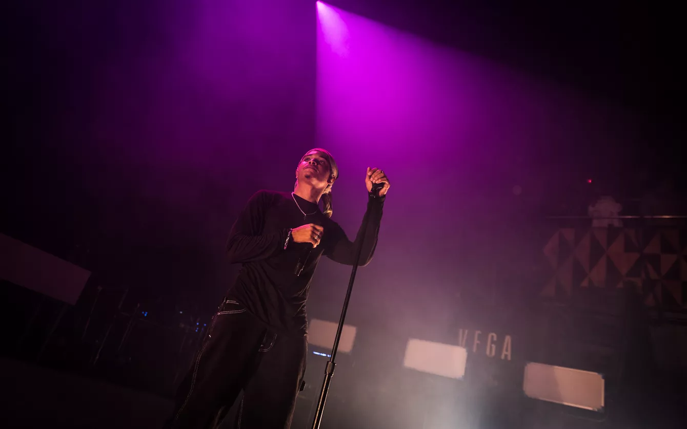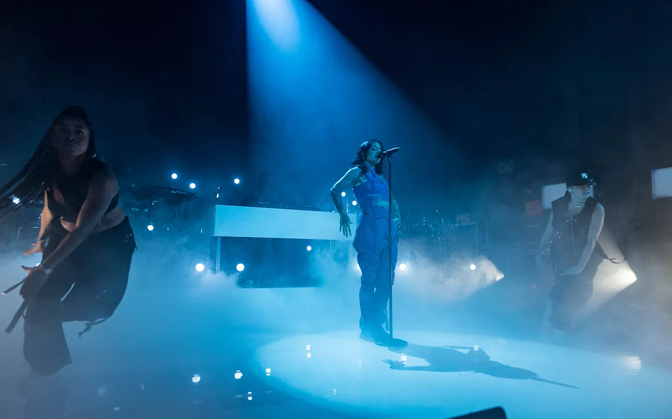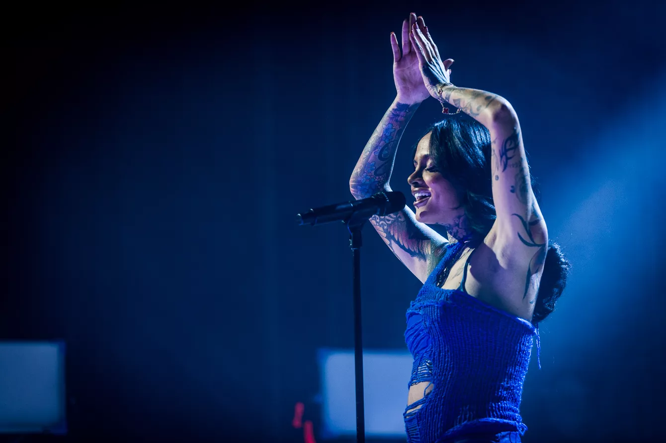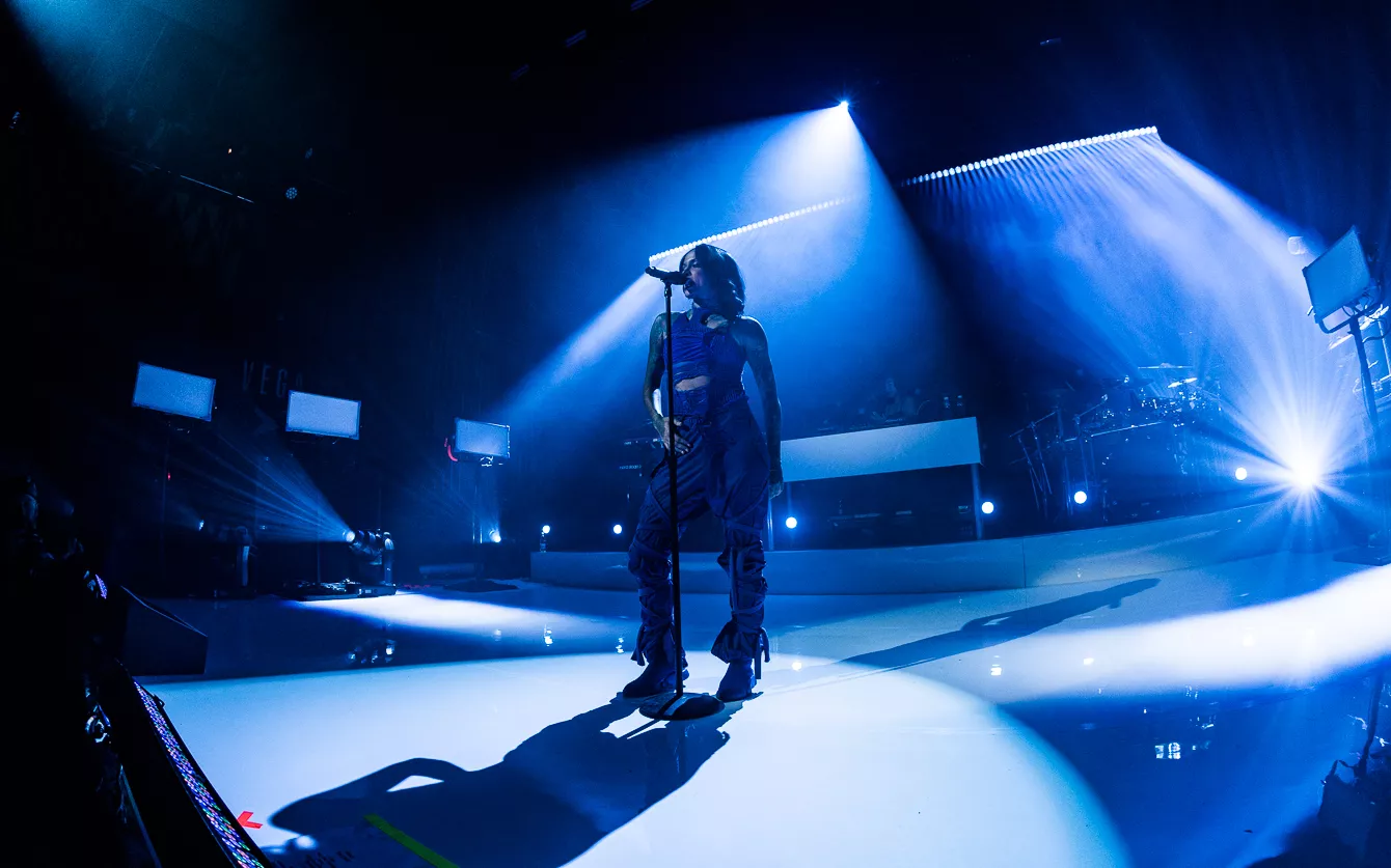 21:37 gik hun på. Bedre sent end aldrig, som man siger. Heldigvis havde en spændstig atmosfære holdt ved takket være en sensuel optræden fra opvarmeren Destin Conrad. Hertil kunne tælles et veloplagt publikum, startskuddet på Kehlanis europæiske turné samt den forventlige stemning til fremførelsen
