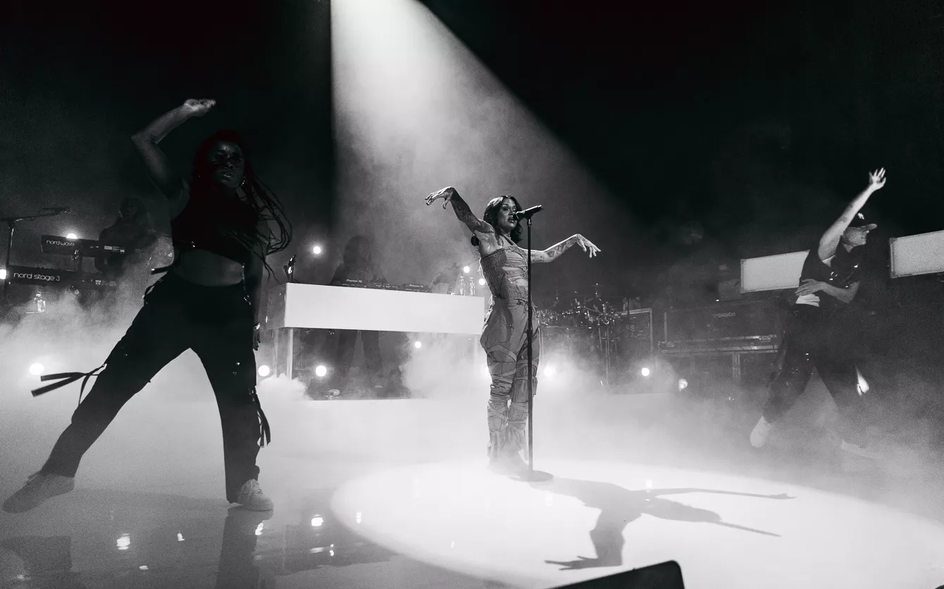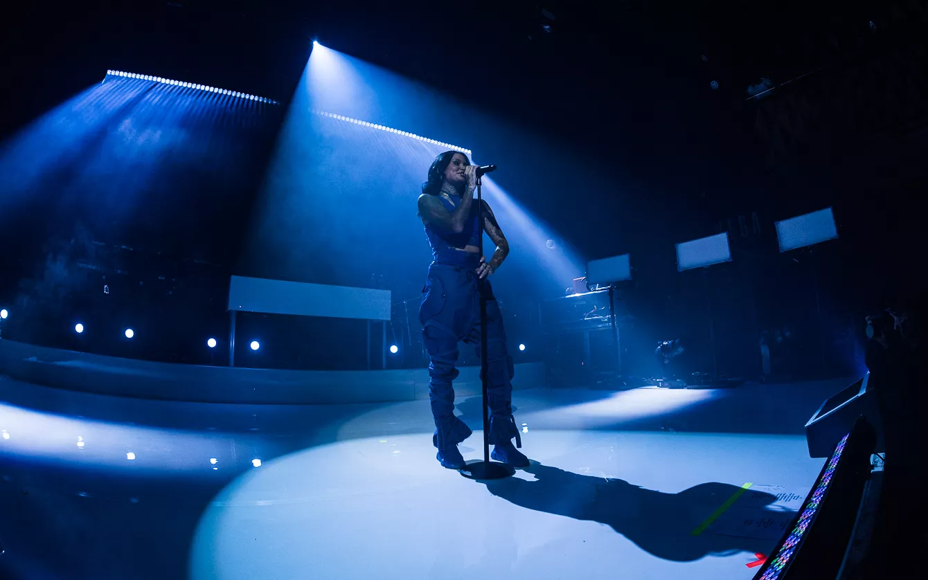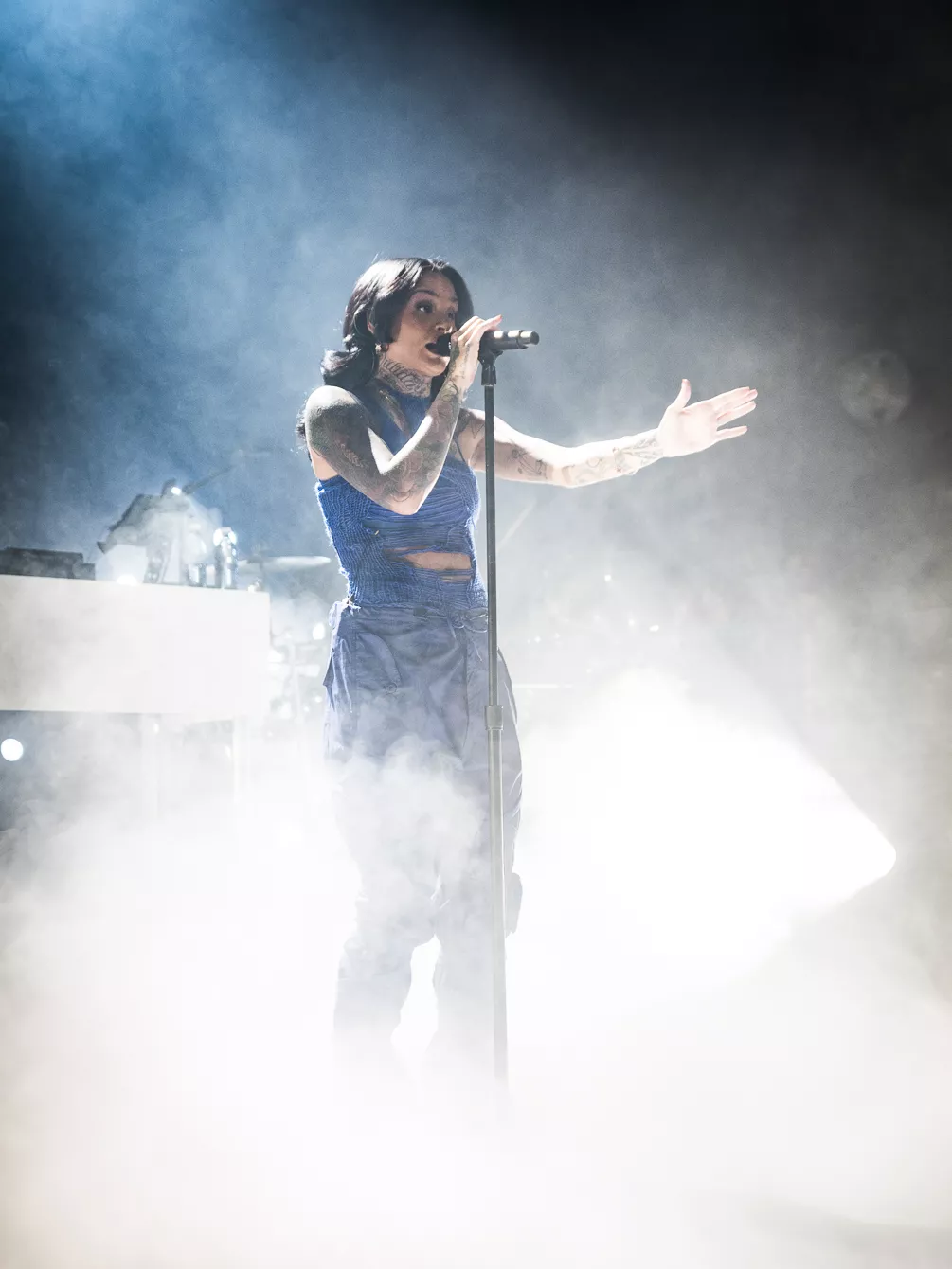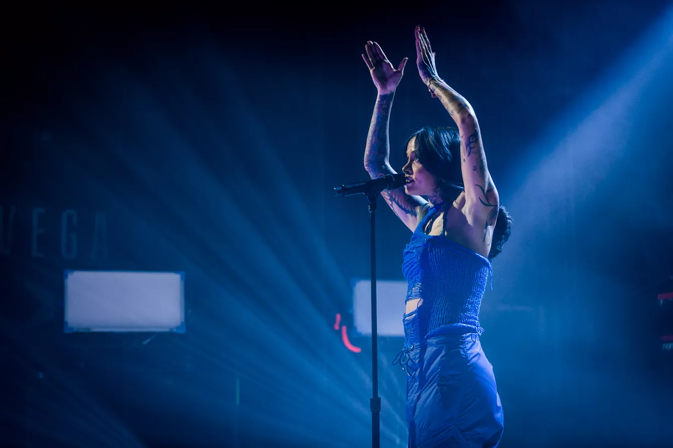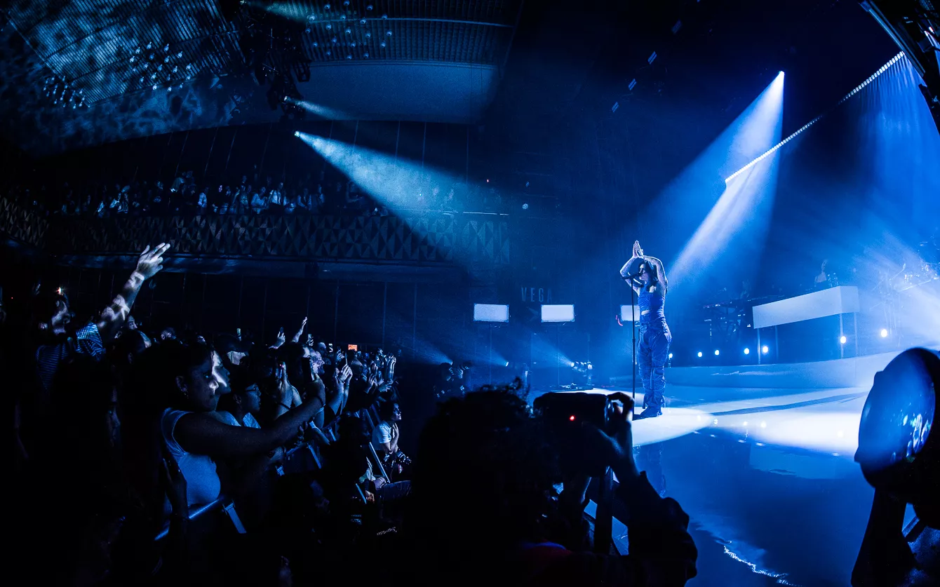 21:37 gik hun på. Bedre sent end aldrig, som man siger. Heldigvis havde en spændstig atmosfære holdt ved takket være en sensuel optræden fra opvarmeren Destin Conrad. Hertil kunne tælles et veloplagt publikum, startskuddet på Kehlanis europæiske turné samt den forventlige stemning til fremførelsen