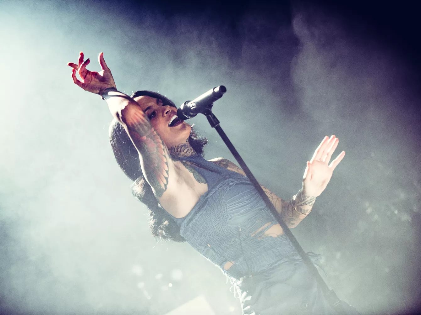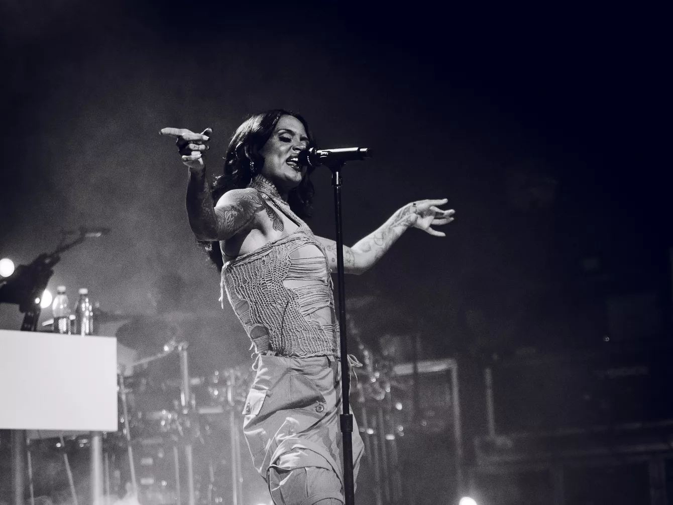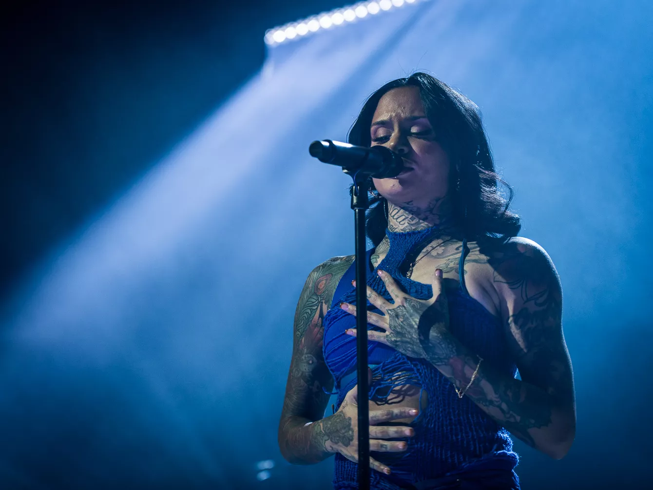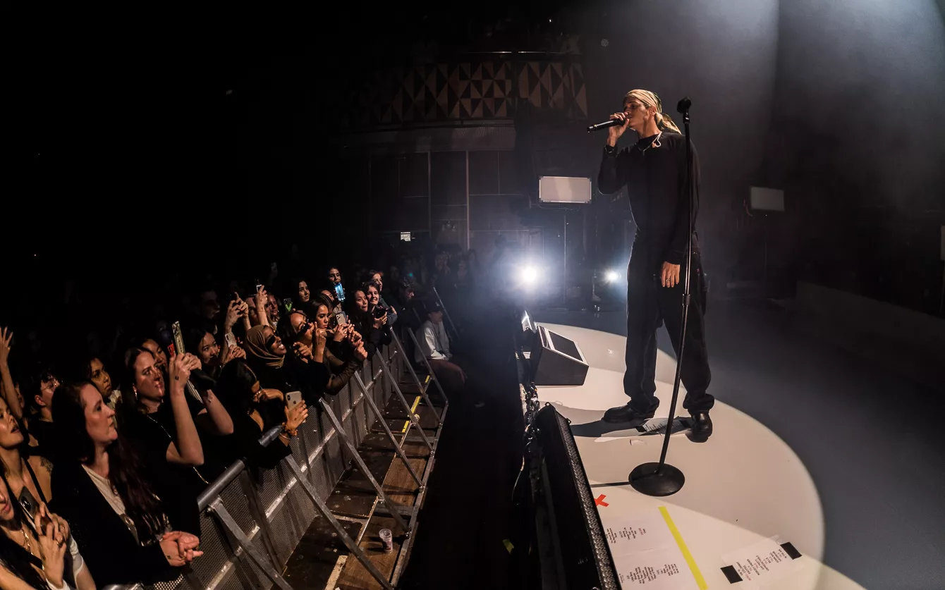 21:37 gik hun på. Bedre sent end aldrig, som man siger. Heldigvis havde en spændstig atmosfære holdt ved takket være en sensuel optræden fra opvarmeren Destin Conrad. Hertil kunne tælles et veloplagt publikum, startskuddet på Kehlanis europæiske turné samt den forventlige stemning til fremførelsen