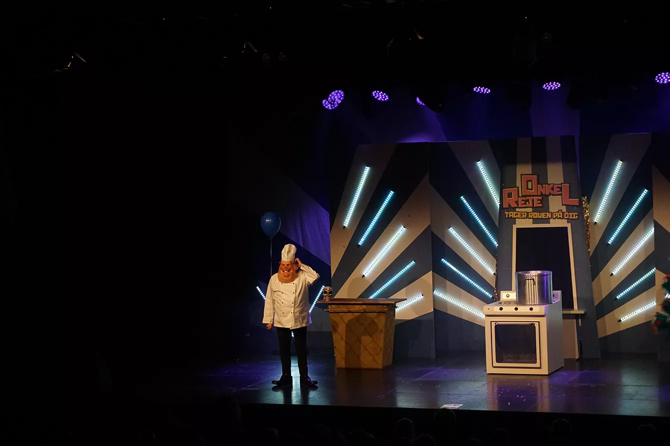 Det var lidt det samme, da den efterhånden ikoniske børneentertainer Onkel Reje – alias Mads Geertsen – ramte Aarhus søndag med sin aktuelle turné Onkel Reje tager røven på dig.