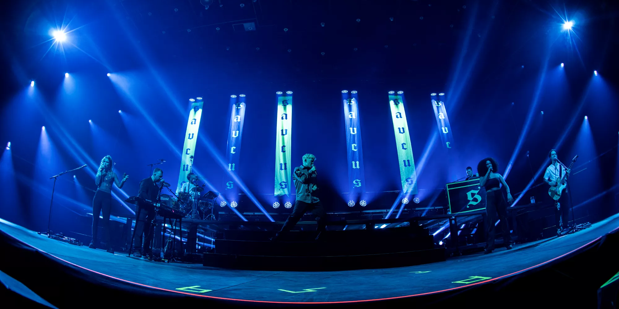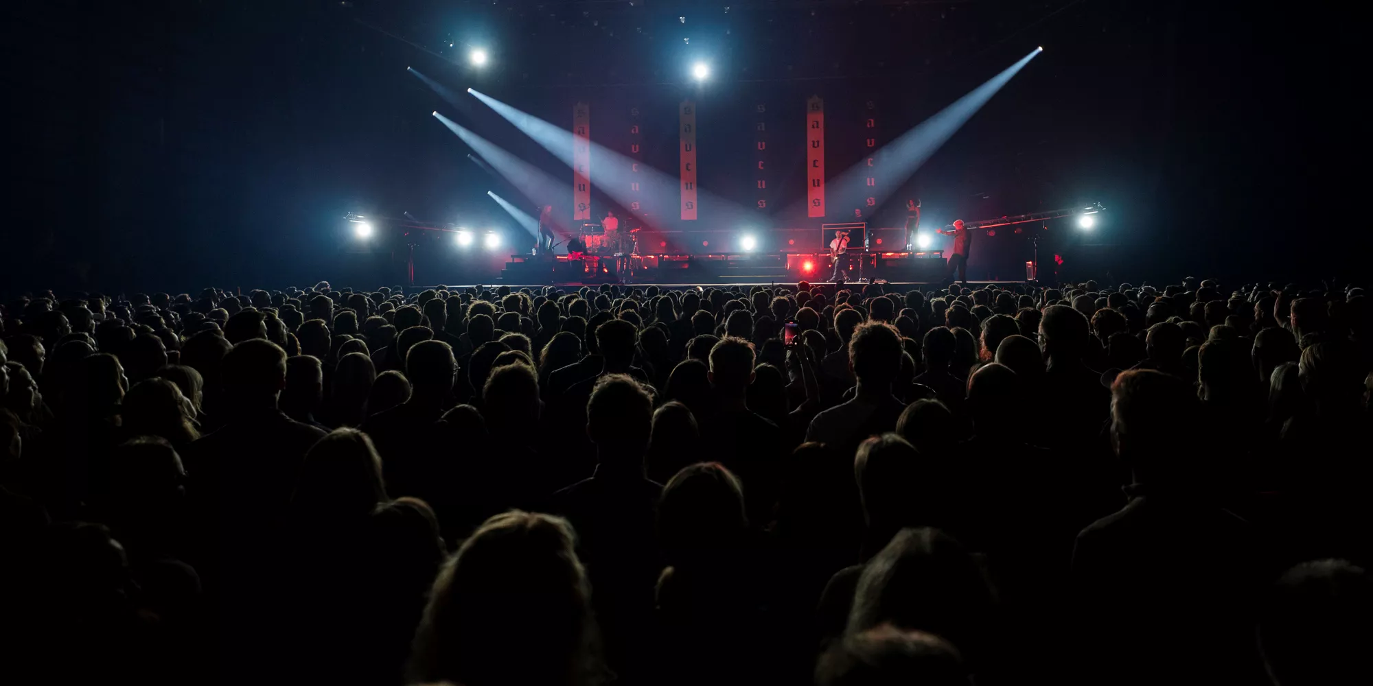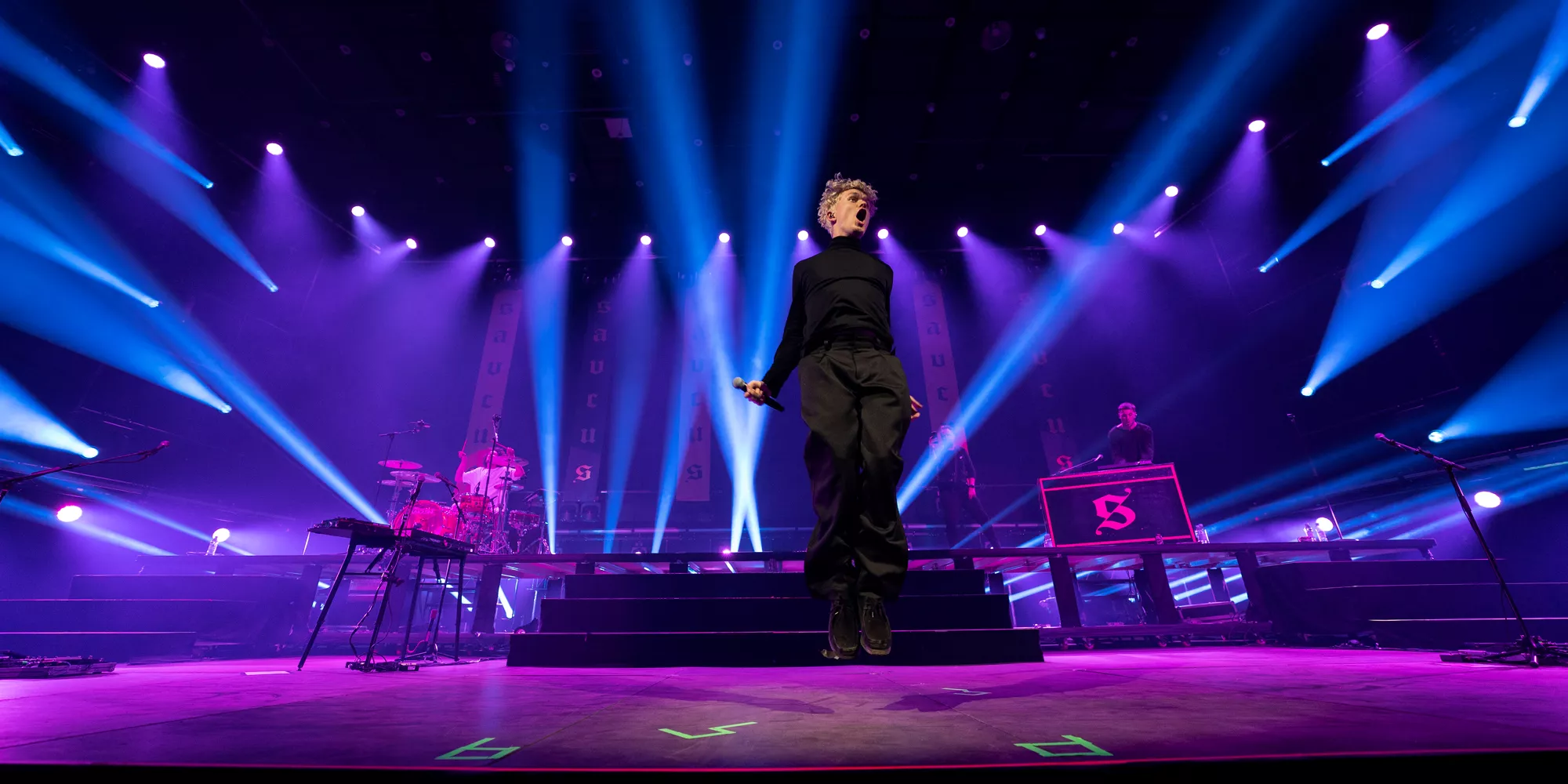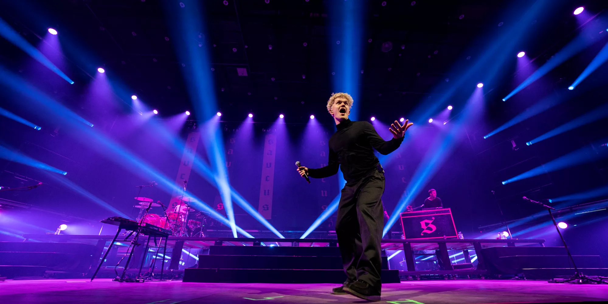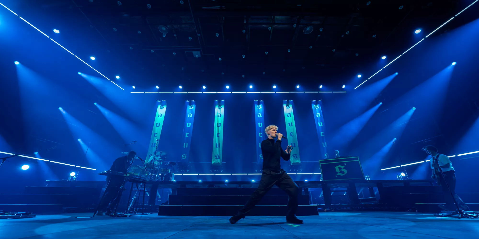 Saveus’ musik er ofte pompøs, så det giver god mening at høre ham et stort sted som Aarhus Congress Center med plads til 4000 gæster – og der er udsolgt i aften. Oprindeligt havde han annonceret først en, så tre, lynhurtigt udsolgte koncerter på Train i december 2021, men de blev aflyst grundet sidste