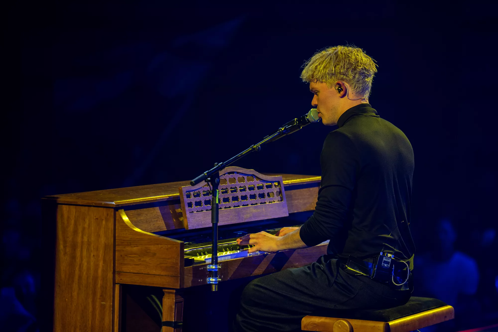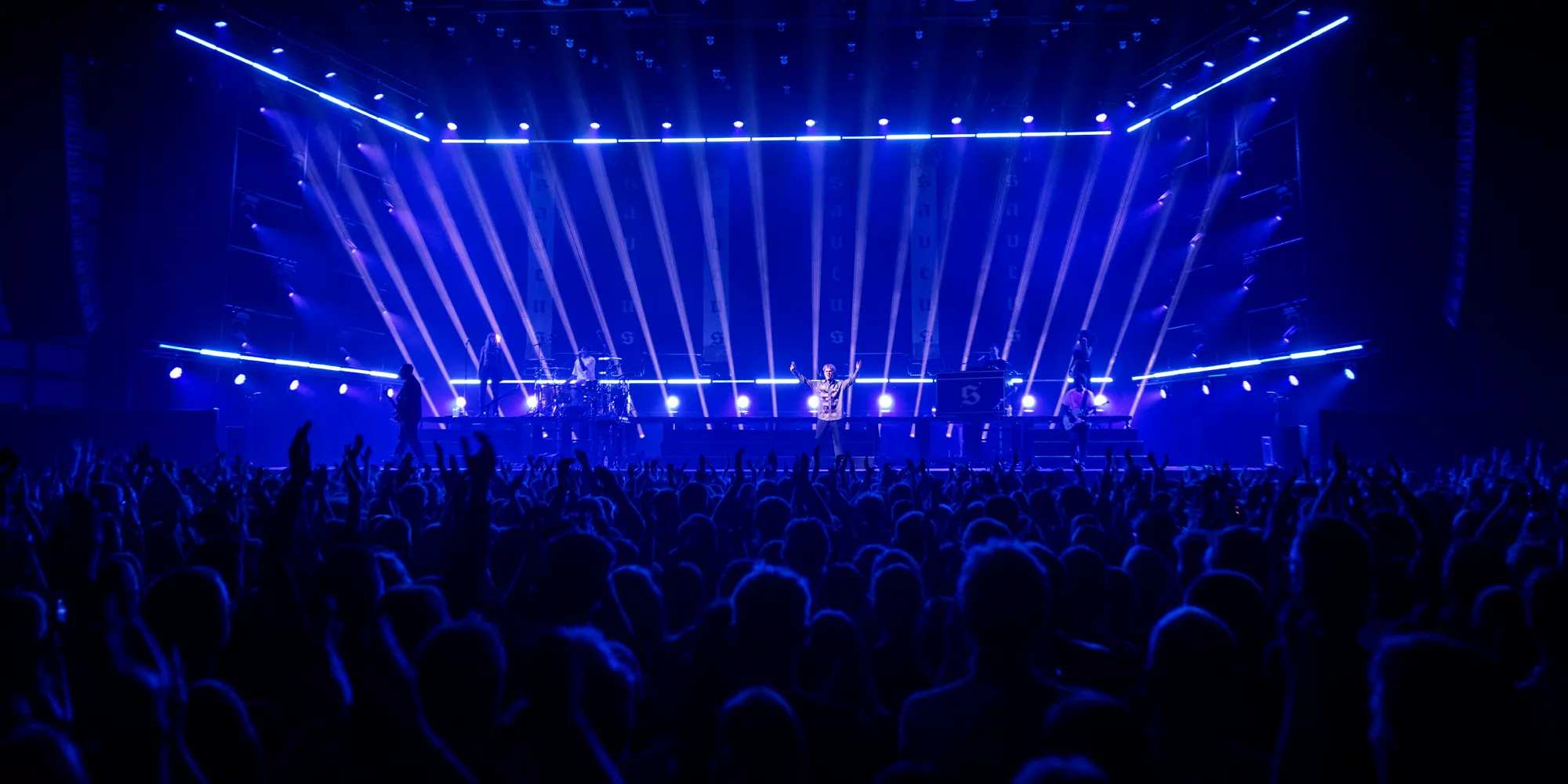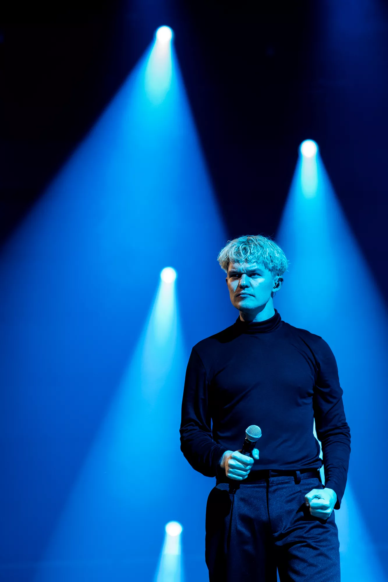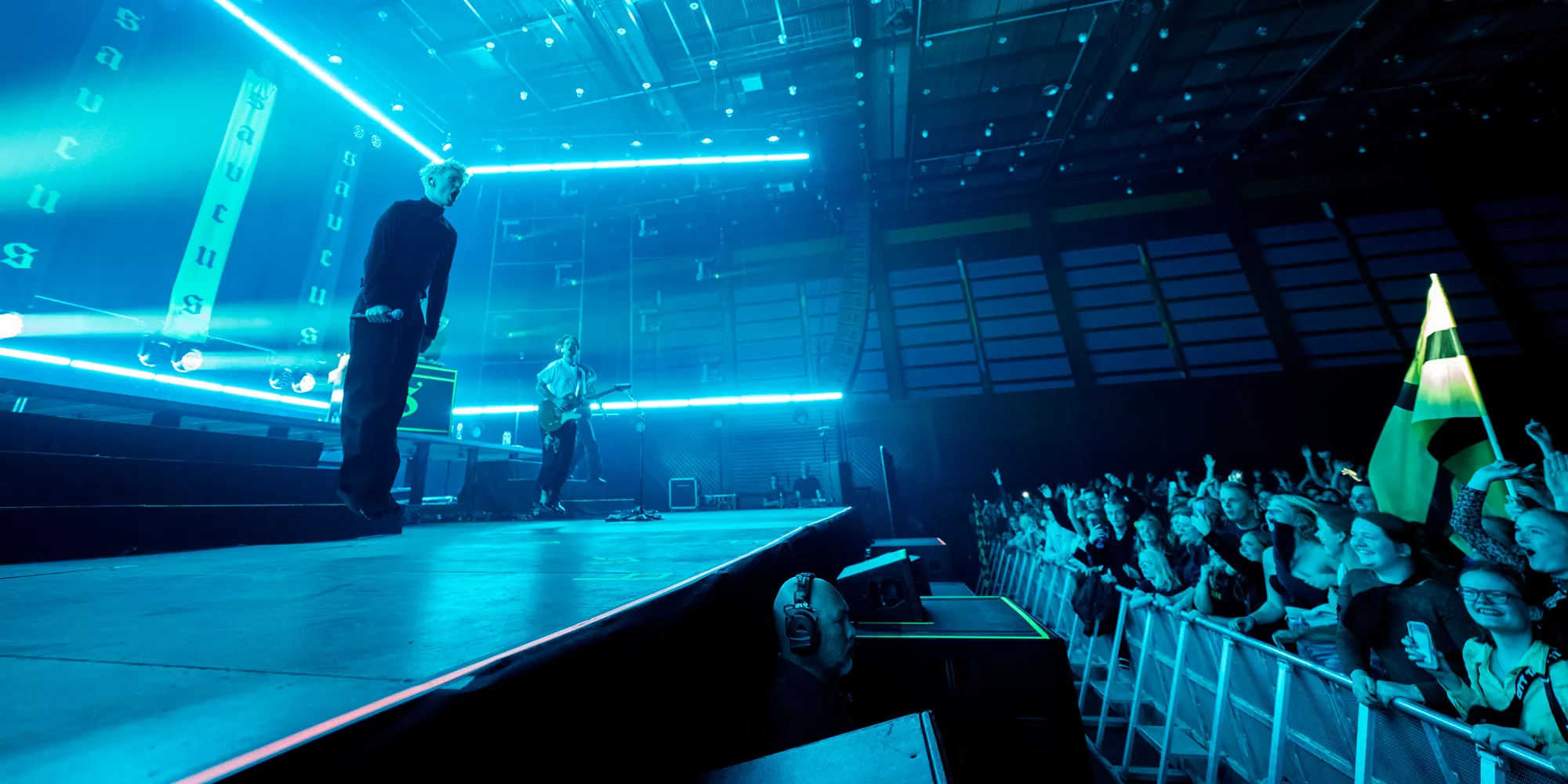 Saveus’ musik er ofte pompøs, så det giver god mening at høre ham et stort sted som Aarhus Congress Center med plads til 4000 gæster – og der er udsolgt i aften. Oprindeligt havde han annonceret først en, så tre, lynhurtigt udsolgte koncerter på Train i december 2021, men de blev aflyst grundet sidste