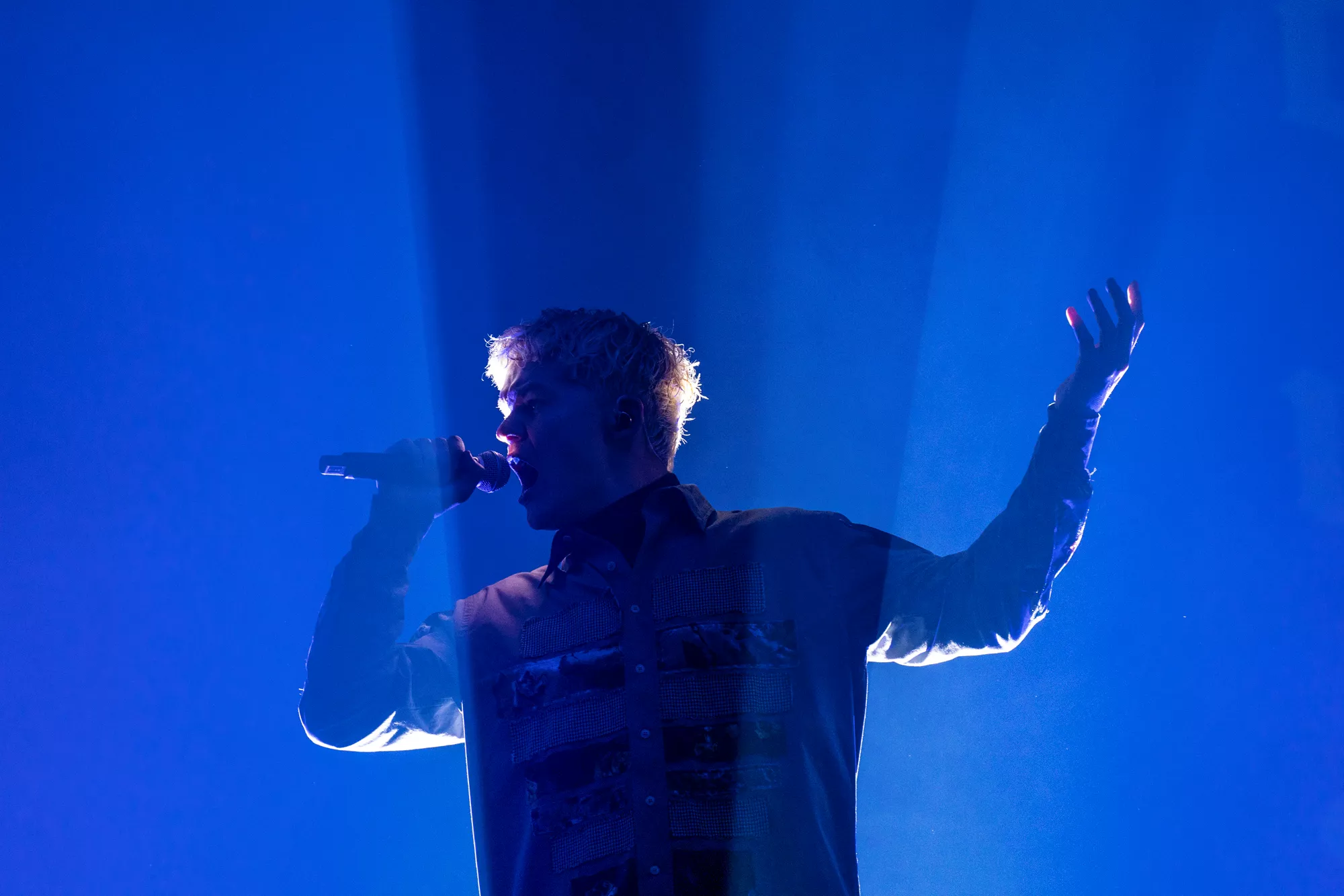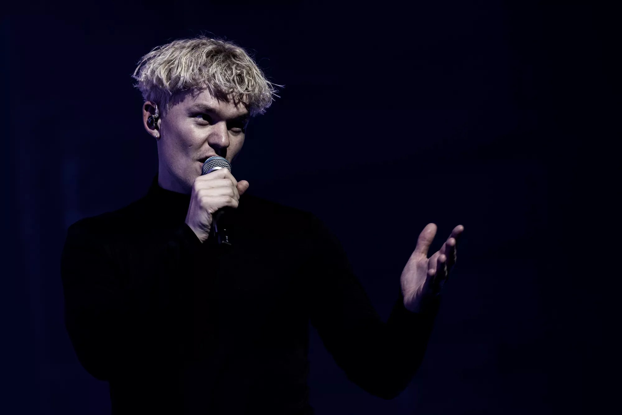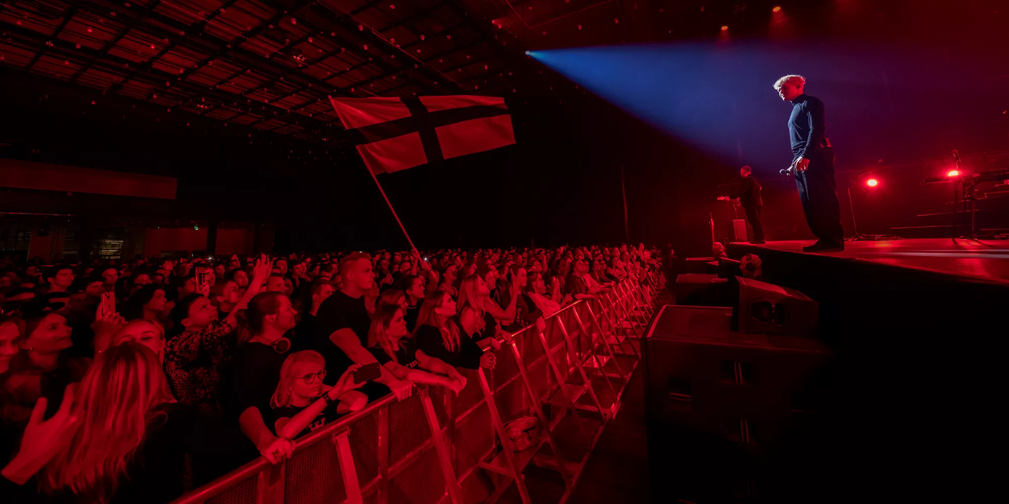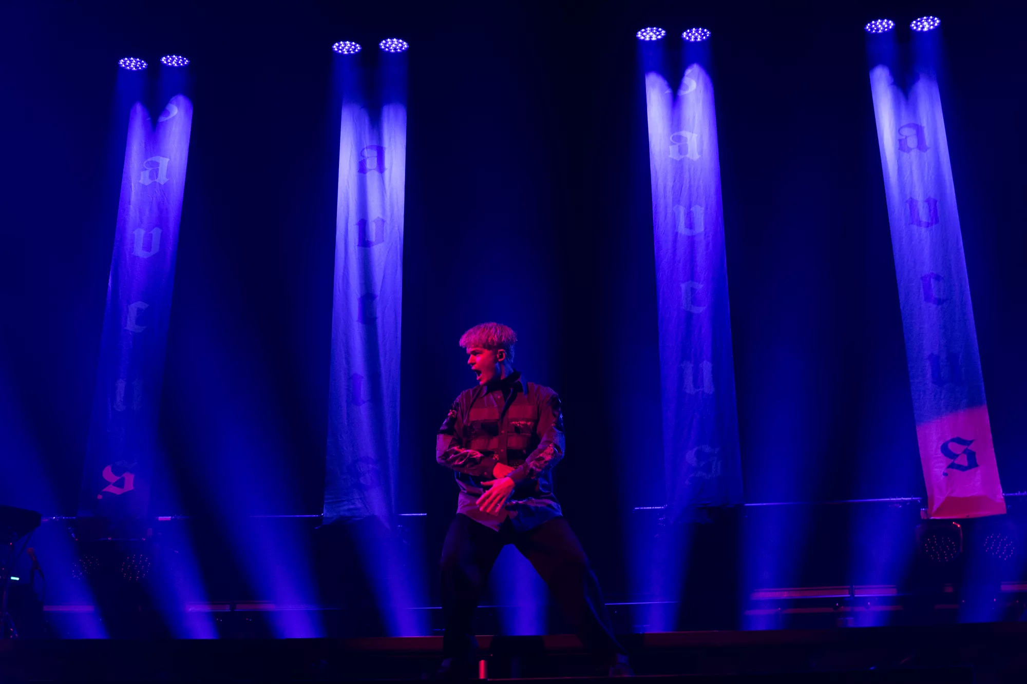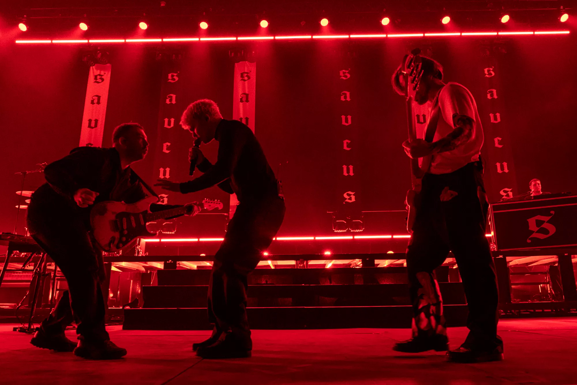 Saveus’ musik er ofte pompøs, så det giver god mening at høre ham et stort sted som Aarhus Congress Center med plads til 4000 gæster – og der er udsolgt i aften. Oprindeligt havde han annonceret først en, så tre, lynhurtigt udsolgte koncerter på Train i december 2021, men de blev aflyst grundet sidste