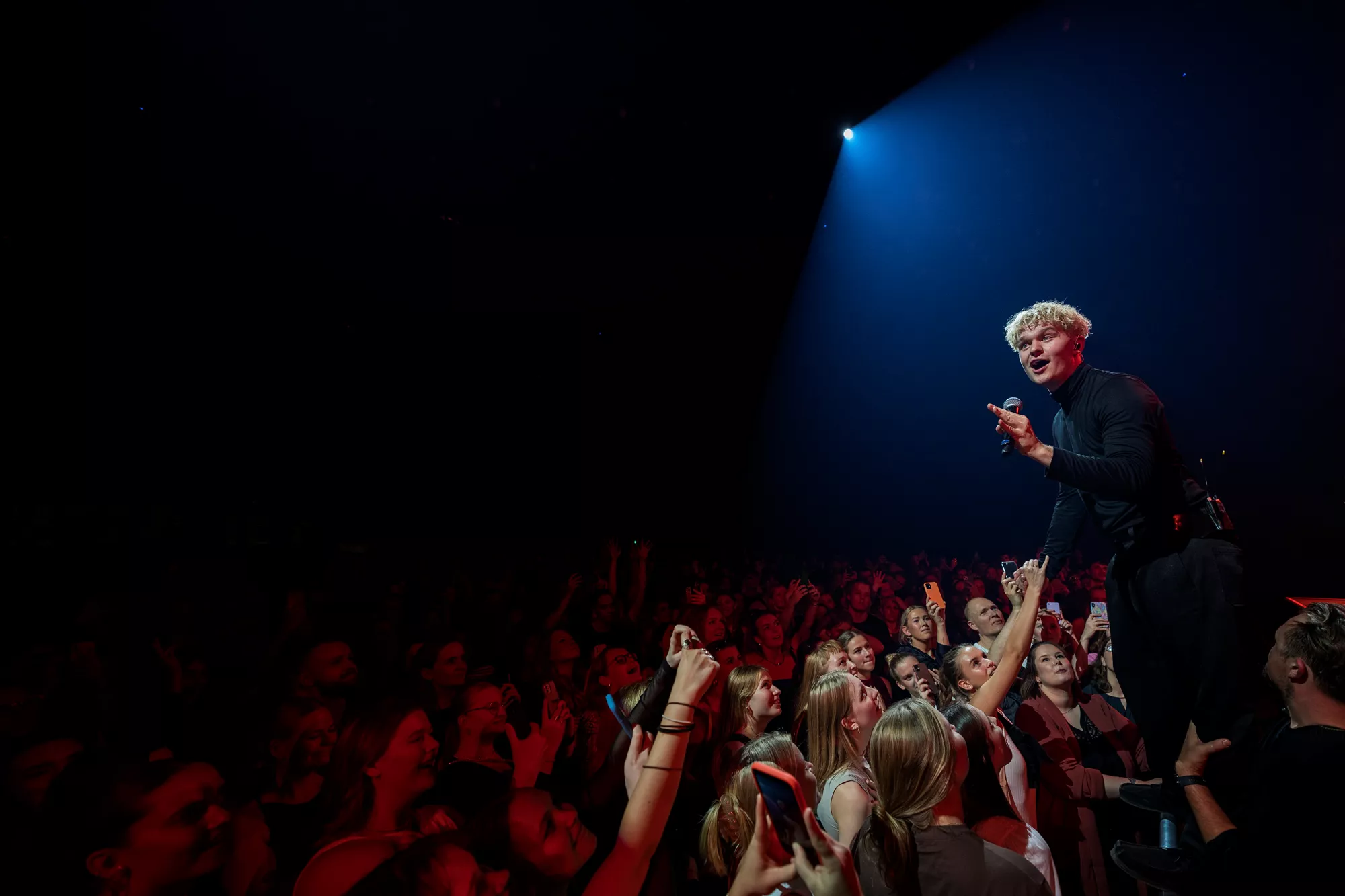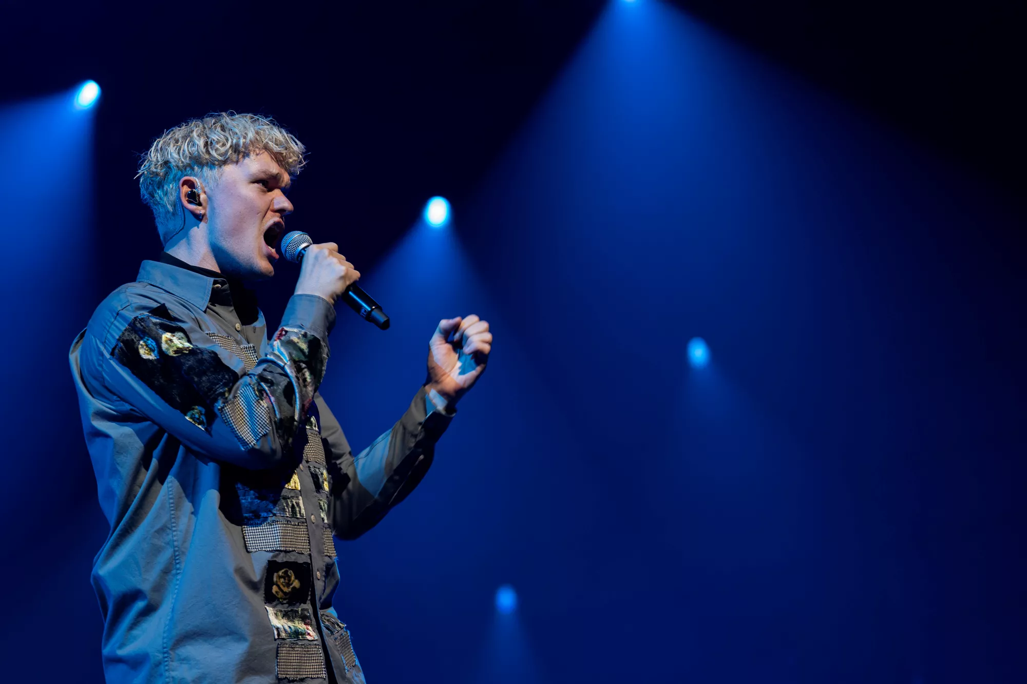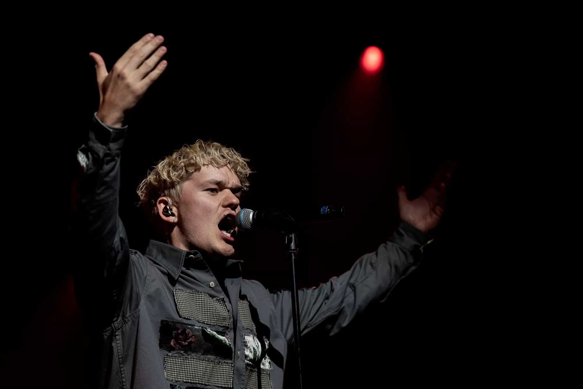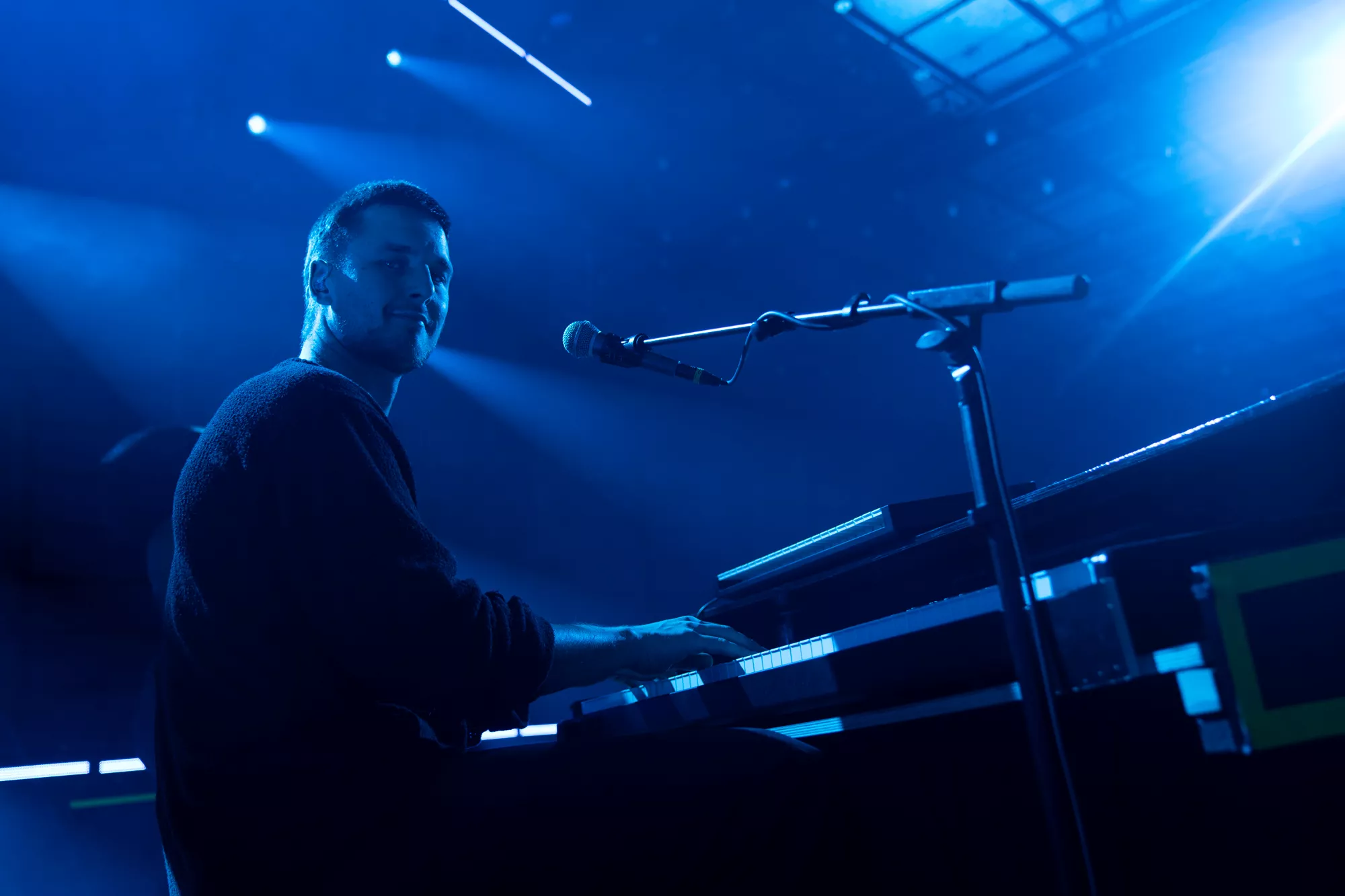 Saveus’ musik er ofte pompøs, så det giver god mening at høre ham et stort sted som Aarhus Congress Center med plads til 4000 gæster – og der er udsolgt i aften. Oprindeligt havde han annonceret først en, så tre, lynhurtigt udsolgte koncerter på Train i december 2021, men de blev aflyst grundet sidste