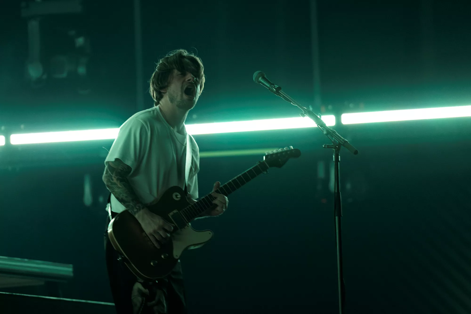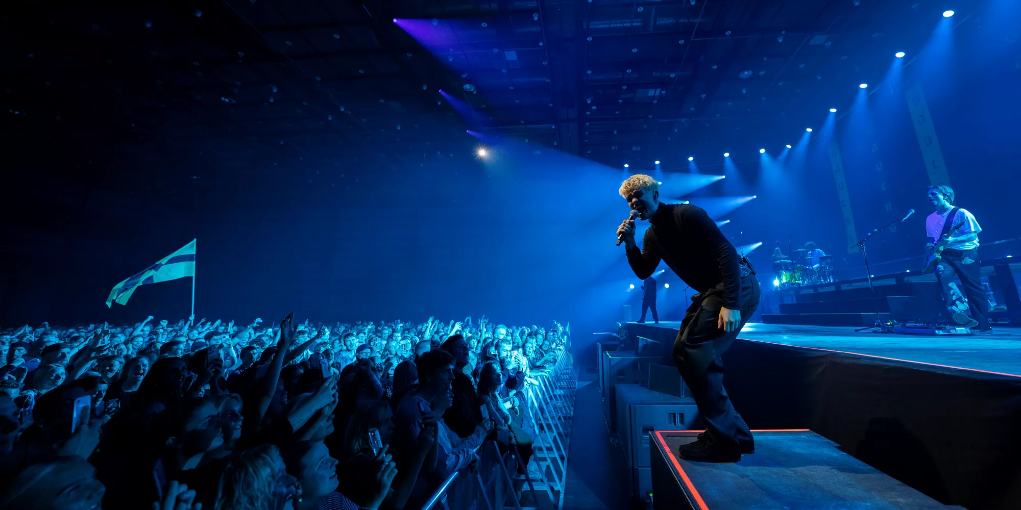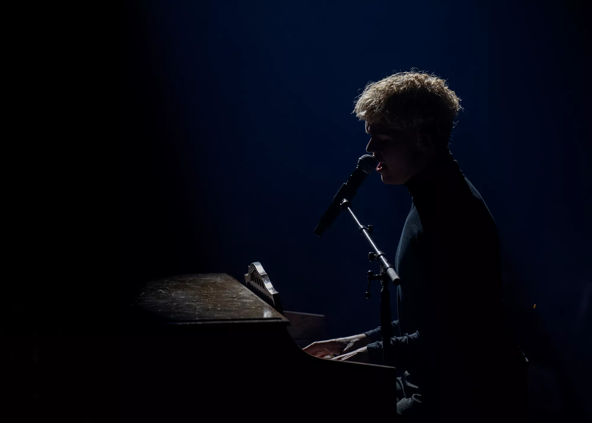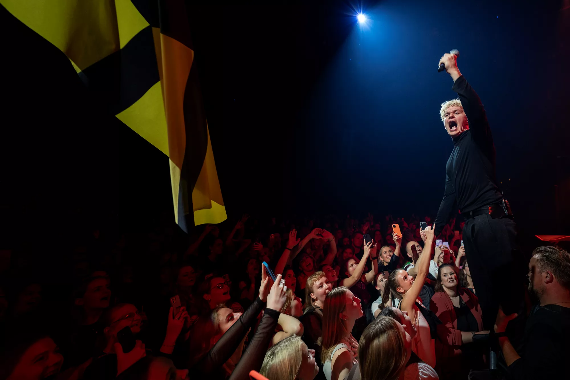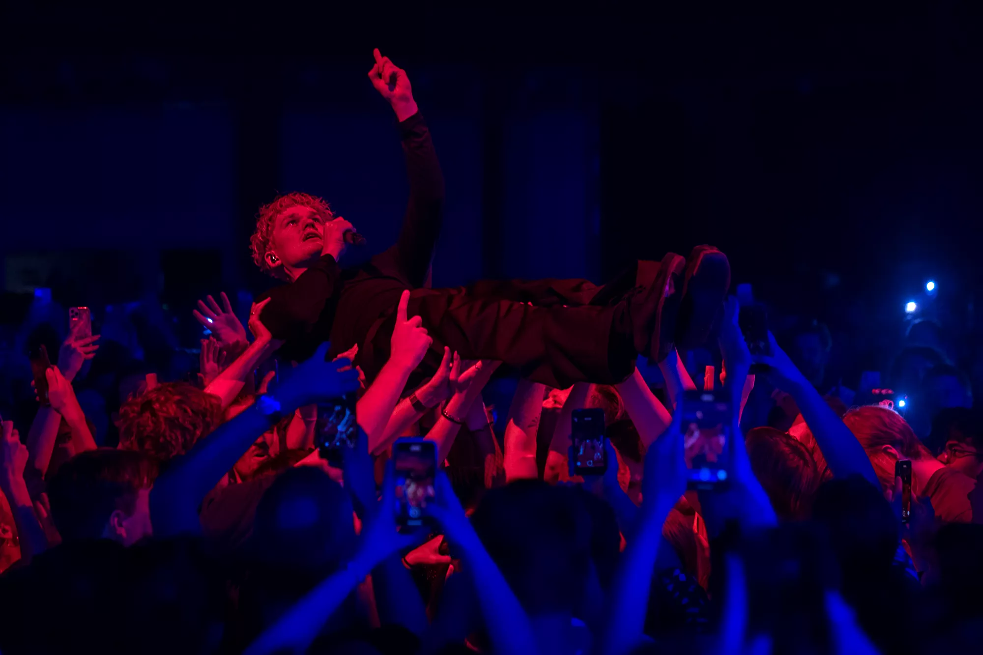 Saveus’ musik er ofte pompøs, så det giver god mening at høre ham et stort sted som Aarhus Congress Center med plads til 4000 gæster – og der er udsolgt i aften. Oprindeligt havde han annonceret først en, så tre, lynhurtigt udsolgte koncerter på Train i december 2021, men de blev aflyst grundet sidste