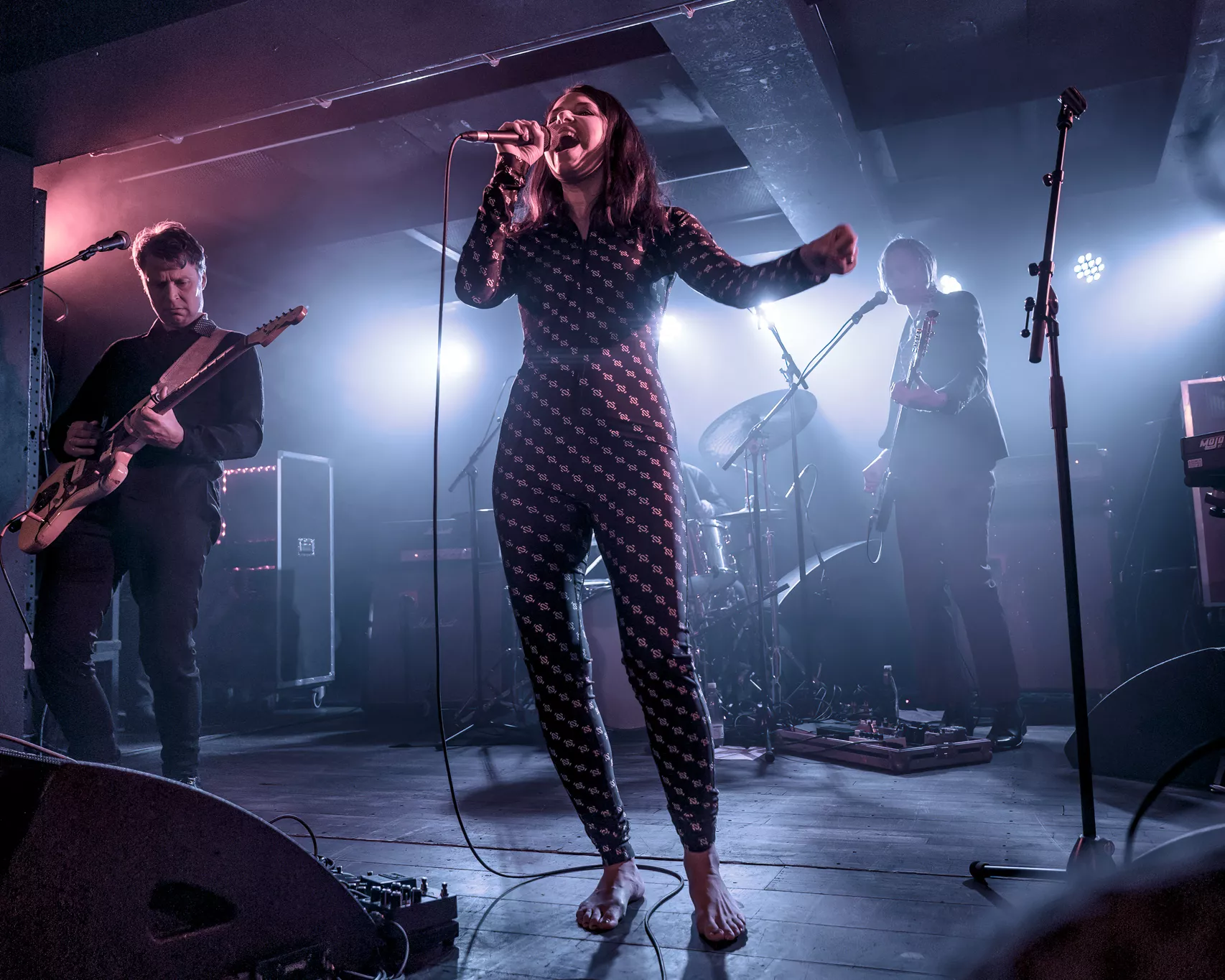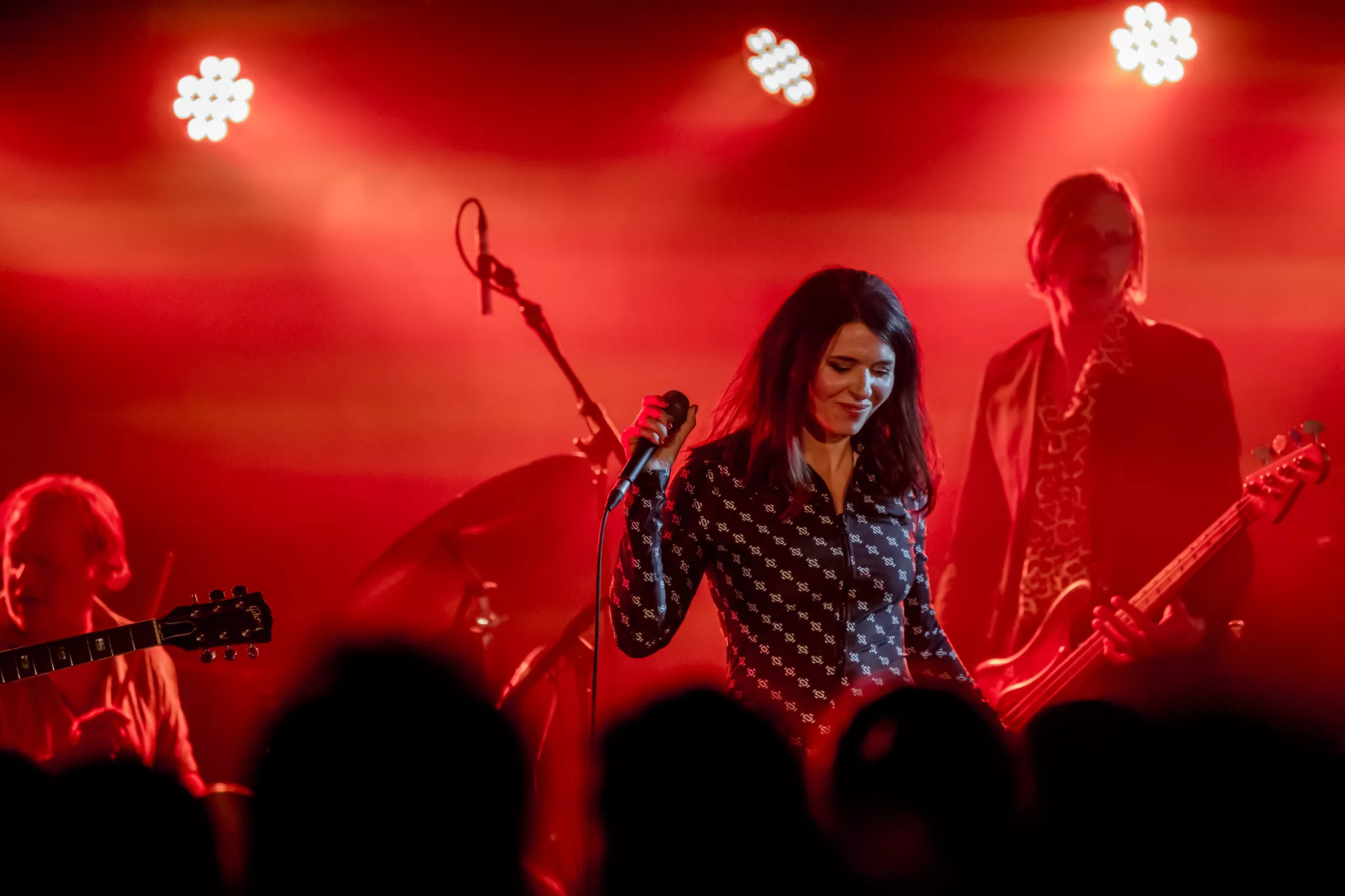 20:10 entrerer gruppen i kvintet-formation. Spillestedet Postens mindste scene er i brug. Til gengæld er der proppet. “Det er som at komme hjem igen,” lyder de første ord fra vokalist og guitarist Kira Skov.