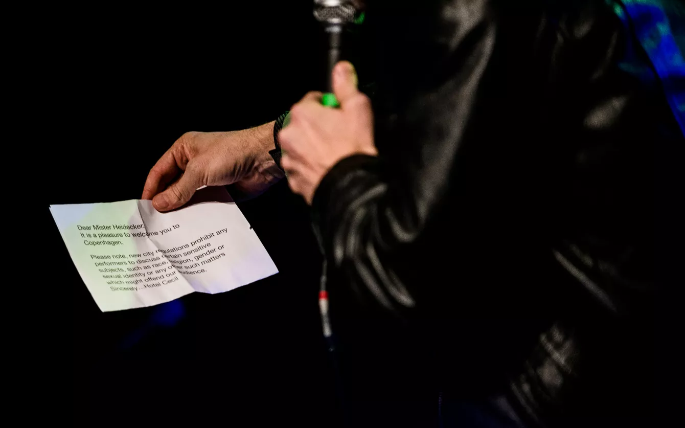 Komiker, producer, musiker og Bob Dylan-fanatiker Tim Heidecker svinger denne mandag aften forbi de fine lokaler inde på Hotel Cecil. Som jeg kigger hen over det skovmandsskjortebærende og ansigtsbehårede publikum, kan jeg mærke, at en klar spænding og summen foregår. Over anlægget begynder noget