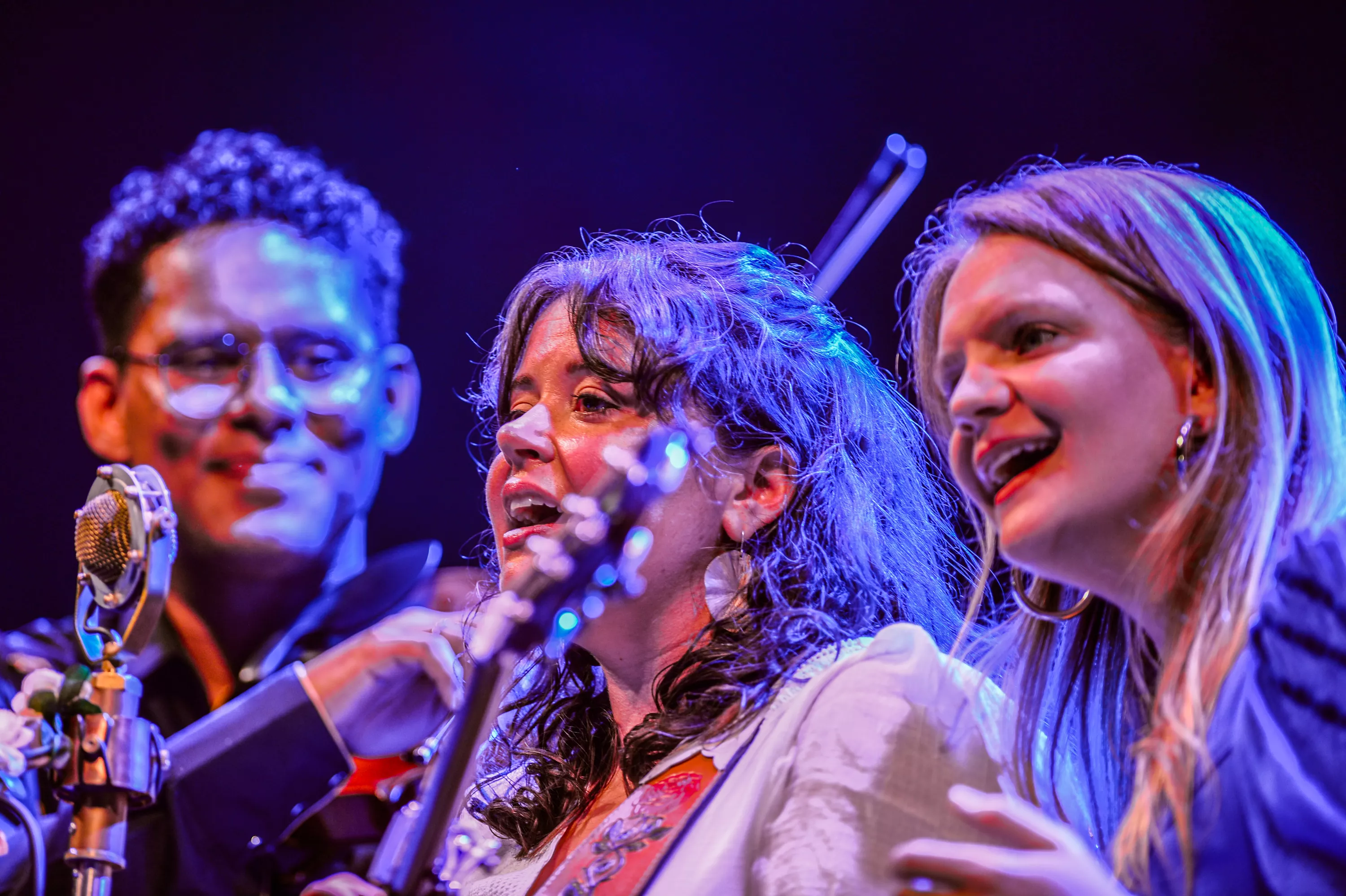 Det er noget af en stjerneparade, der er mødt frem i Telt 1 allerede klokken 11.45 fredag formiddag. De to solister Emily Scott Robinson og Alisa Amador har teamet op med duoen Violet Bell, og så er der dømt amerikansk country, folk og det, der ligner ad libitum. Teltet er da også fyldt trods det