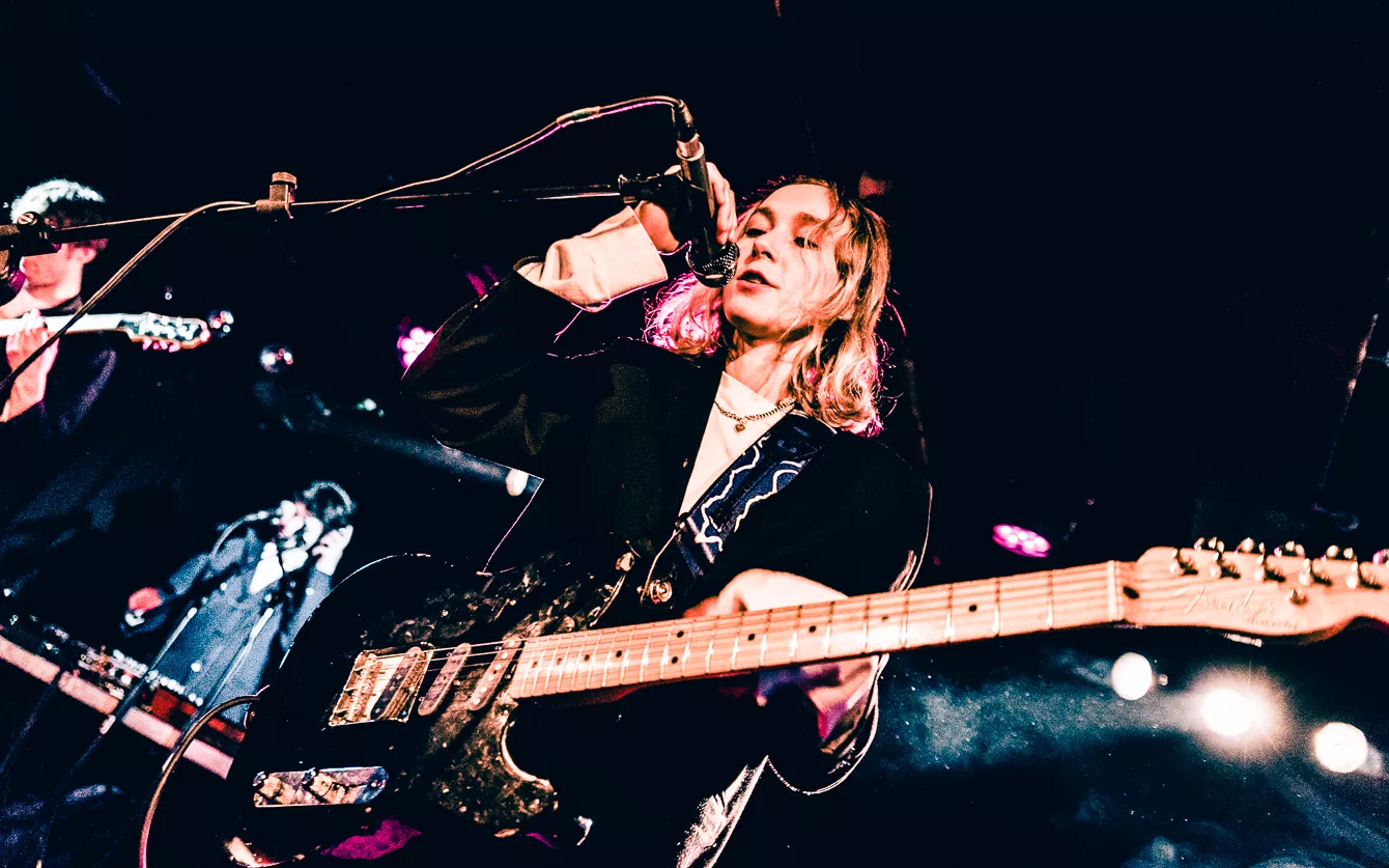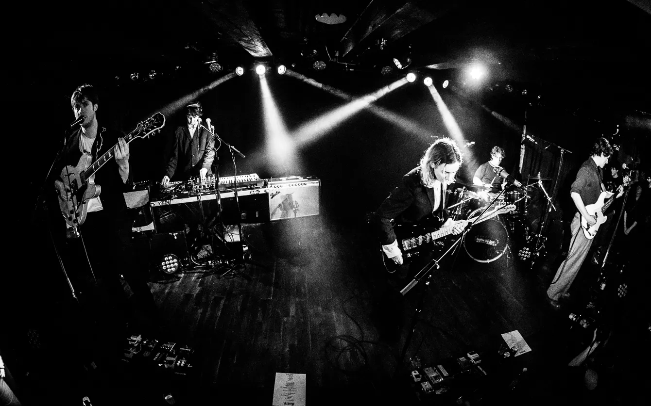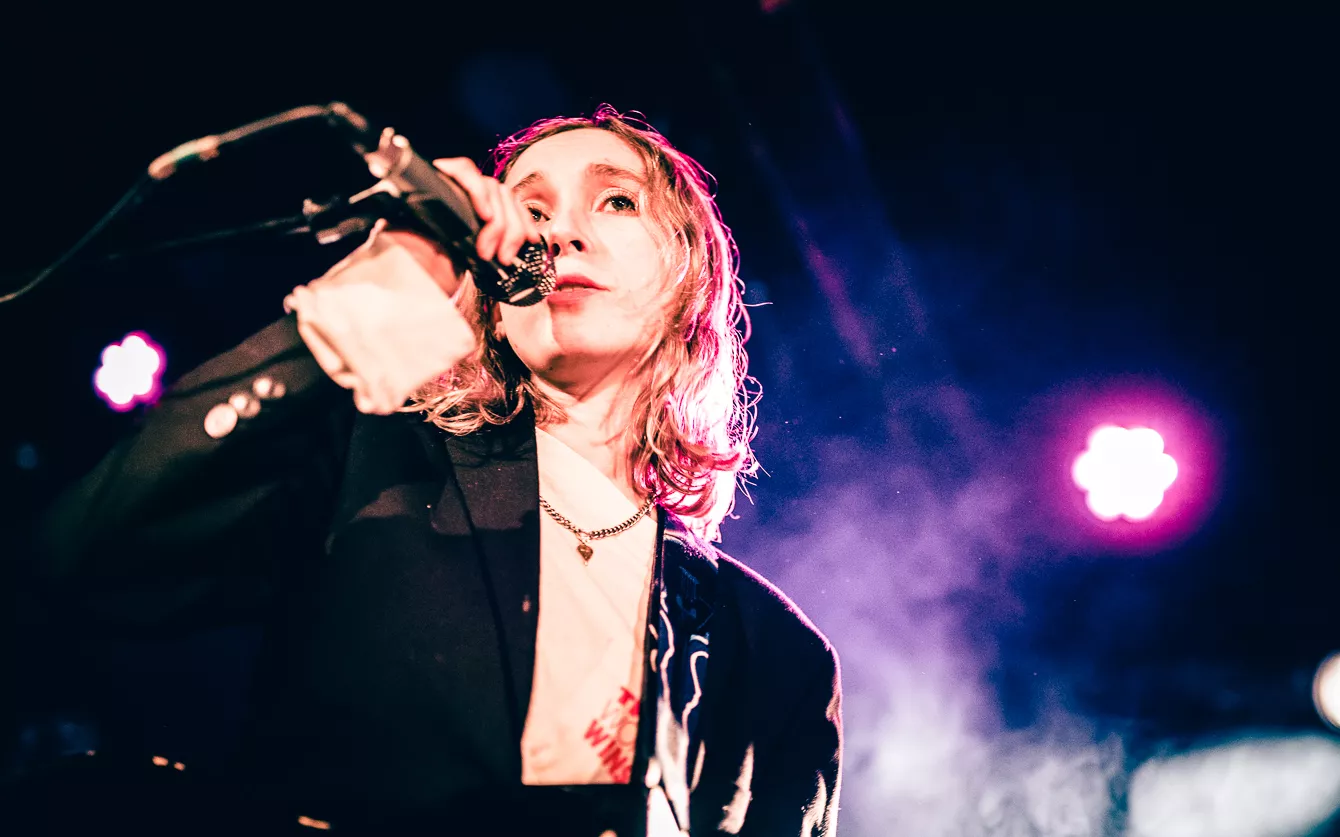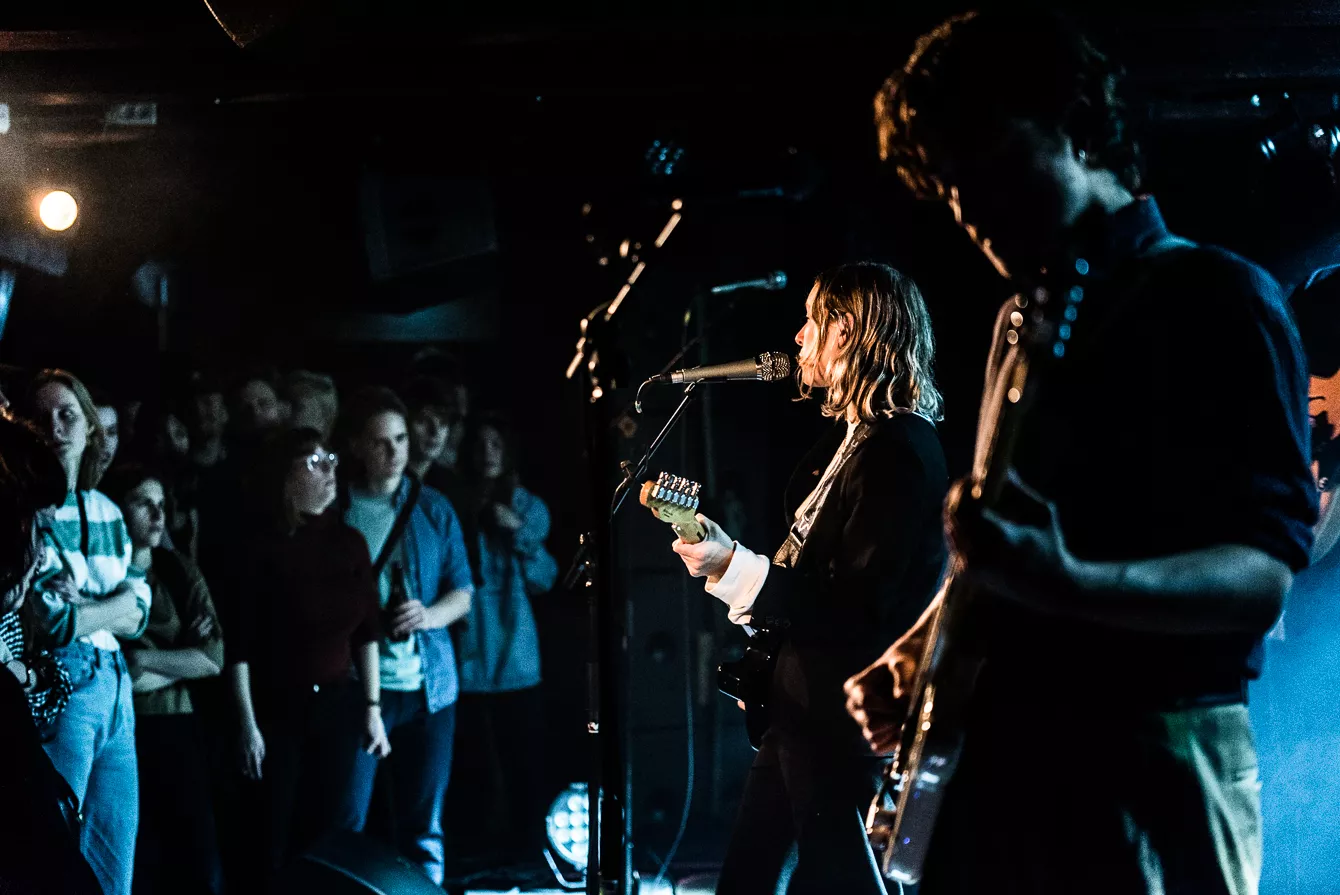 I aften står Loppens musikalske tema på lyden af de opgivende og depressivt anlagte 90’ere. Udsolgt er der bestemt ikke, men det er heller ikke, fordi her er en mangel på mennesker. Af hvad jeg lægger mærke til, er der en stor andel af publikum, der taler britisk engelsk. Ikke at det overrasker, nu