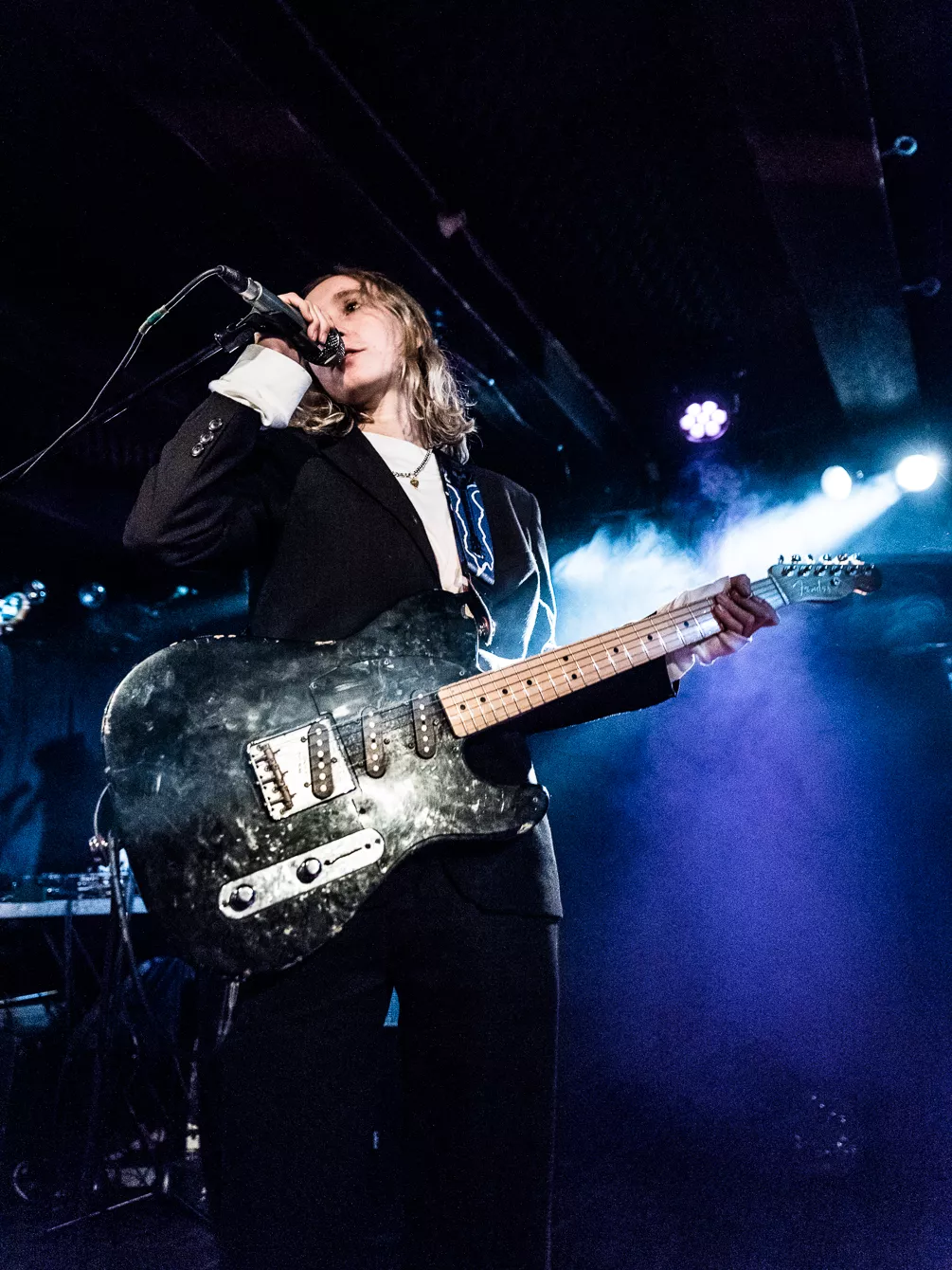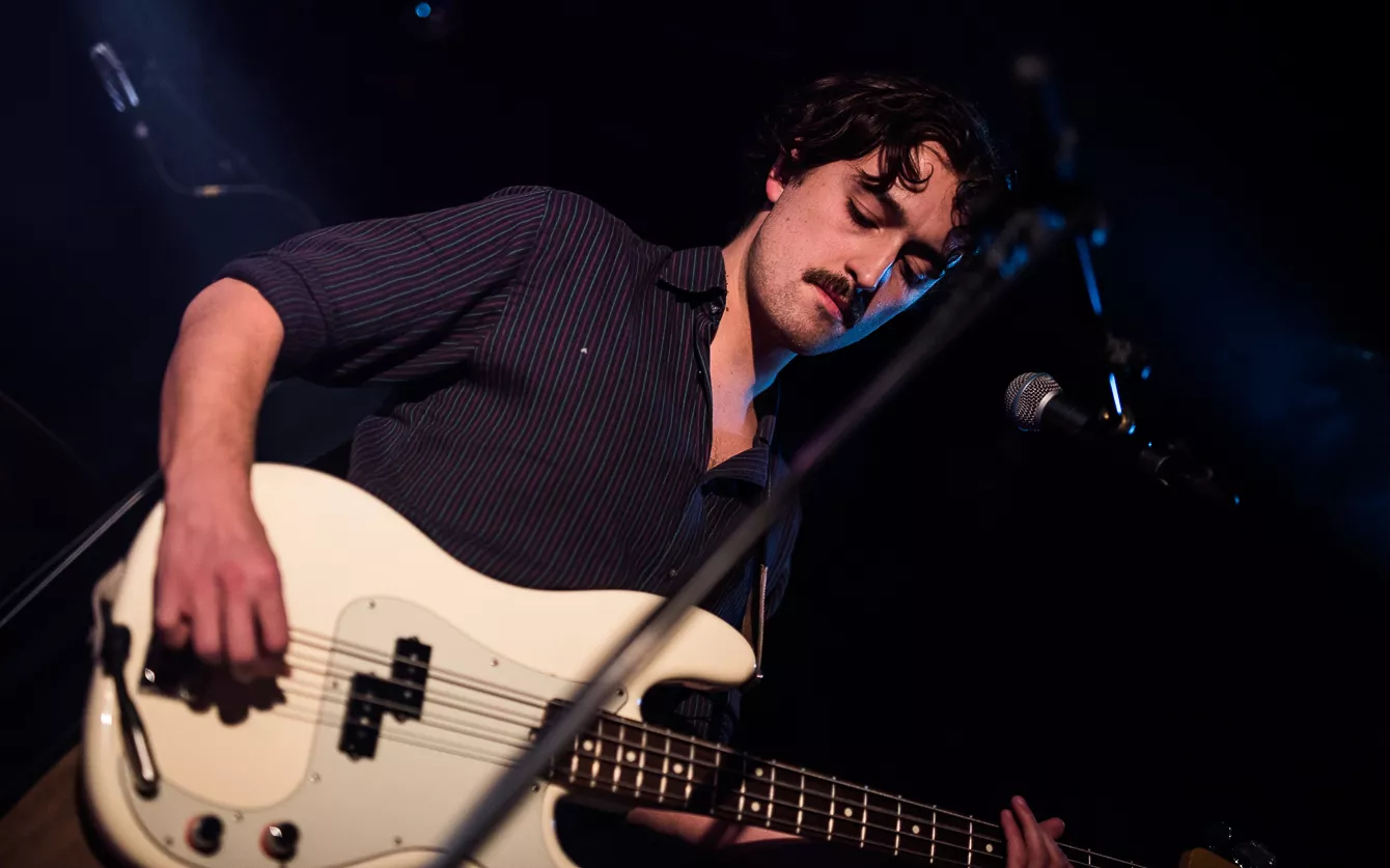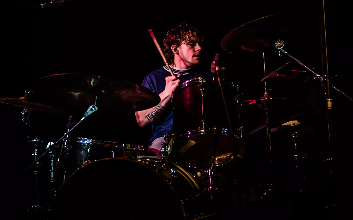 I aften står Loppens musikalske tema på lyden af de opgivende og depressivt anlagte 90’ere. Udsolgt er der bestemt ikke, men det er heller ikke, fordi her er en mangel på mennesker. Af hvad jeg lægger mærke til, er der en stor andel af publikum, der taler britisk engelsk. Ikke at det overrasker, nu