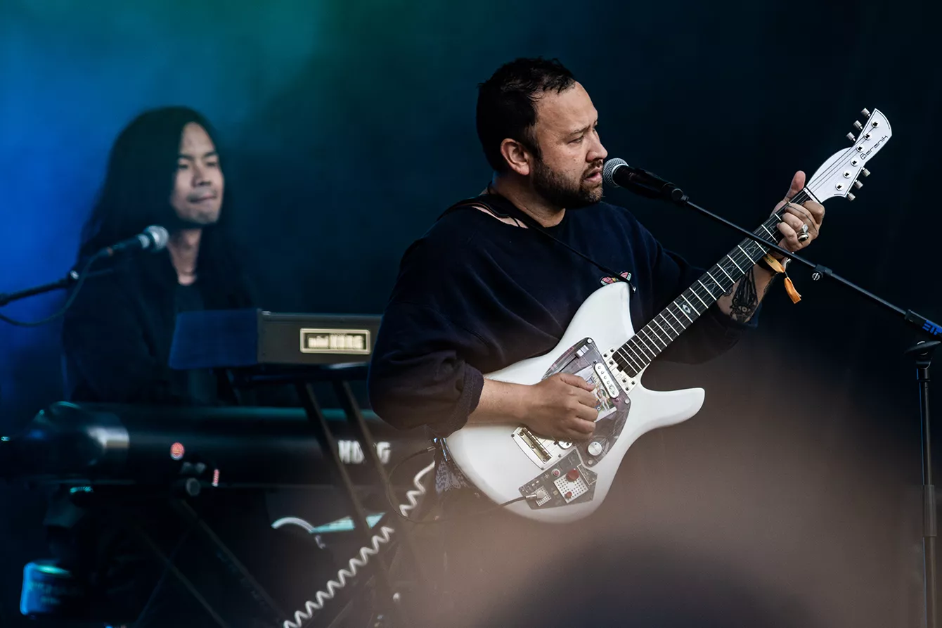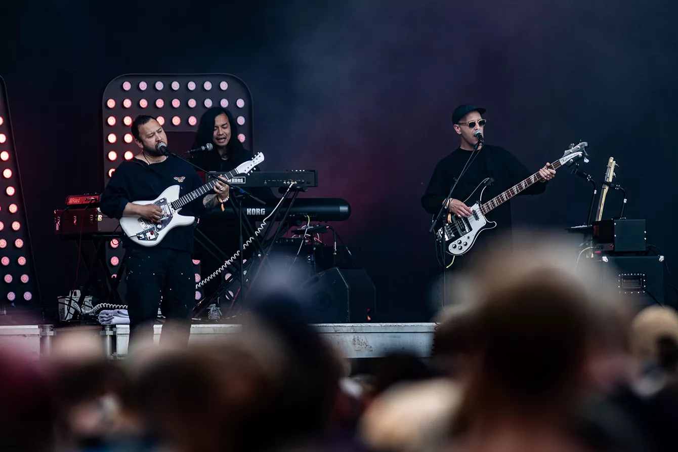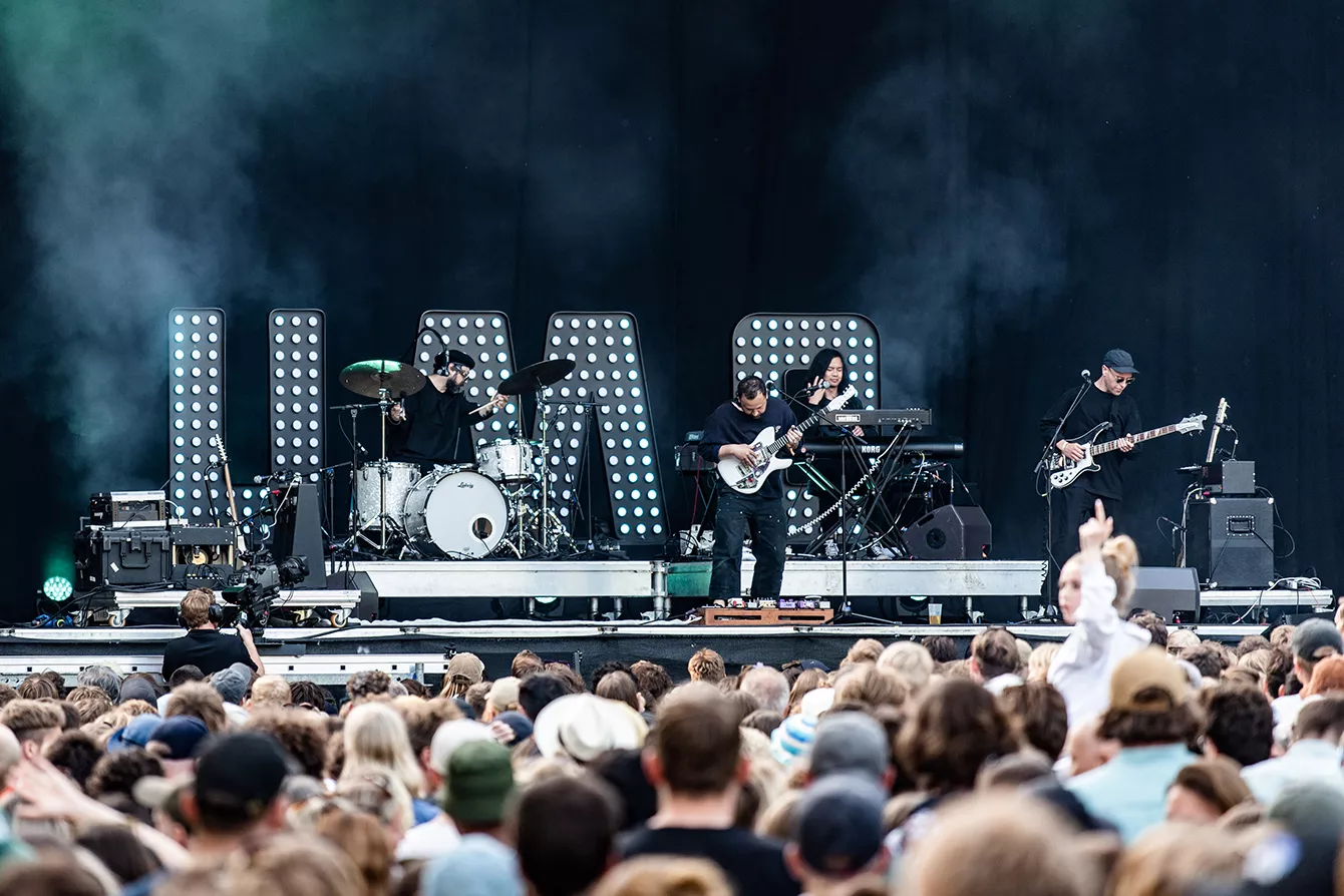 Vi har nu passeret solskinnets højdepunkt, og det kan man godt mærke får lidt mere liv frem i dagens publikum, der indtil videre har kørt meget i første gear. Oppe på scenen “Under Kronen” står tre lysende UMO-bogstaver. På sådan en højlys dag som i dag kommer de dog ikke til at spille den store rolle