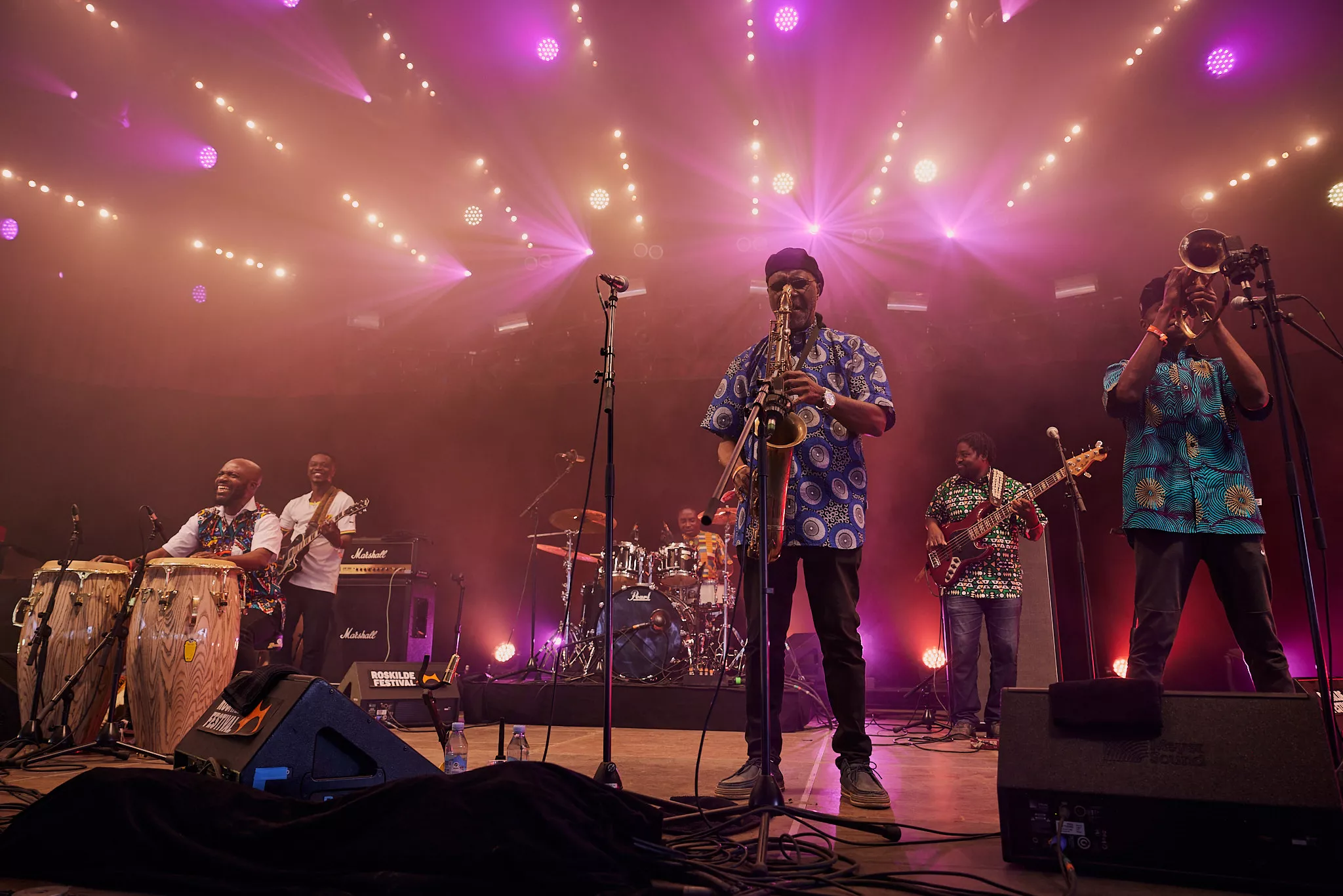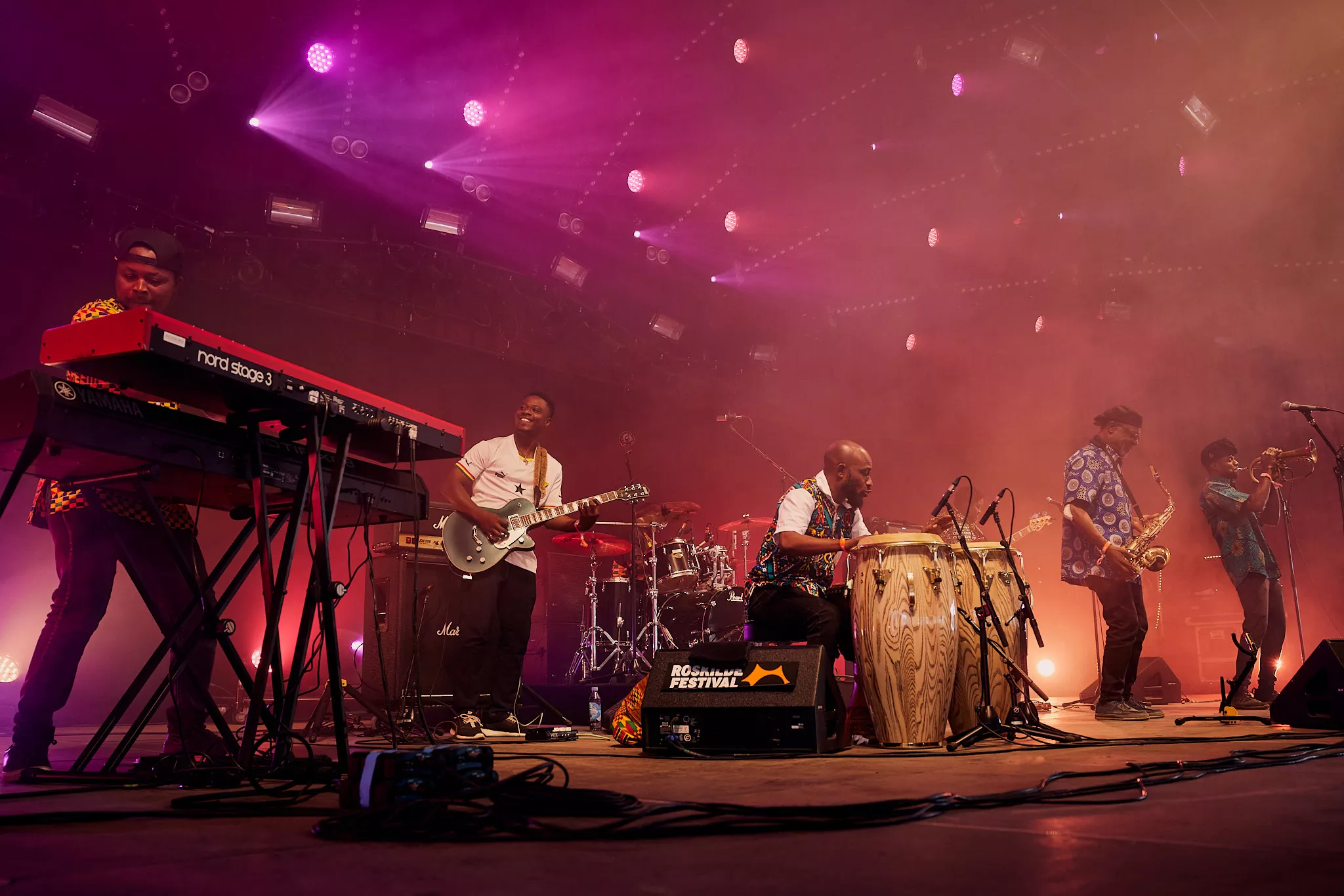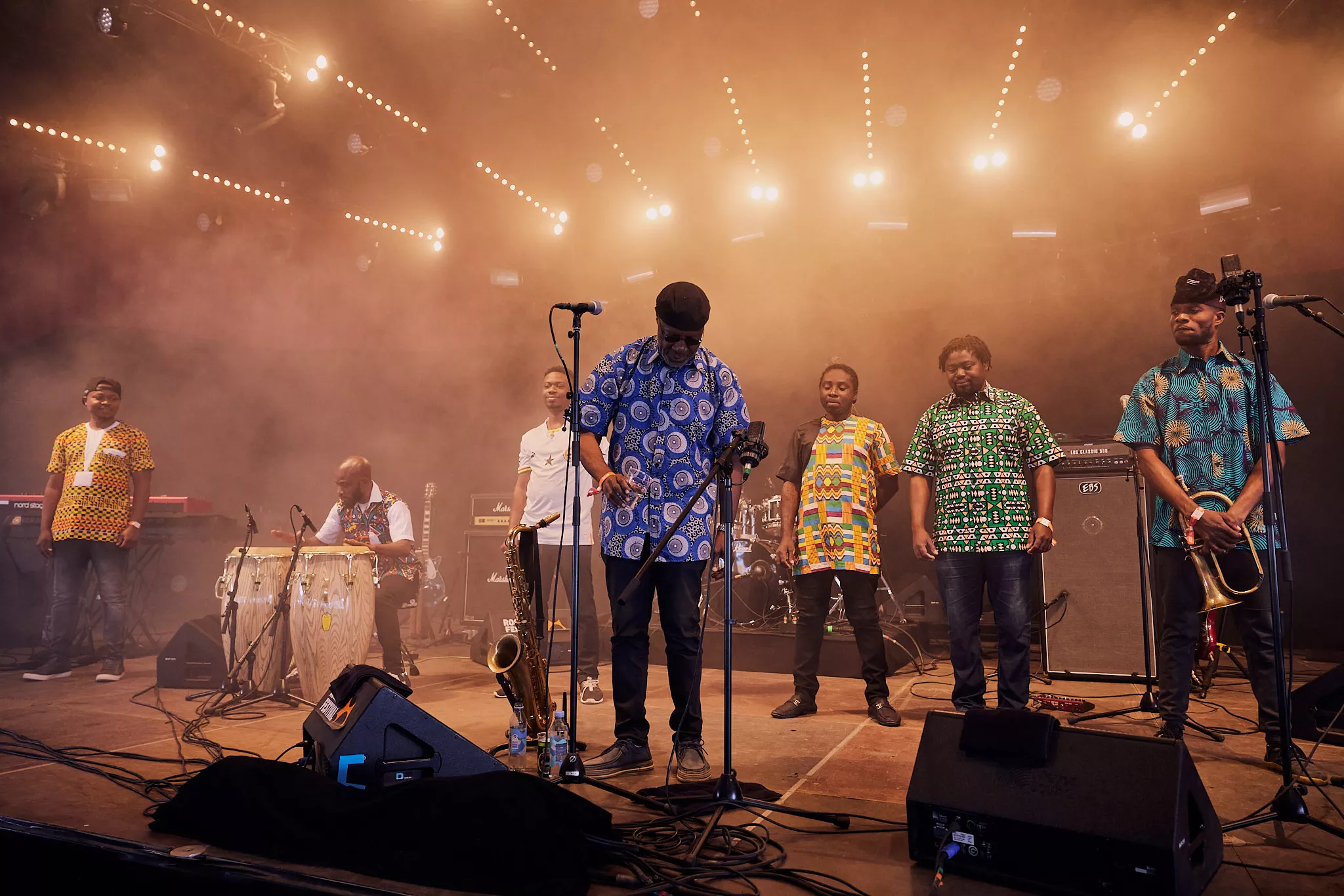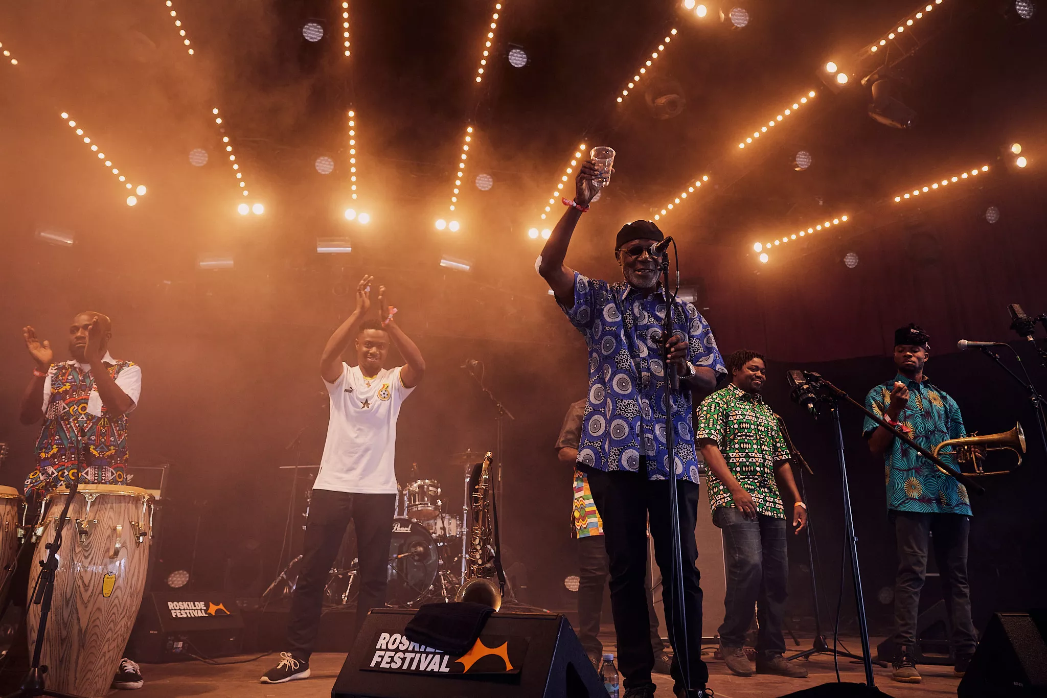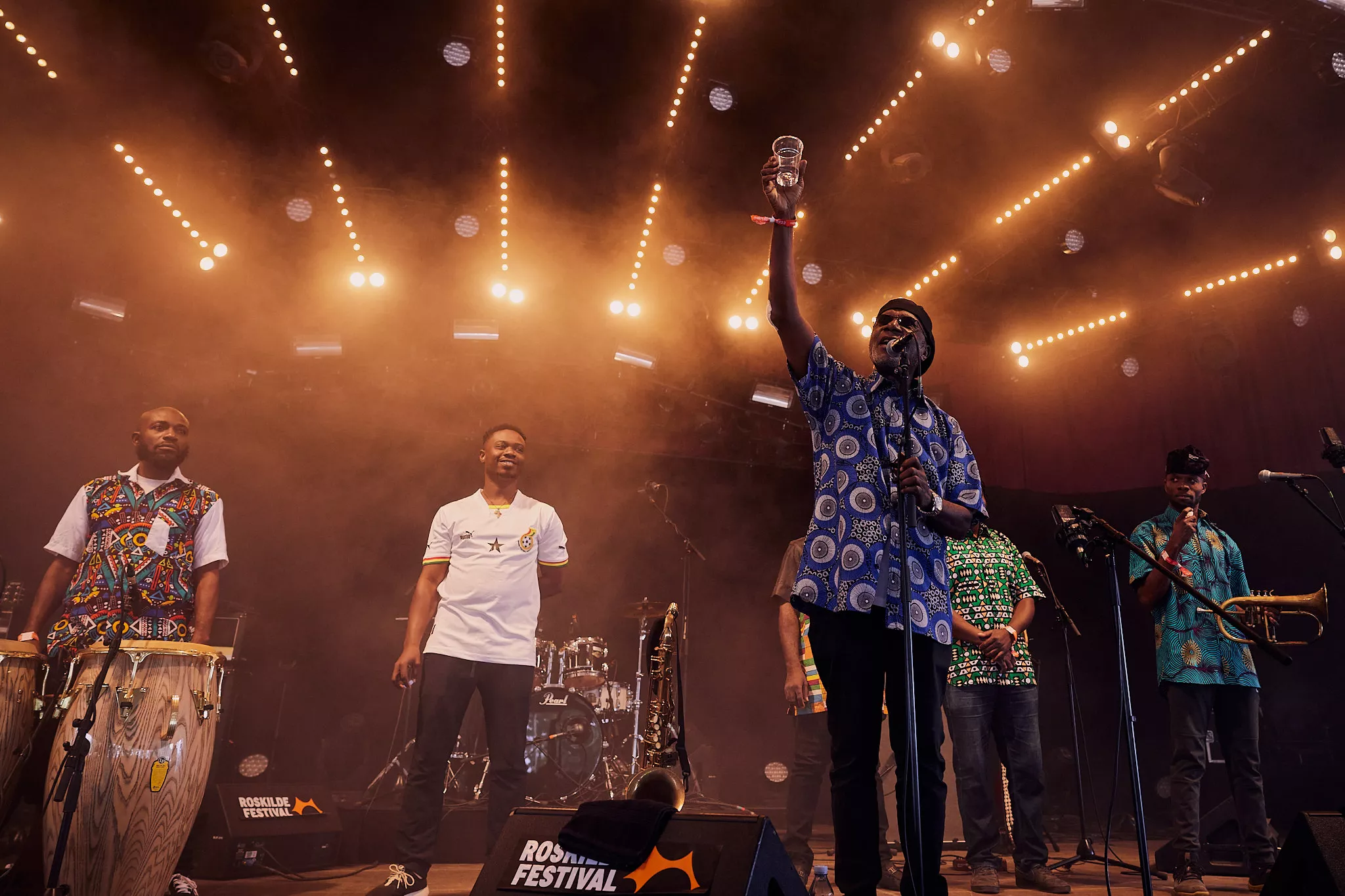 Mens skyerne ved middagstid begyndte at tætnes over Roskildes nogenlunde morgenduelige gæster på festivalens andendag, indtog den ghanesiske veteran Gyedu-Blay Ambolley og hans band den nye Gaia-scene, der ligger perfekt helt nede ved hegnet vendt ind mod de trætte, tømmermandsramte masser.