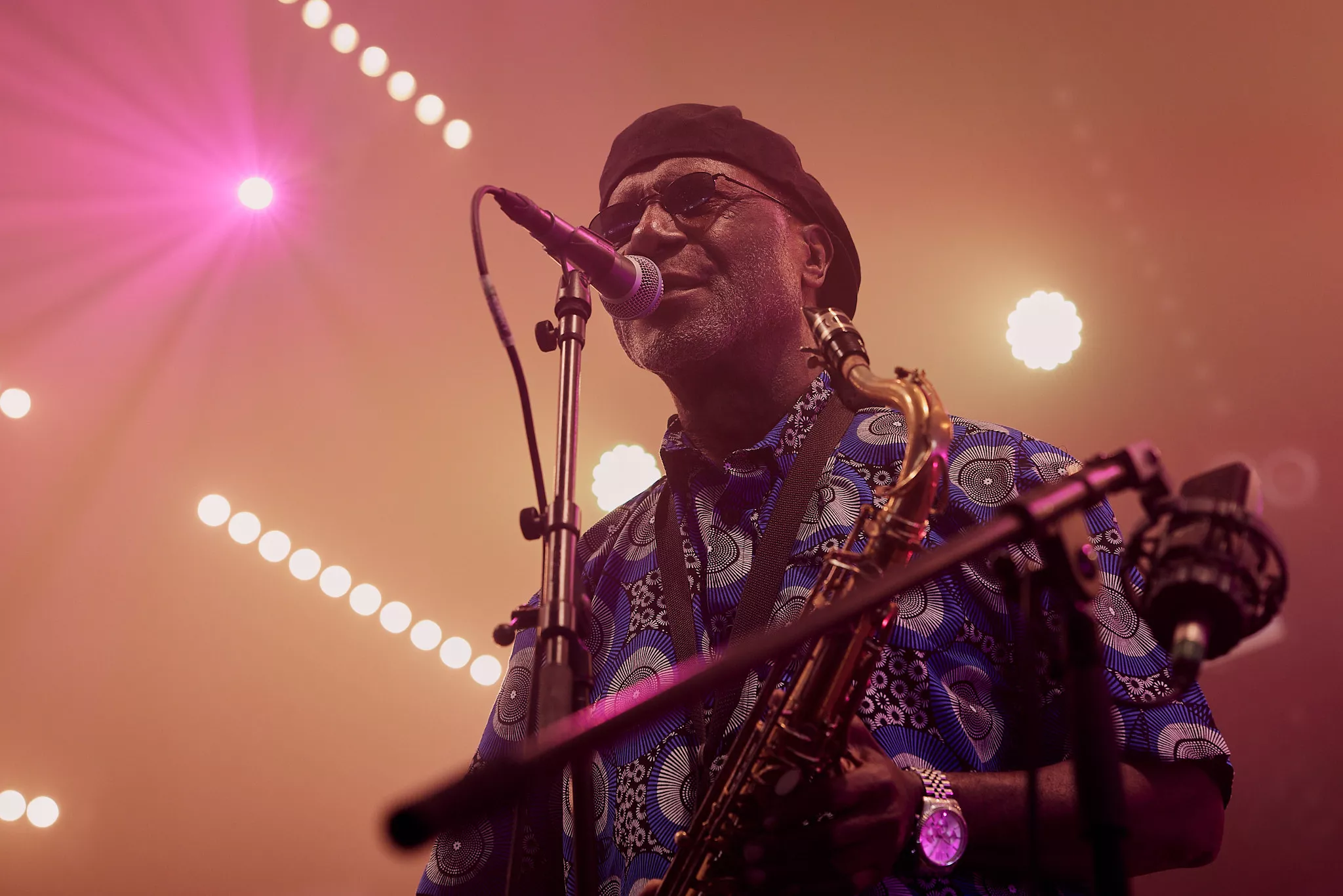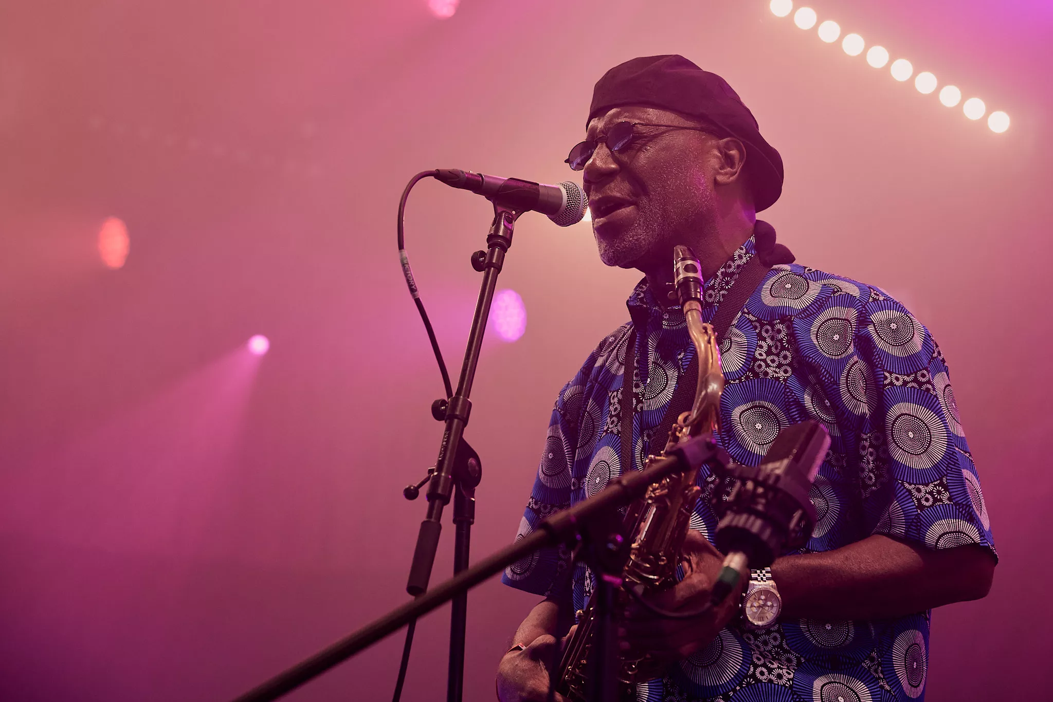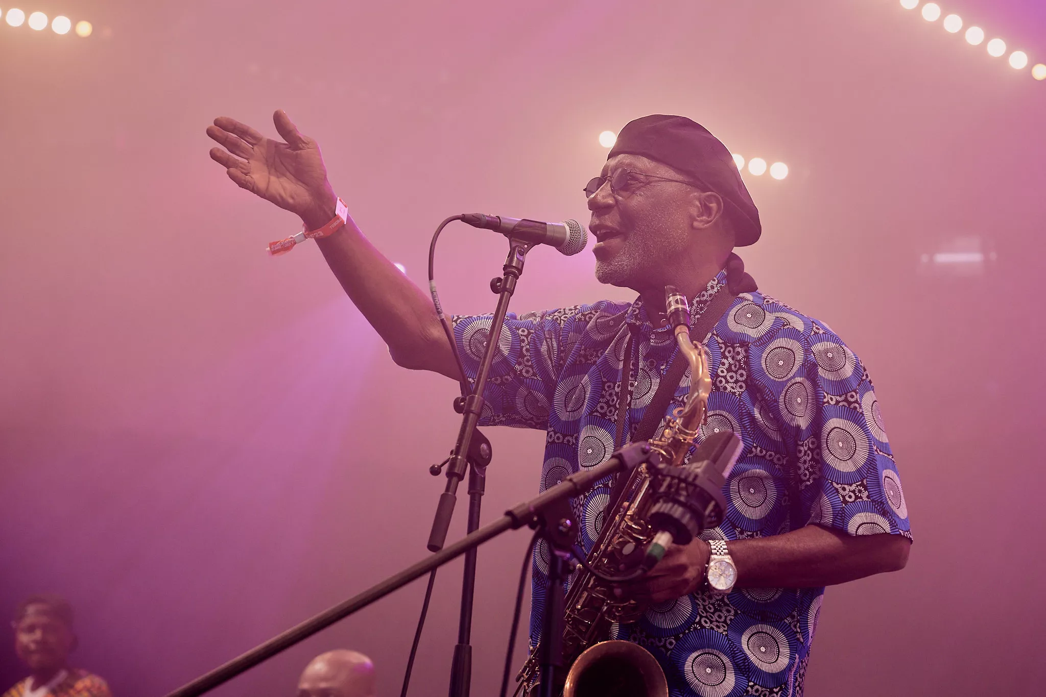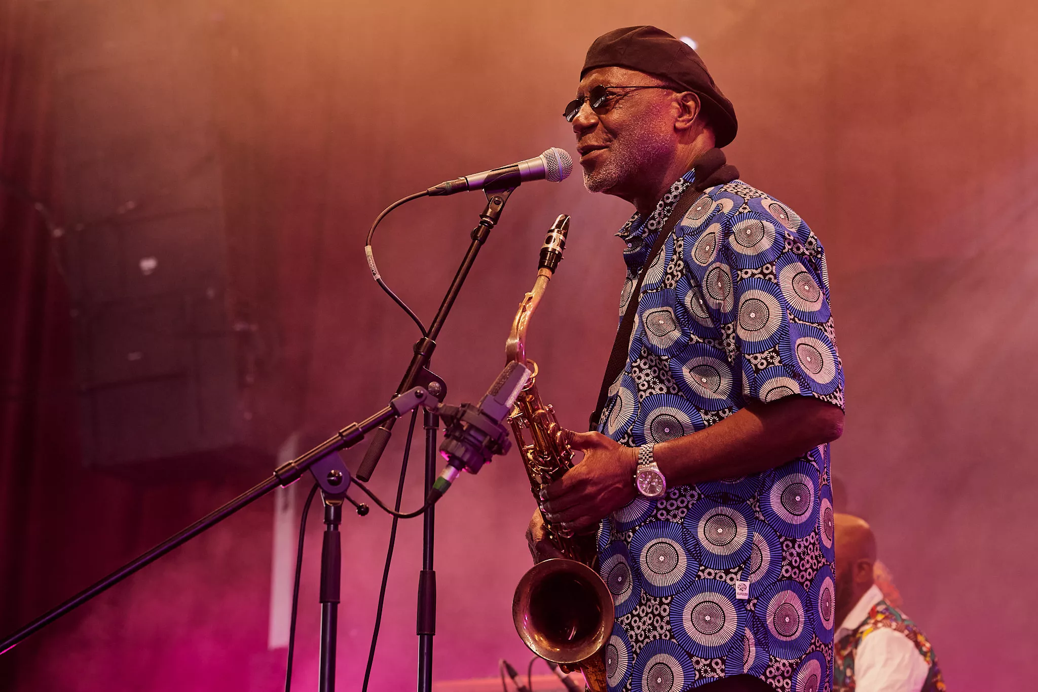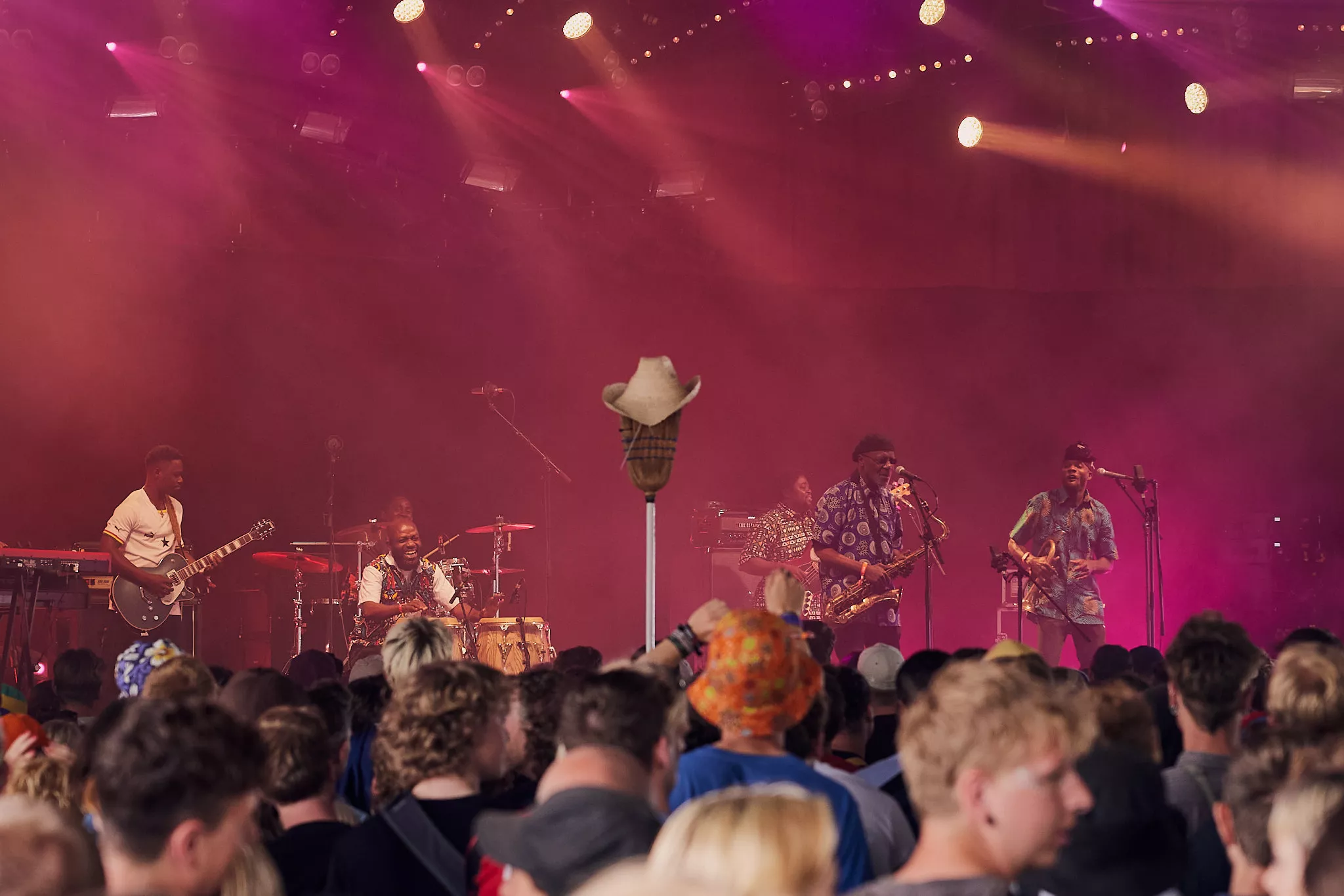 Mens skyerne ved middagstid begyndte at tætnes over Roskildes nogenlunde morgenduelige gæster på festivalens andendag, indtog den ghanesiske veteran Gyedu-Blay Ambolley og hans band den nye Gaia-scene, der ligger perfekt helt nede ved hegnet vendt ind mod de trætte, tømmermandsramte masser.