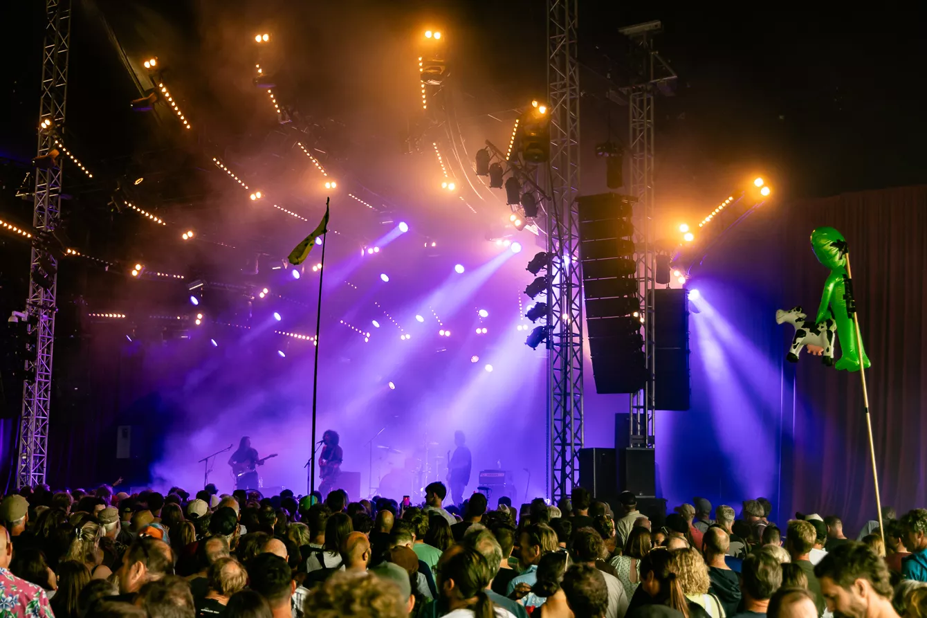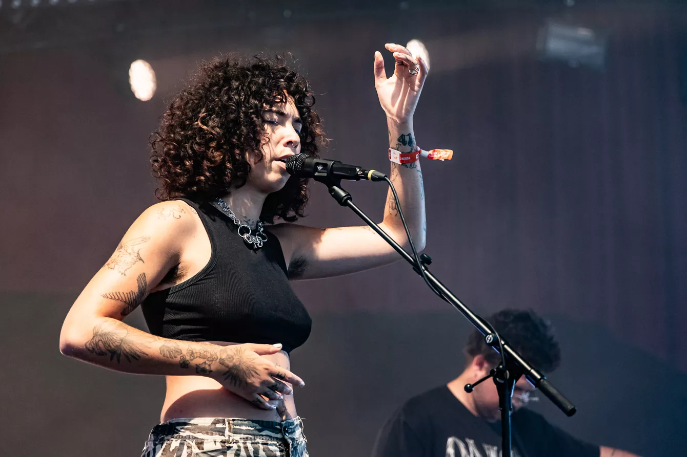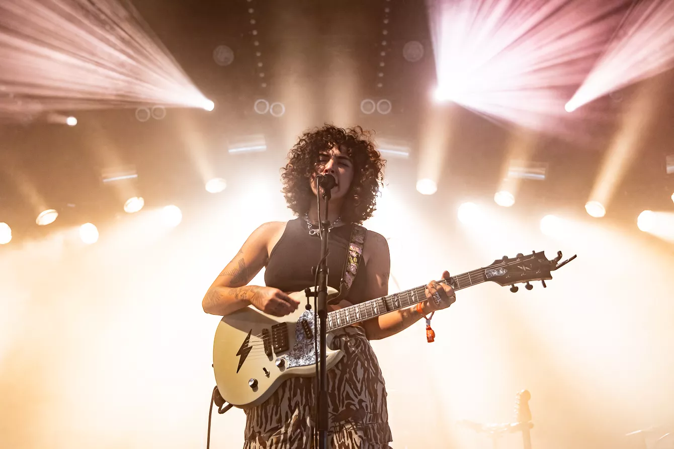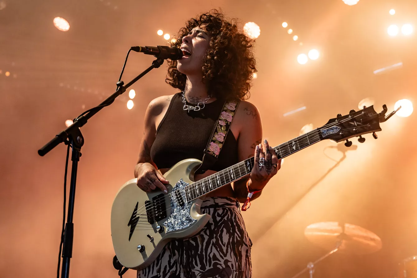 Pladsen foran Roskilde Festivals nye scene Gaia er knap halvt fyldt, da den amerikansk-brasilianske indierock-artist Indigo de Souza skal debutere på dansk jord. Indigo de Souza skabte røre i musik-andedammen, da hun i 2021 udgav albummet Any Shape You Take, som fik positive anmeldelser fra