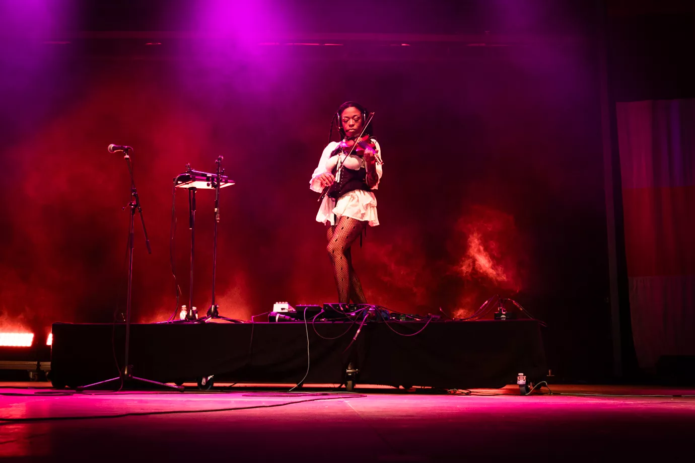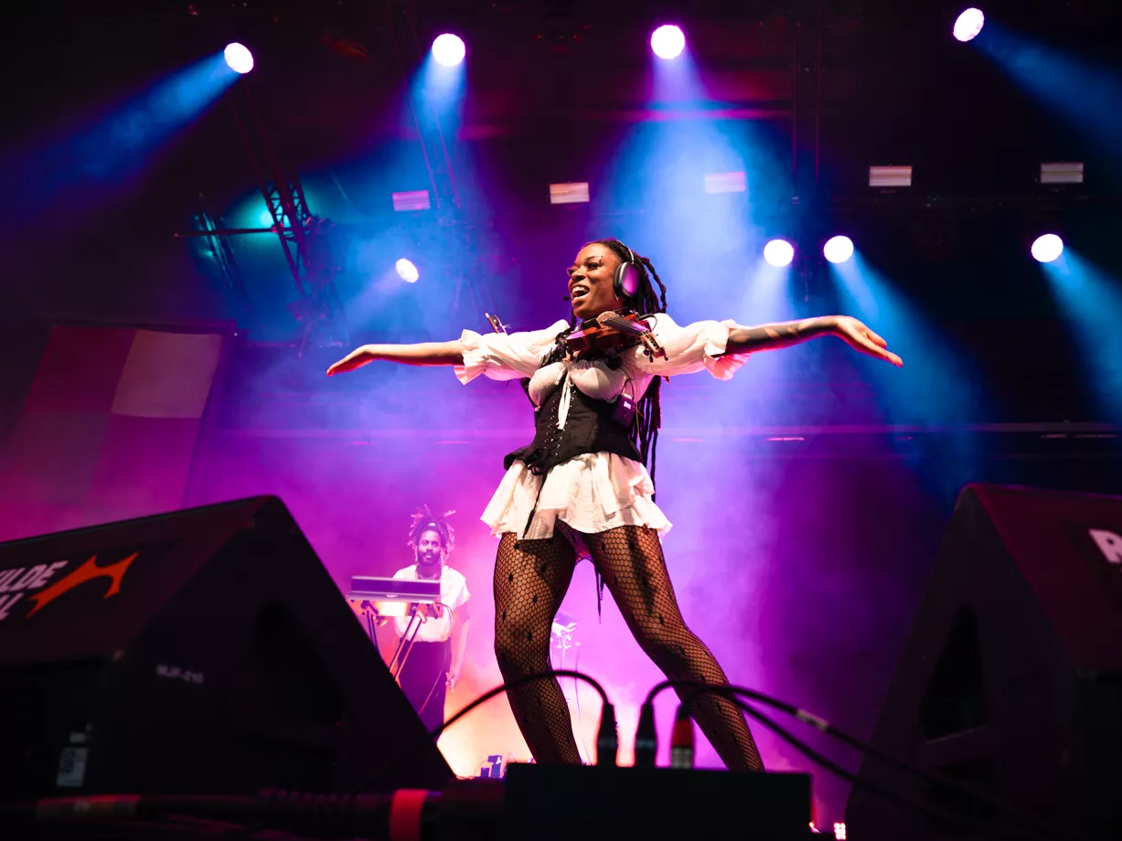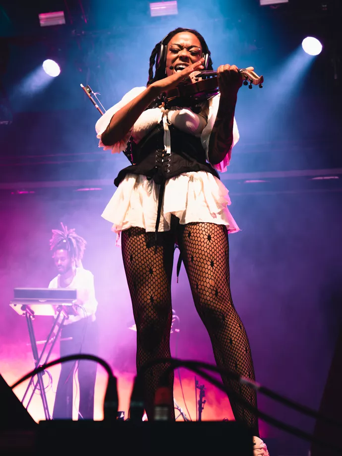Sudan Archives – kunstnernavn for producer, violinist og sanger Brittney Parks – er en sammensat størrelse. Det bliver mere og mere tydeligt i løbet af koncerten, men allerede fra starten af er der tegnet linjer op: Lavmælt håndspillet violin, der næsten bliver overdøvet af Busta Rhymes ovre fra Orange.