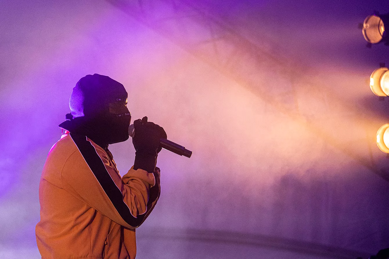 23:23. Subben bygger op til noget spektakulært. “Hva’ så Jelling,” lyder det fra den maskerede hithævner med skiverytter-rygdækning. “NO LOVE” åbner. Den frådende front hopper som én organisme.
