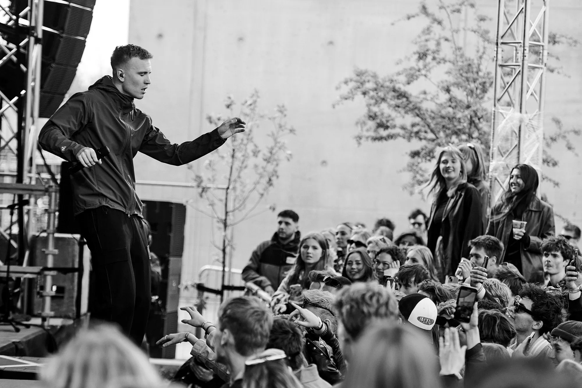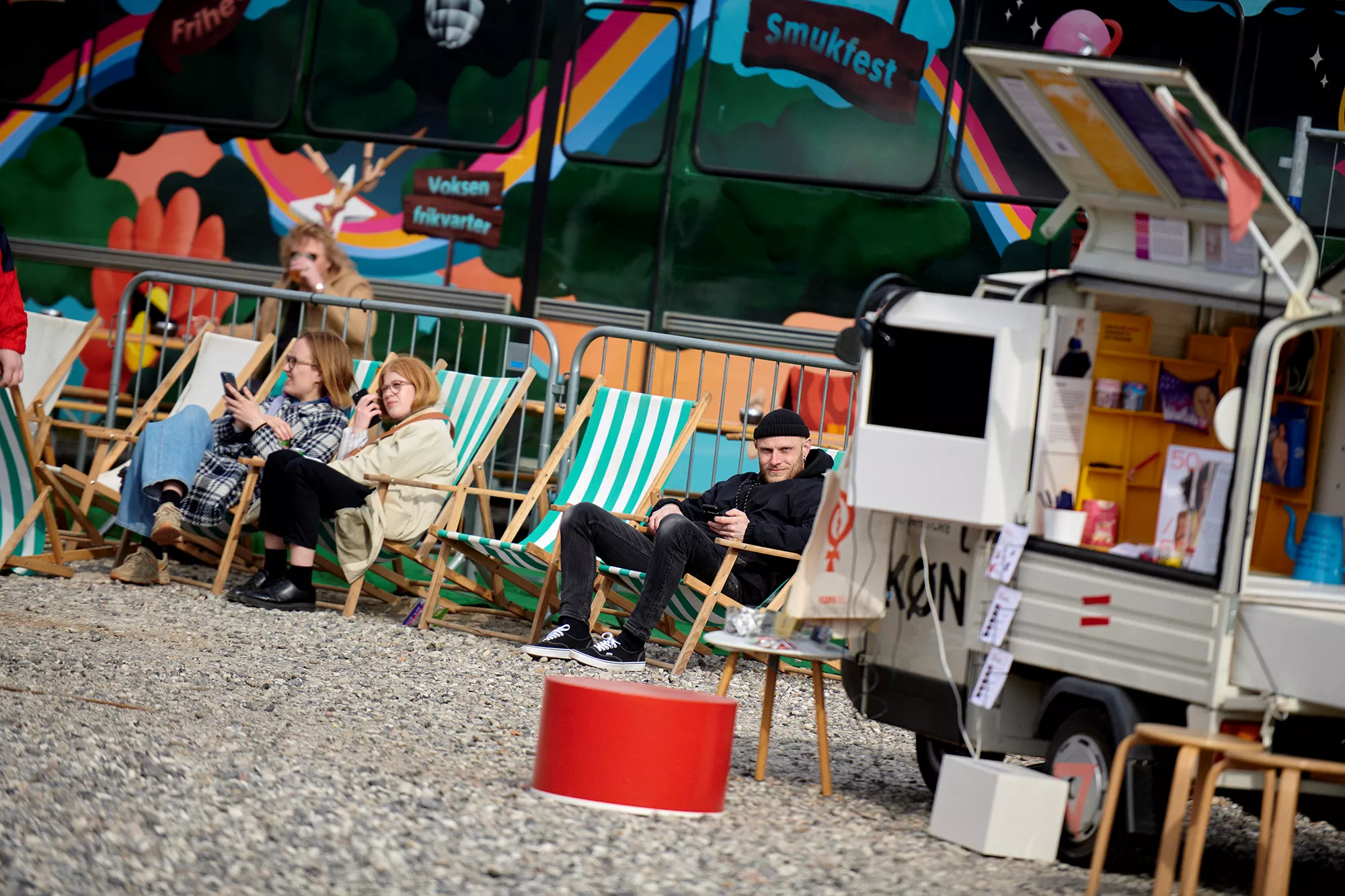16:15. Det er ungt. Det er hipt. Jeg har ikke set mere Carhartt samlet ét sted siden Årets Håndværker Galla Showet 1995. Antallet af sorte læderjakker er off-the-charts. og 90'er techno-solbrillen er overalt. Der er ingen tvivl. UngFront er klar til at gå amok på sing-along bangers.