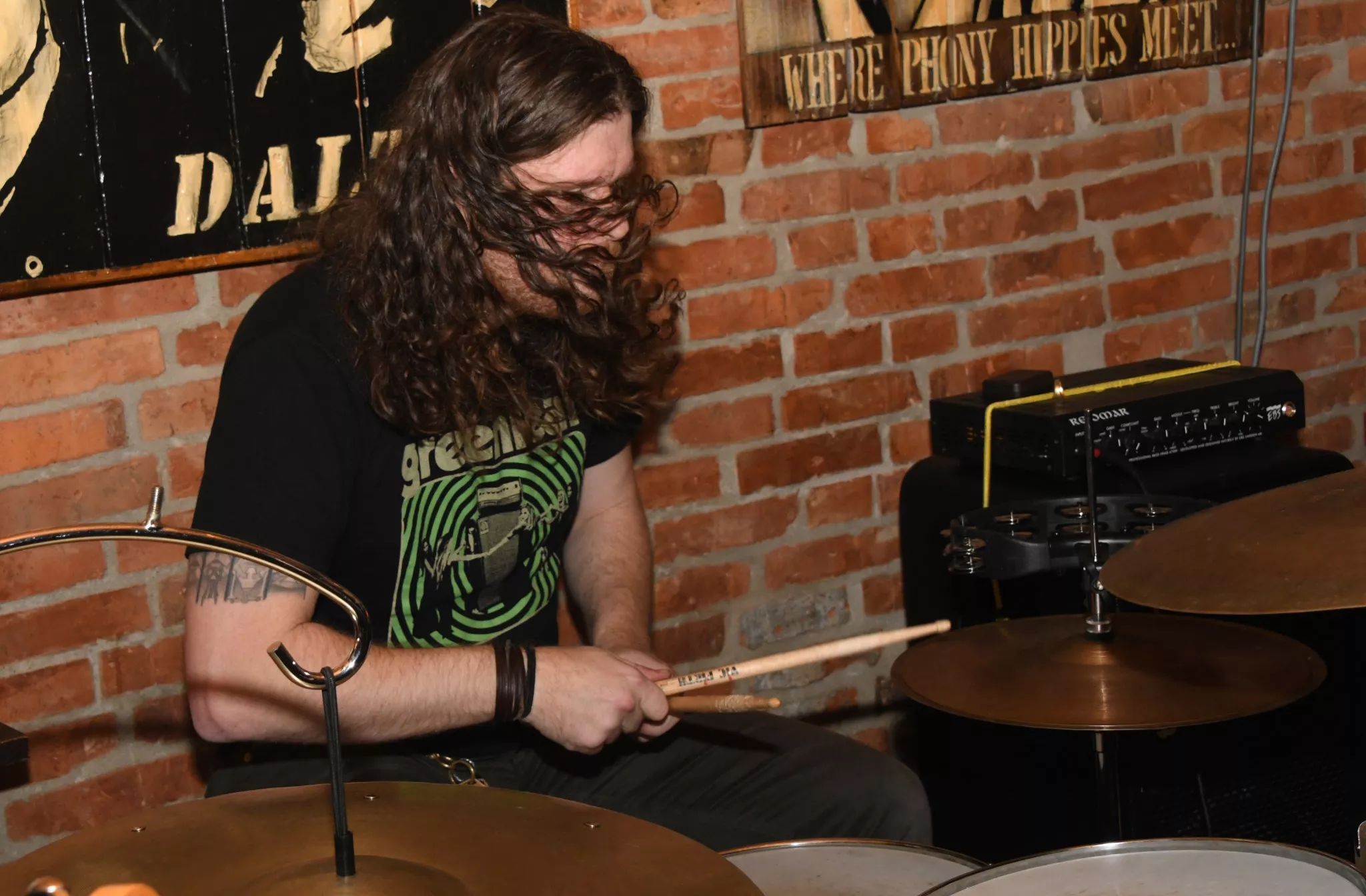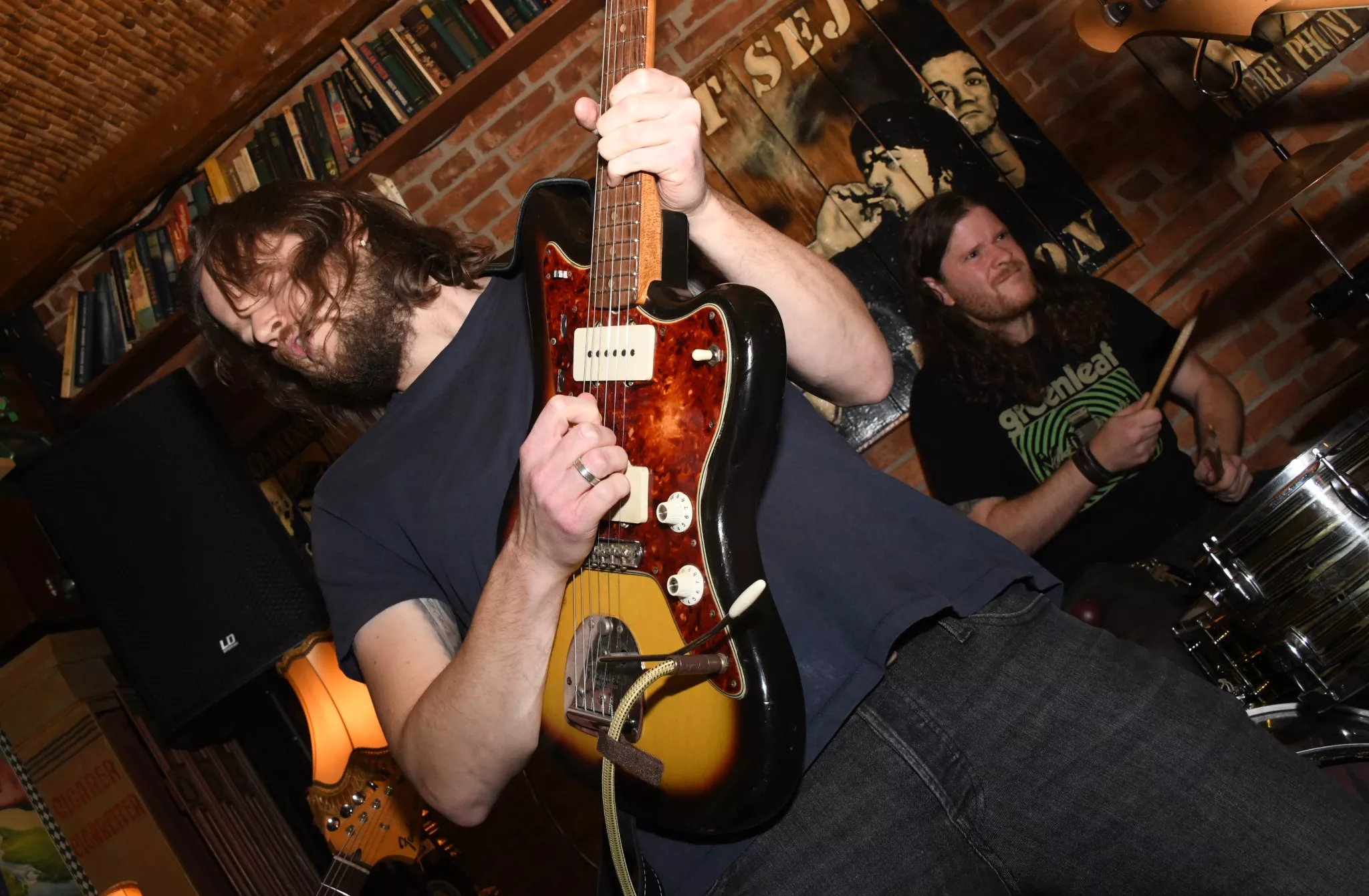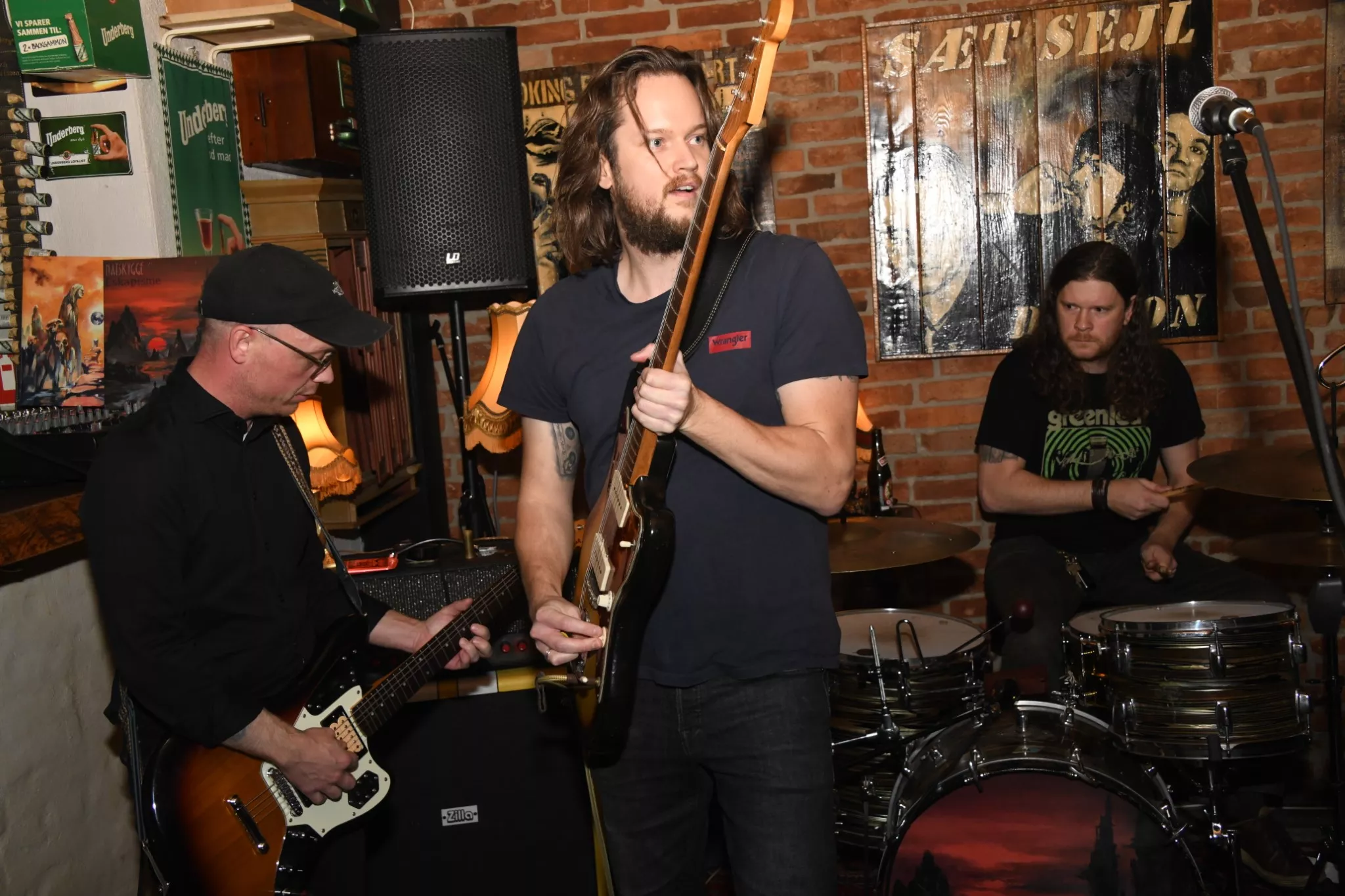 I barens større rum og tæt på baren er der en provisorisk såkaldt scene i gulvhøjde, hvor lokalbandet Natskygge har deres instrumenter og gear stillet op. Torsdage er tit kritiske, når det kommer til koncerter i Esbjerg. Alt for tit har undertegnede set publikum svigte bands og Tobakken-arrangørerne