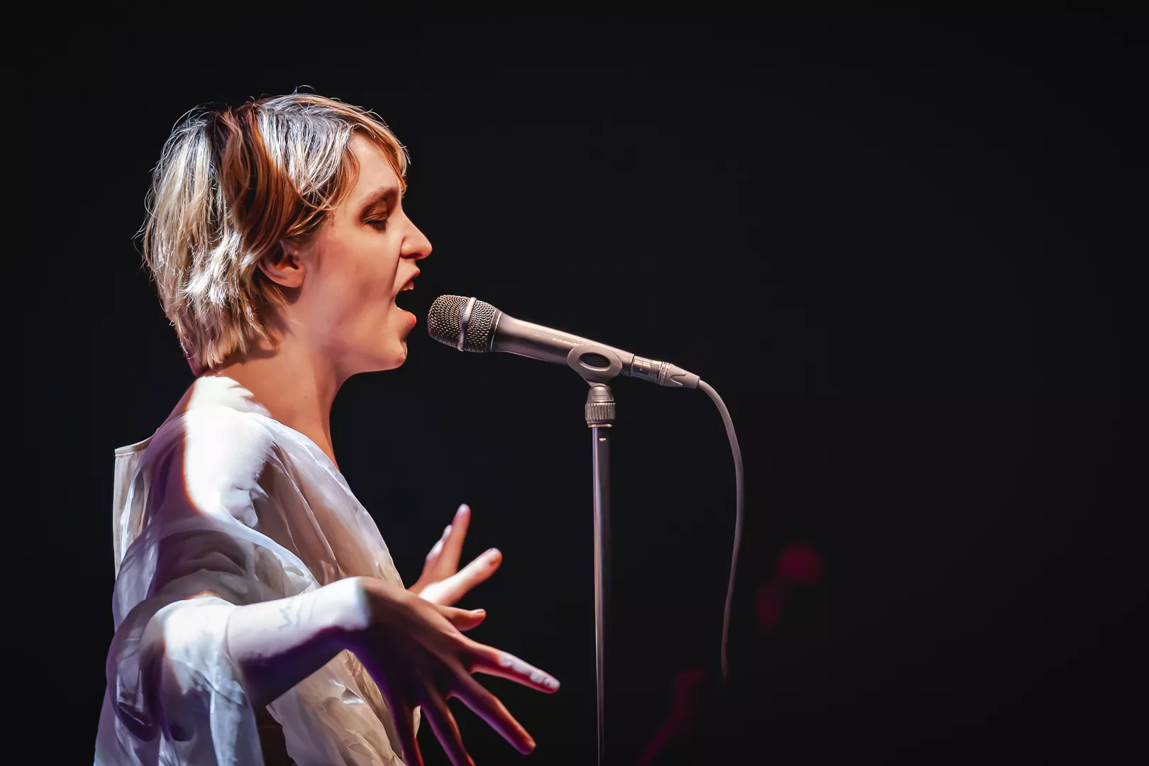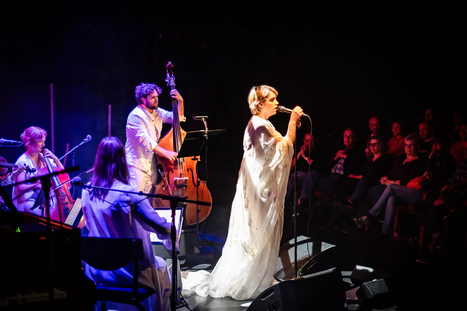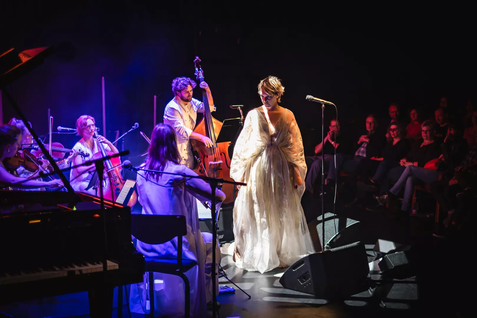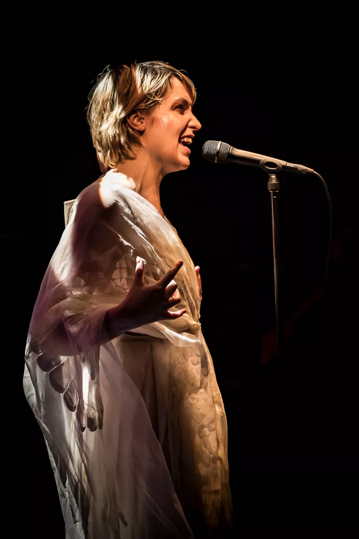 Lydmor alias Jenny Rossander er en kunstner, der ofte kommer tæt på publikum til sine koncerter, helt bogstaveligt. Denne aften er ingen undtagelse, hvor hun i næstsidste sang pludselig begynder at gå ned gennem en stolerække i Musikhuset Aarhus’ fyldte Lille Sal, hvilket er en smule besværligt, når