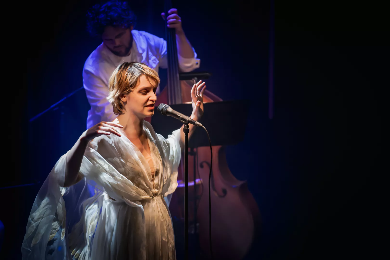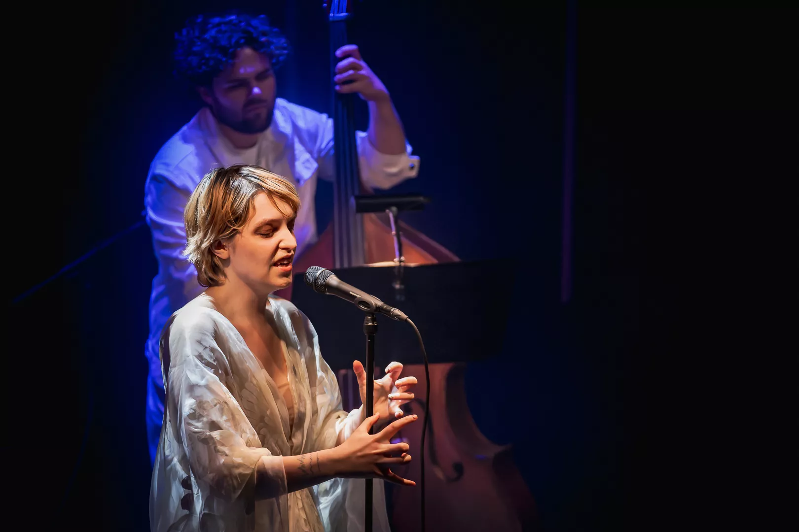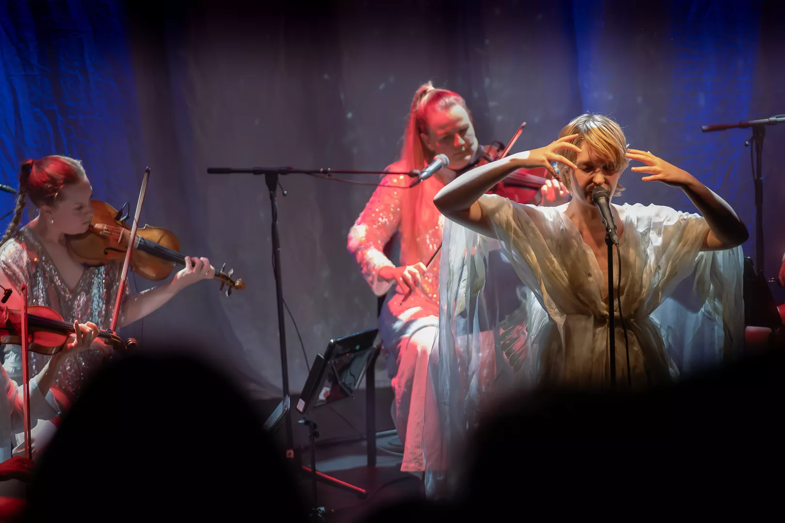 Lydmor alias Jenny Rossander er en kunstner, der ofte kommer tæt på publikum til sine koncerter, helt bogstaveligt. Denne aften er ingen undtagelse, hvor hun i næstsidste sang pludselig begynder at gå ned gennem en stolerække i Musikhuset Aarhus’ fyldte Lille Sal, hvilket er en smule besværligt, når