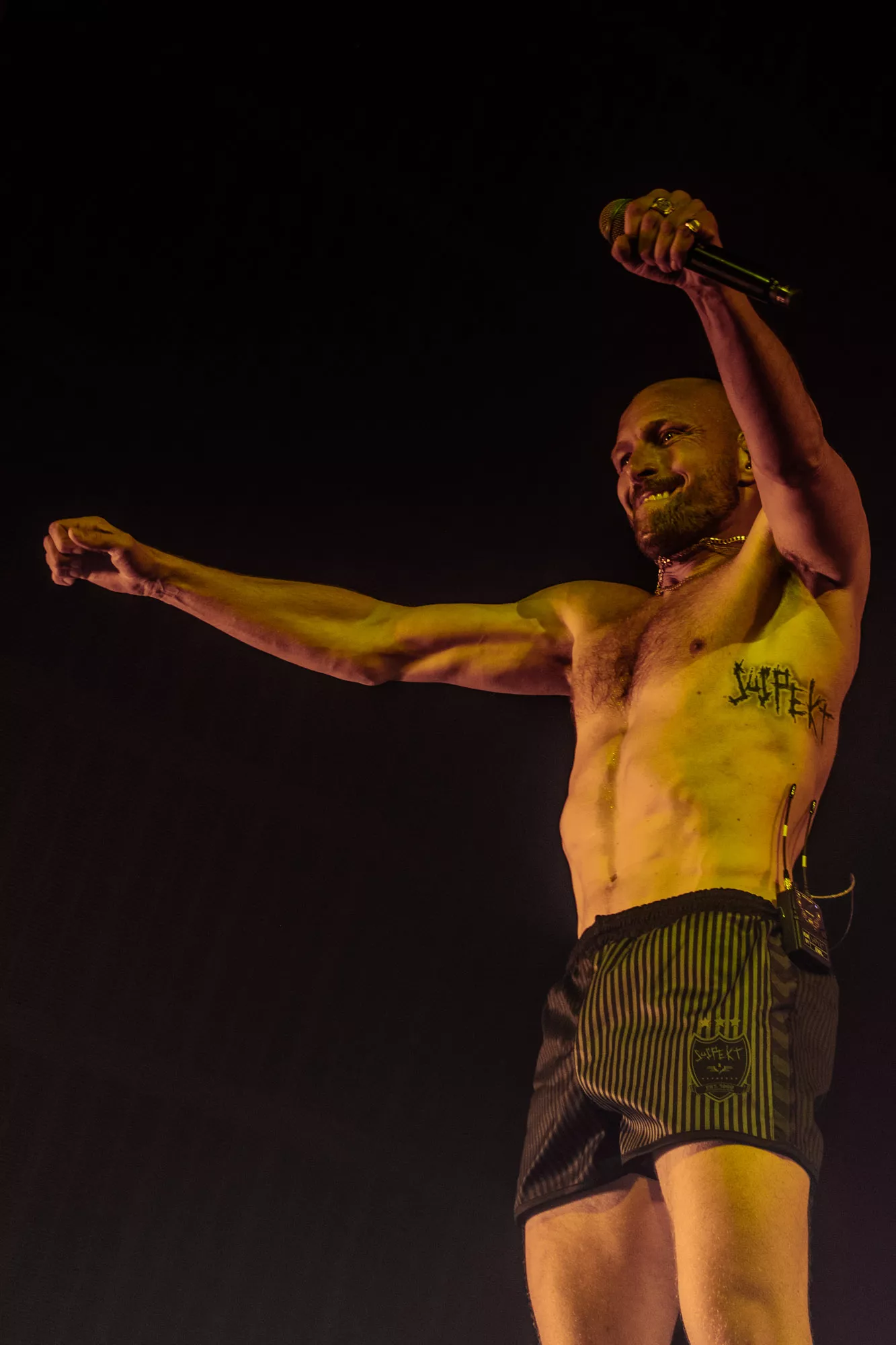 Parken var så stor, at den var ved at eksplodere. Eksplosionen var kulminationen på en rejse, der på et kvart århundrede har bragt Suspekt fra bunden af undergrunden til hvermandseje i alle afkroge af kongeriget. I aften blæste Danmarks mest kinky nationalskjalde 46.283 publikummer omkuld. Det bliver