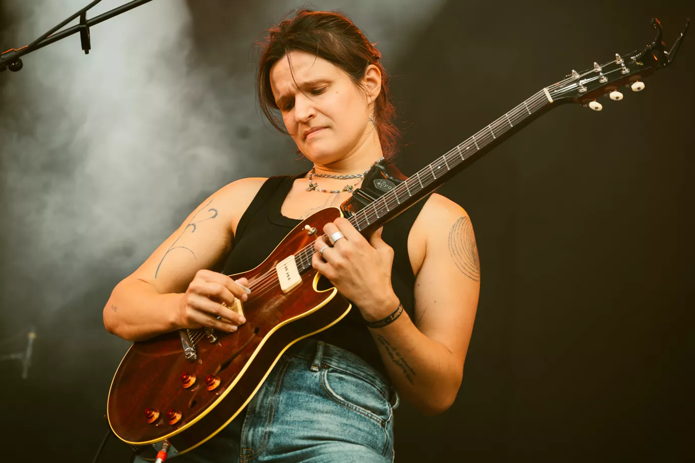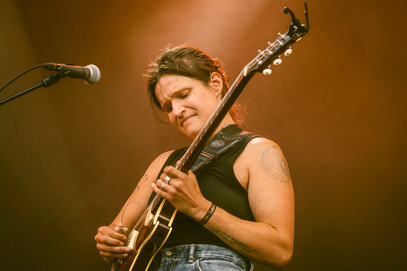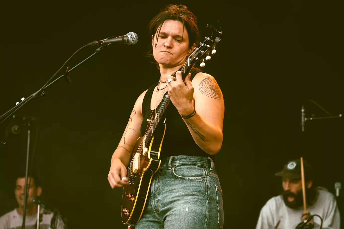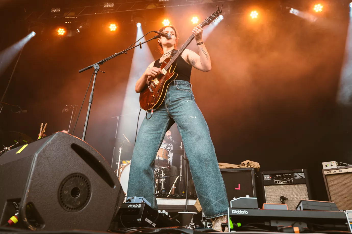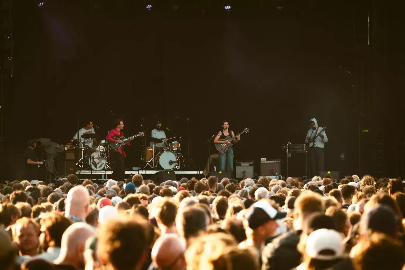 Da Big Thief går på scenen klokken 18:30 i bagende sol, virker de overraskede over det store fremmøde og stemningen foran dem. Havde de kendt til opbakningen på forhånd, havde koncerten givetvis forløbet anderledes.