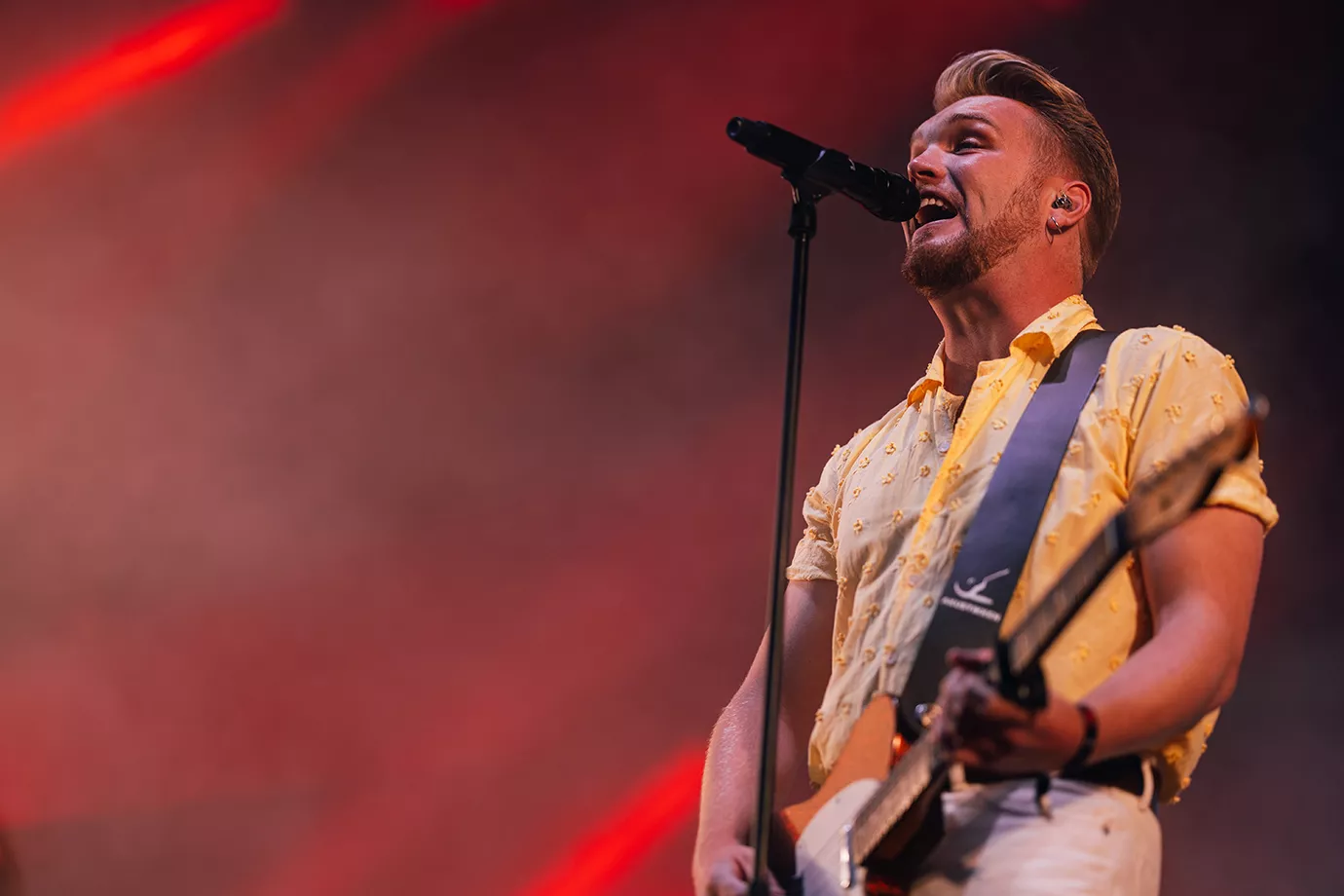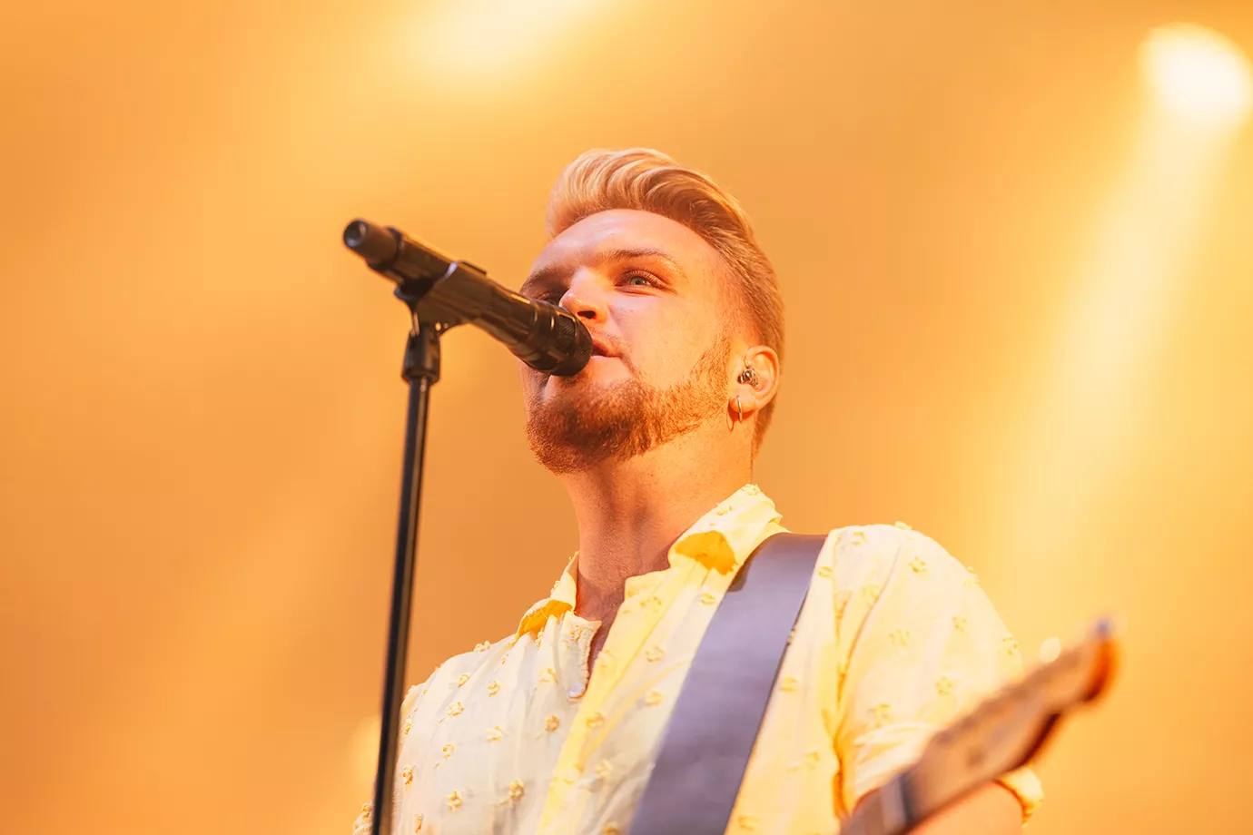 Det kører med andre ord ganske godt for Jacob Dinesen, og så er han tilmed lige blevet gift, fortæller konferencieren. Senere i showet oplyser Dinesen, at koncerten er faktisk hans første som en gift mand. Man forstår derfor godt, at han strutter af selvtillid og med håret sat ekstra godt til lejligheden (igen konferencierens ord), da sceneforhænget med hans navn skrevet med store bogstaver falder, og han træder ind på scenen til tonerne af sangen ”Broken” fra dette års album One Step at a Time. Dinesen har medbragt et stort band med guitar, bas, trommer, keyboard og to korsangere, alle stående på hver deres podium, og med fem store lystårne på bagscenen. Tempoet er højt, lyden er virkelig god, musikerne spiller fremragende, koret synger smukt, melodien går rent ind, publikum jubler, og Dinesen fremstår alt andet end ”Broken”, selvom han synger om at være netop det, men det må man jo godt.