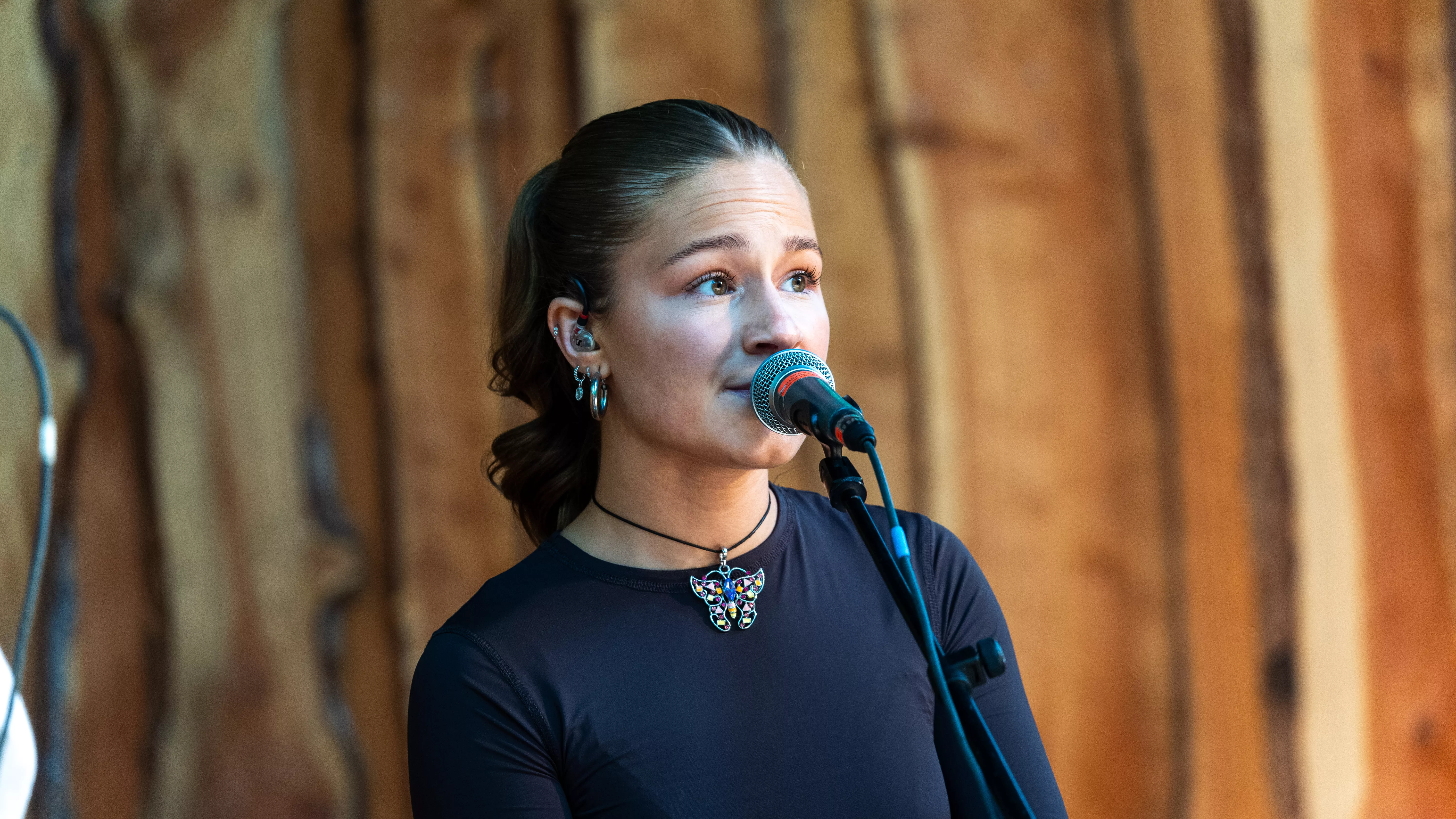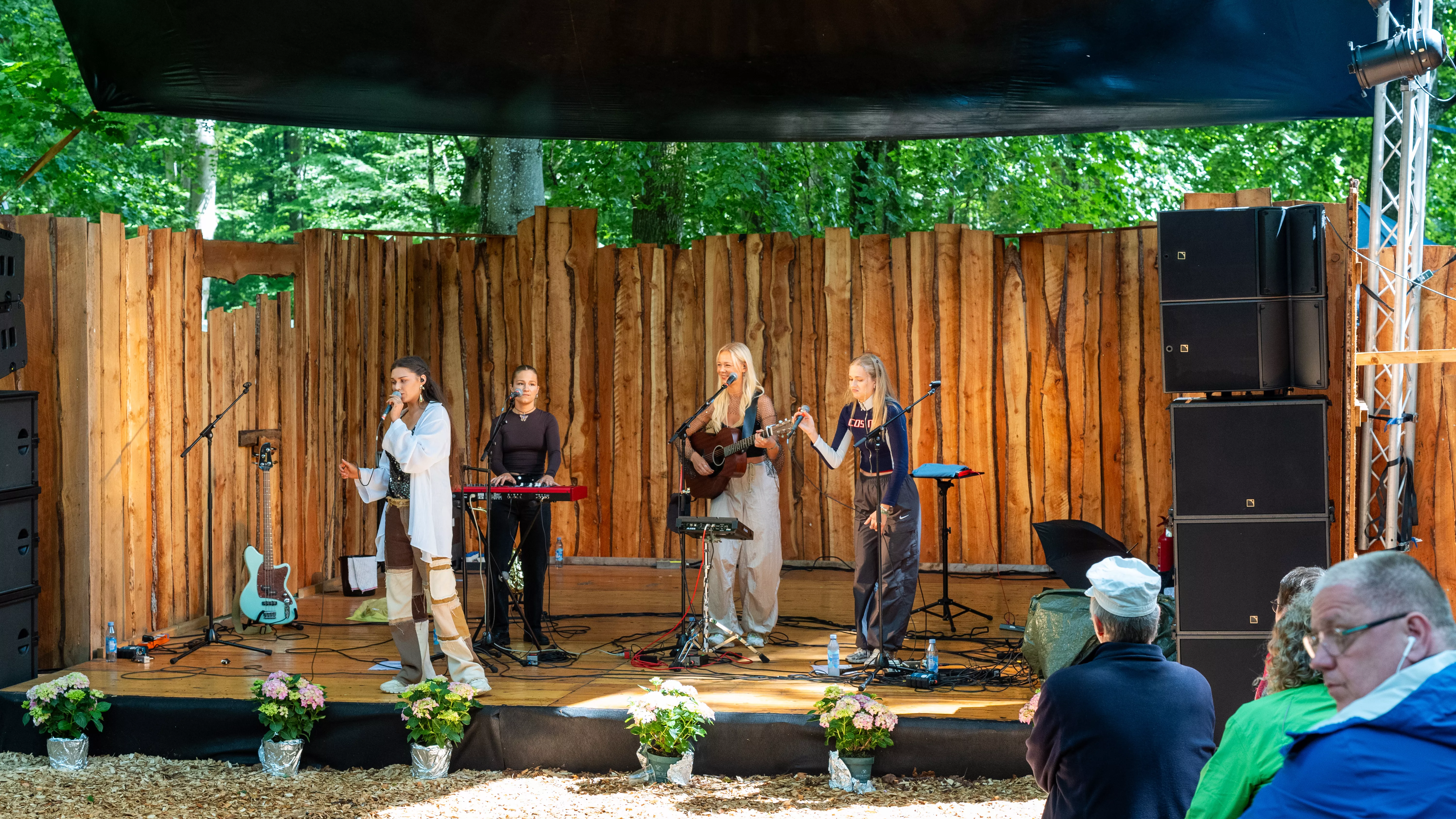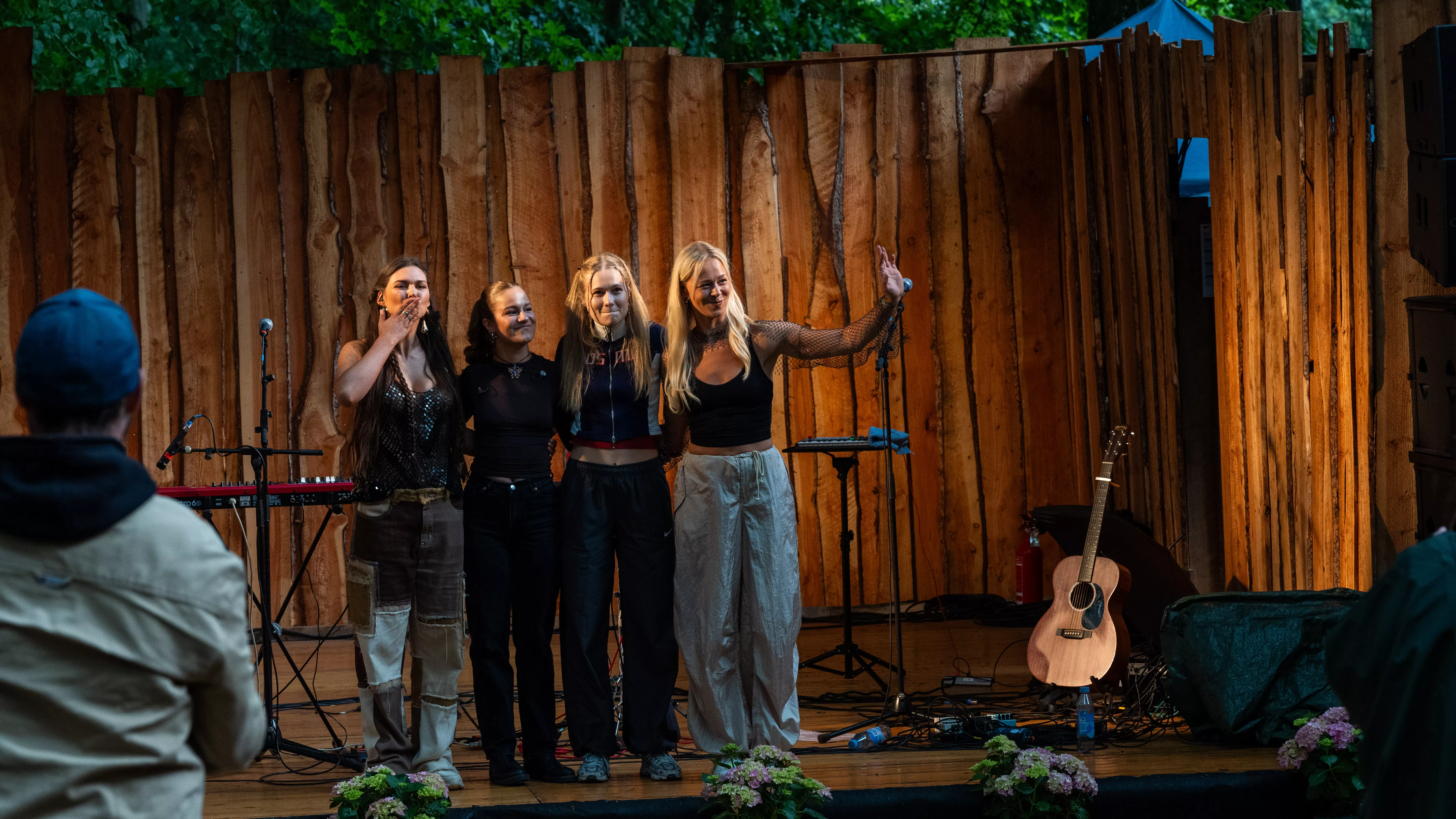 Lige så snart man sætter sig foran Den Lille Fede-scenen på Nibe Festival, er det som om, at man er med til Icekiid-koncerten ovre på den anden side af festivalen. Man når lige at blive bange for, at de fire kvinder fra Kryd får svært ved at overdøve larmen.