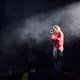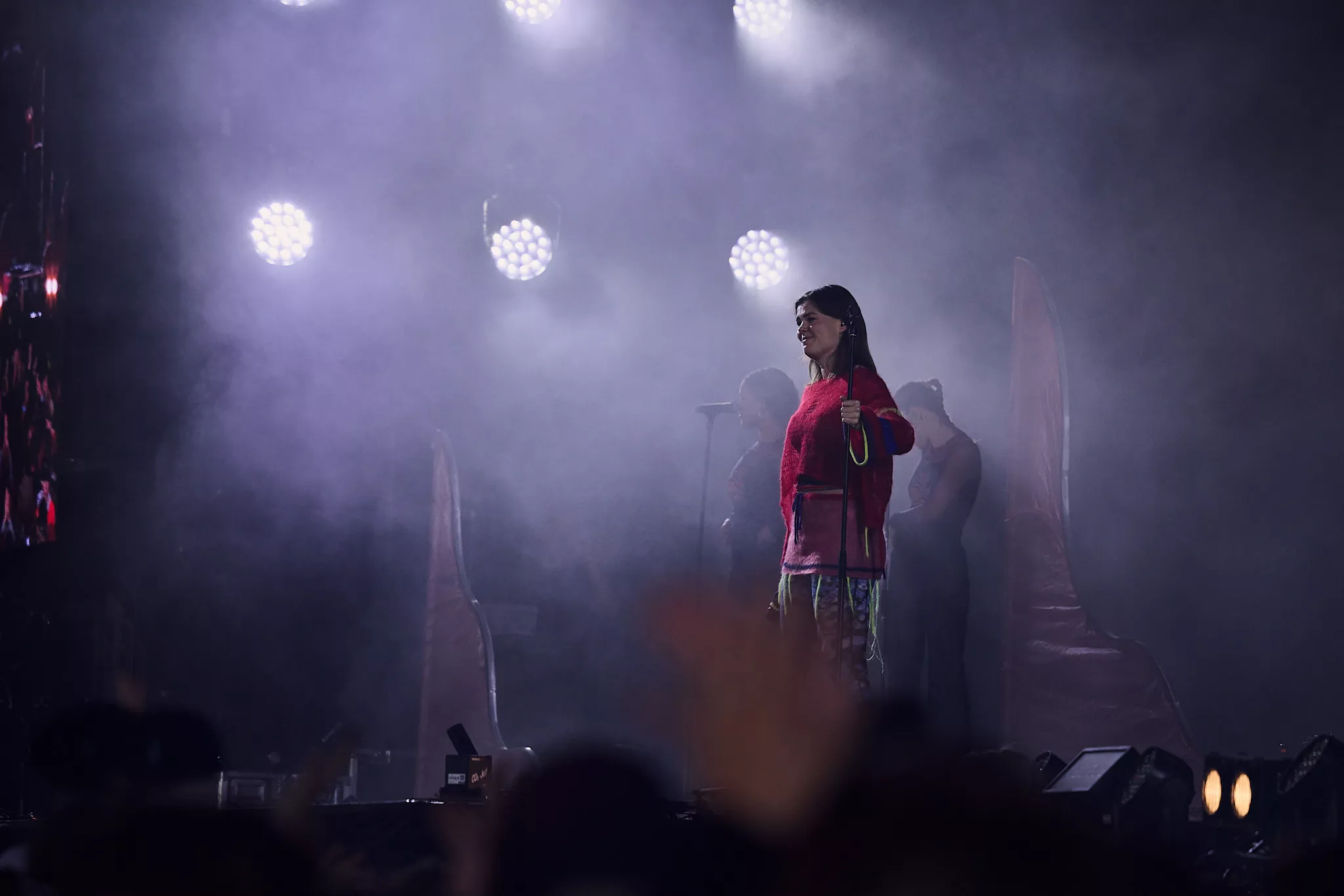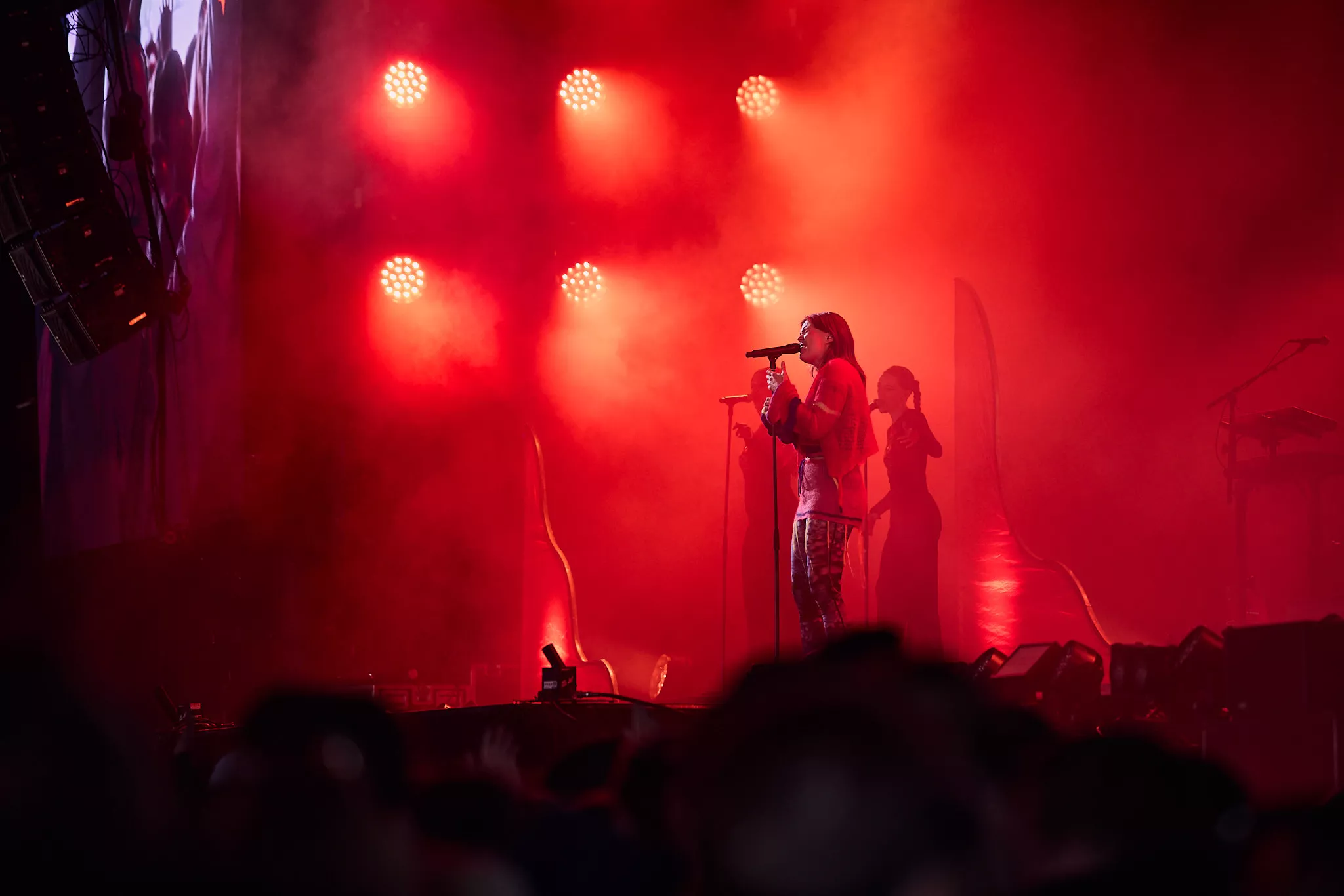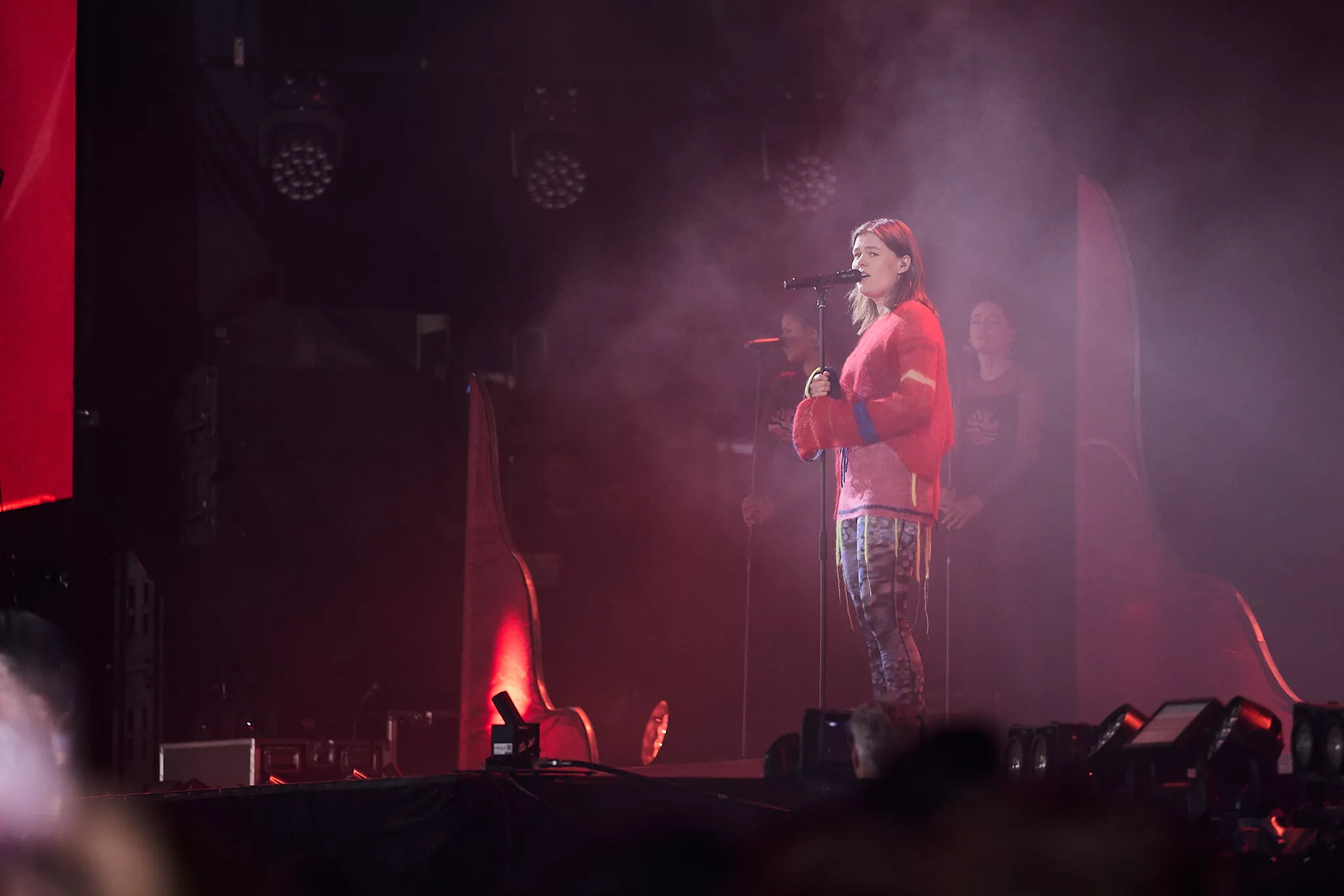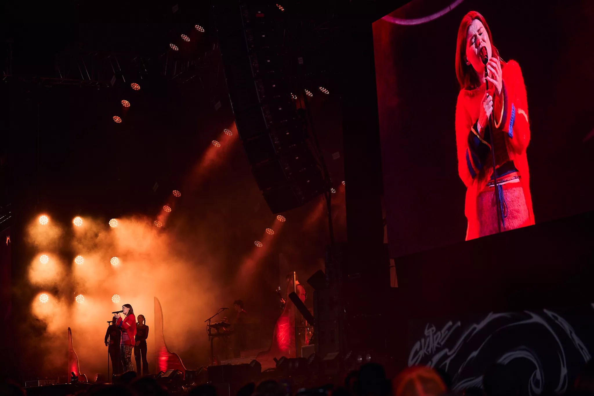 Der er helt proppet inde i såvel som foran Arena-teltet 20 minutter inden koncerten. Jeg spotter nogle større organiske konstruktioner på scenen, mens bagskærmen er prydet af dét, jeg først tror er en sæbeboble. Og det er jo dumt. For ”Dronningen af Månen”-sangeren har selvfølgelig