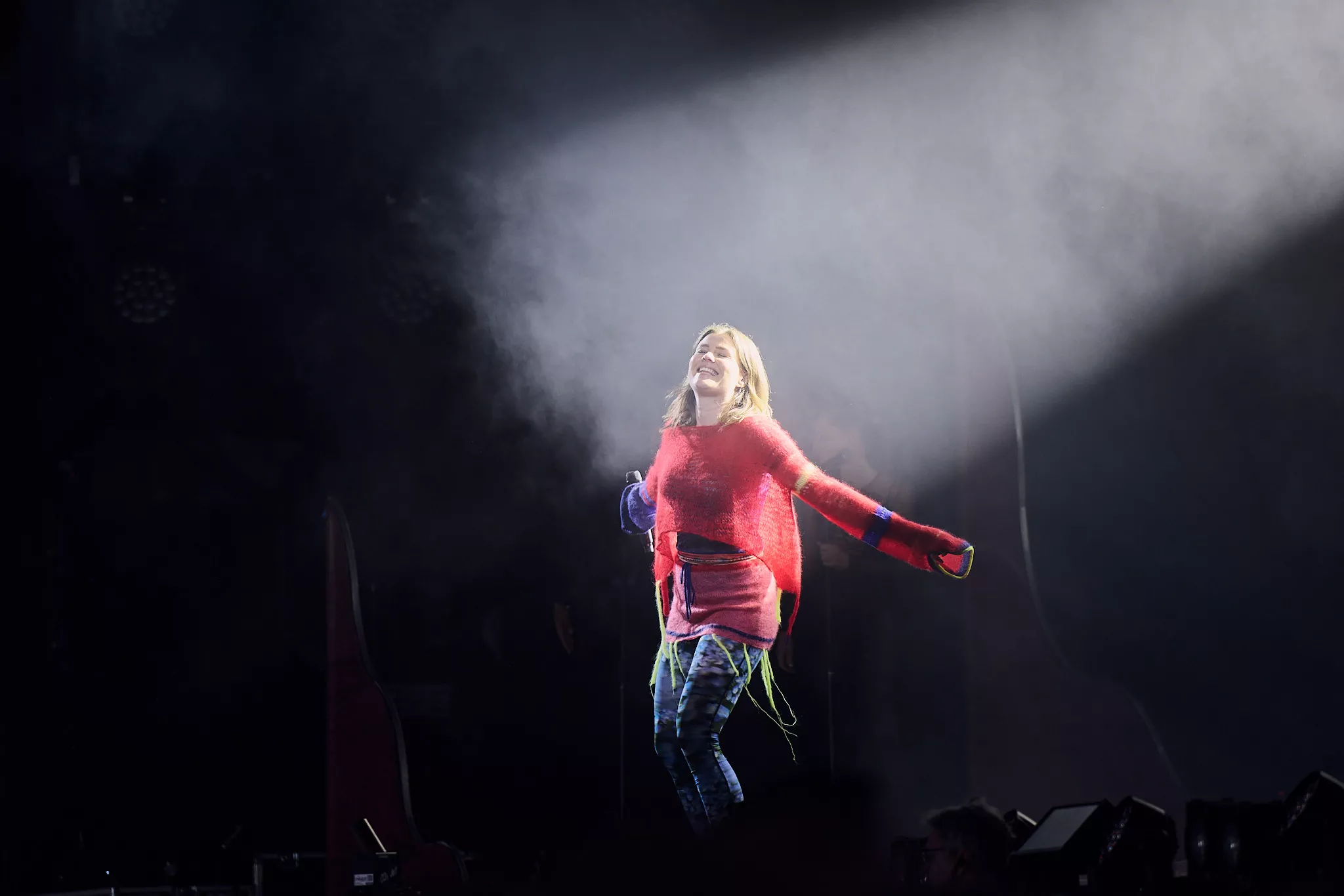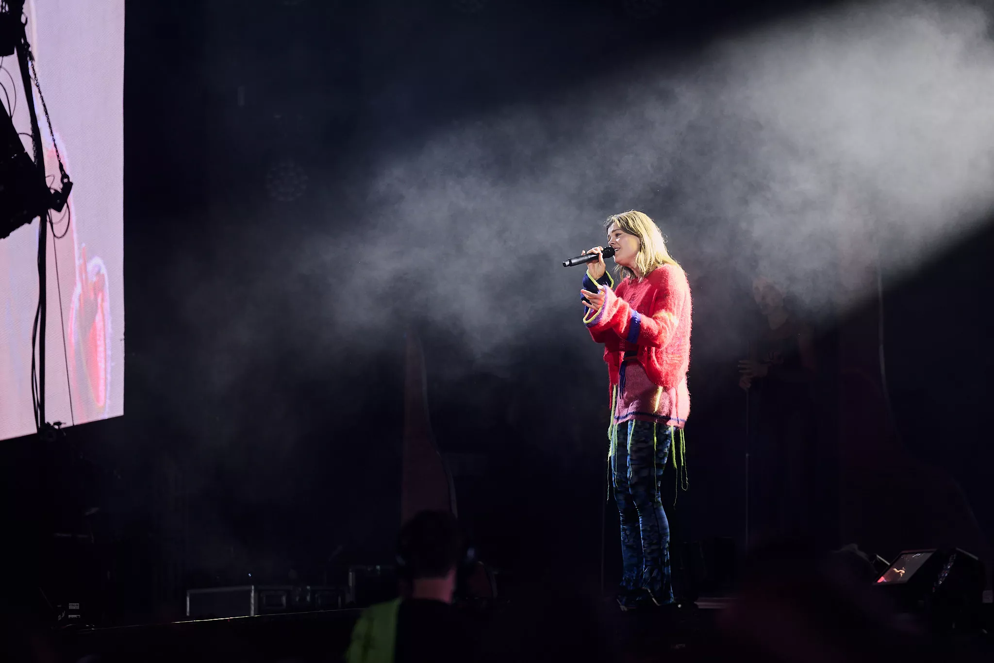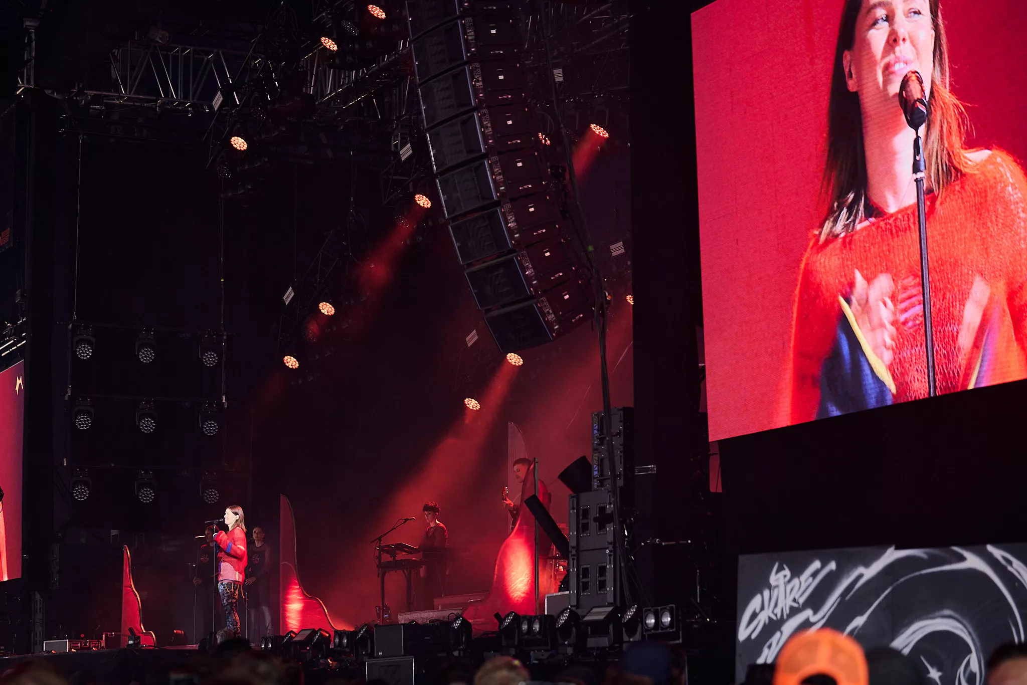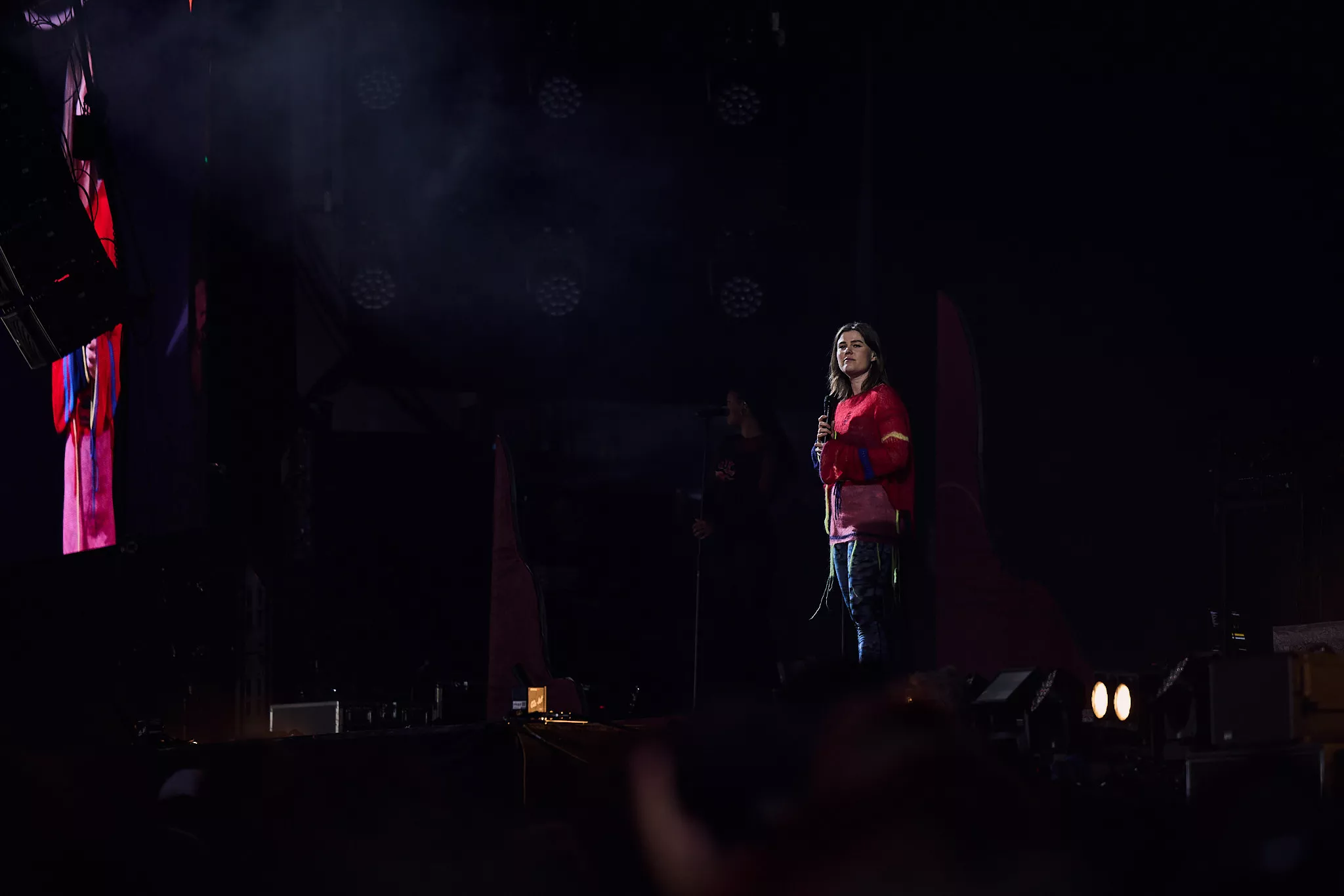 Der er helt proppet inde i såvel som foran Arena-teltet 20 minutter inden koncerten. Jeg spotter nogle større organiske konstruktioner på scenen, mens bagskærmen er prydet af dét, jeg først tror er en sæbeboble. Og det er jo dumt. For ”Dronningen af Månen”-sangeren har selvfølgelig