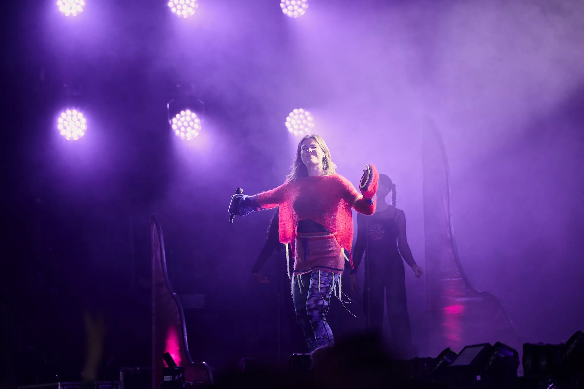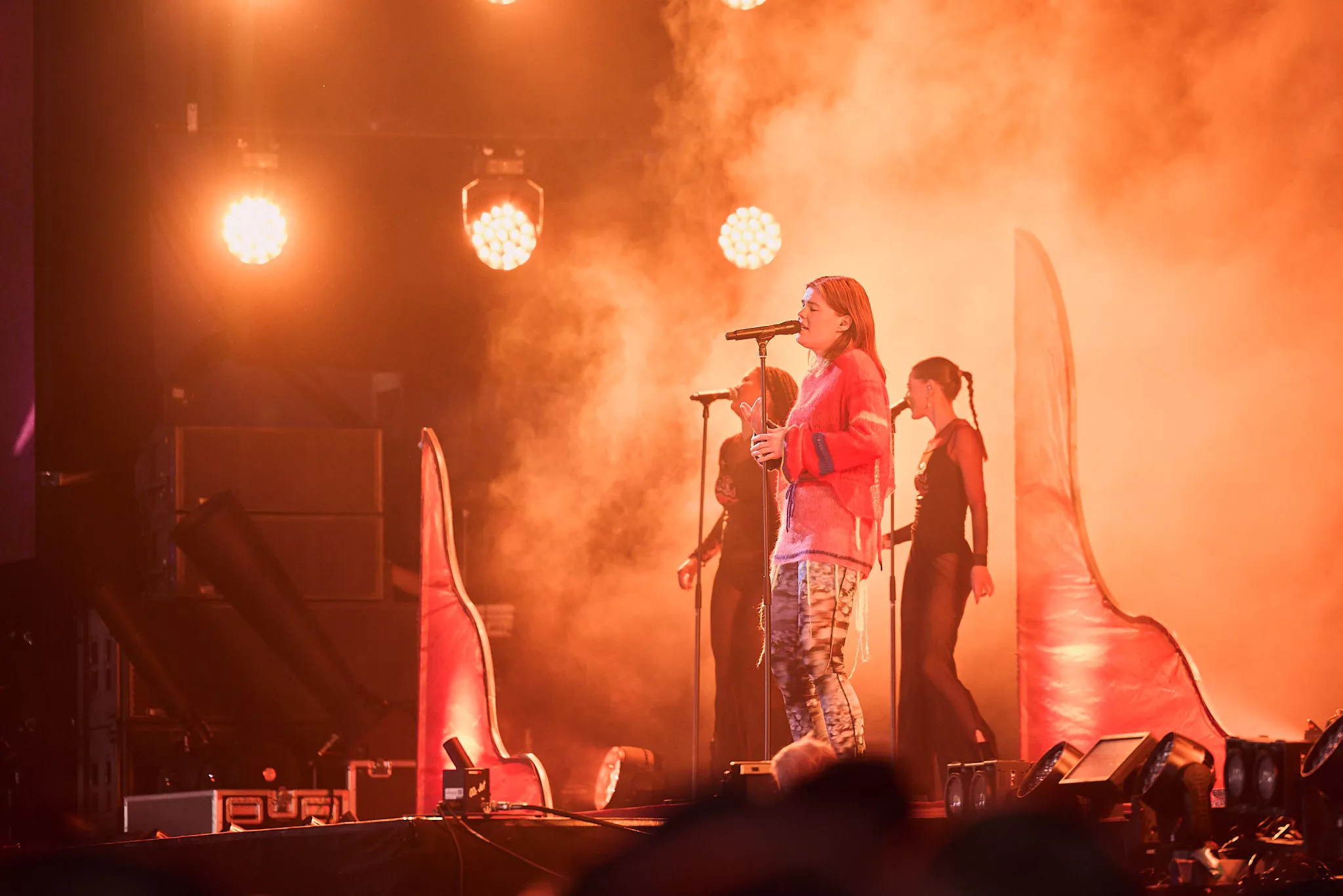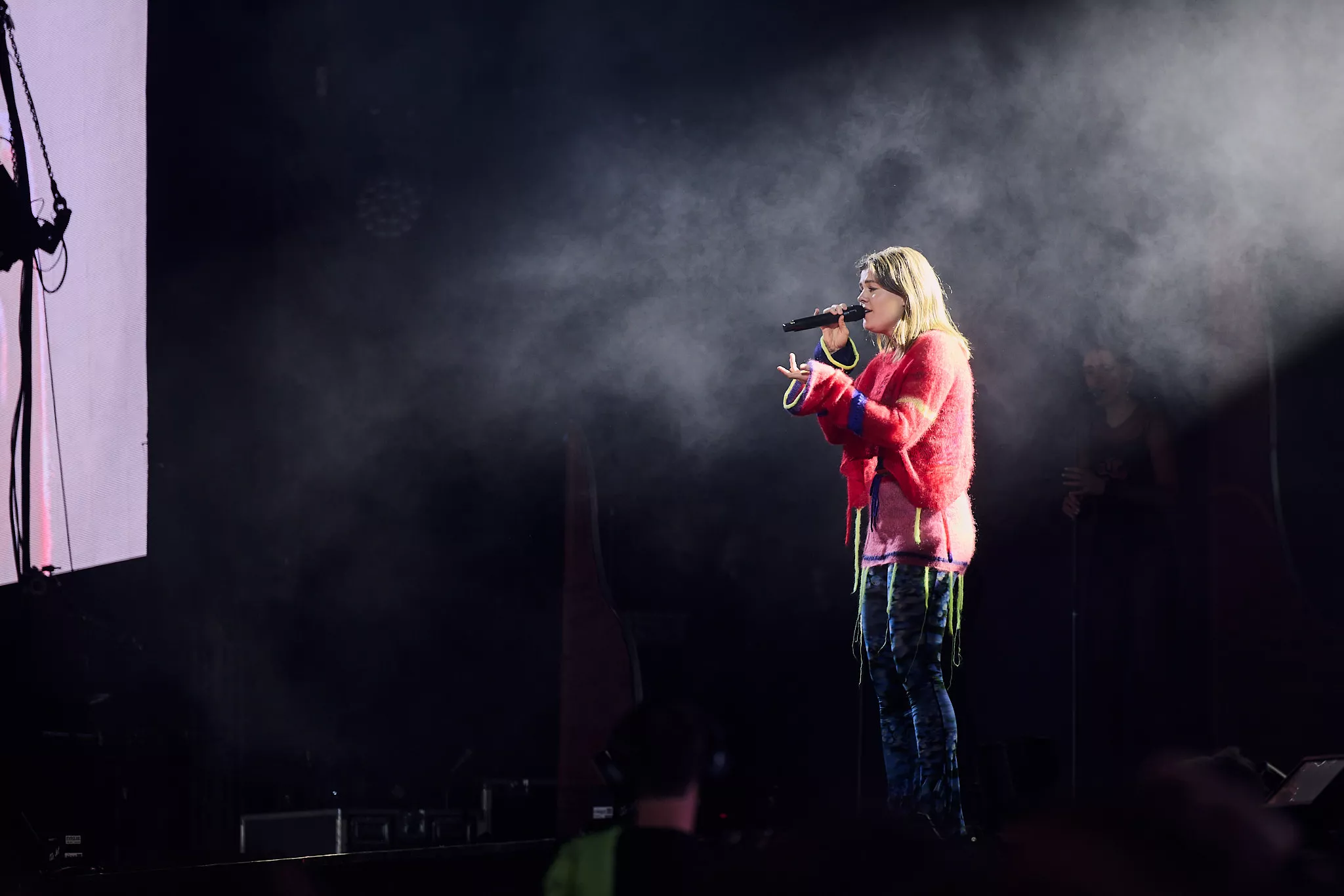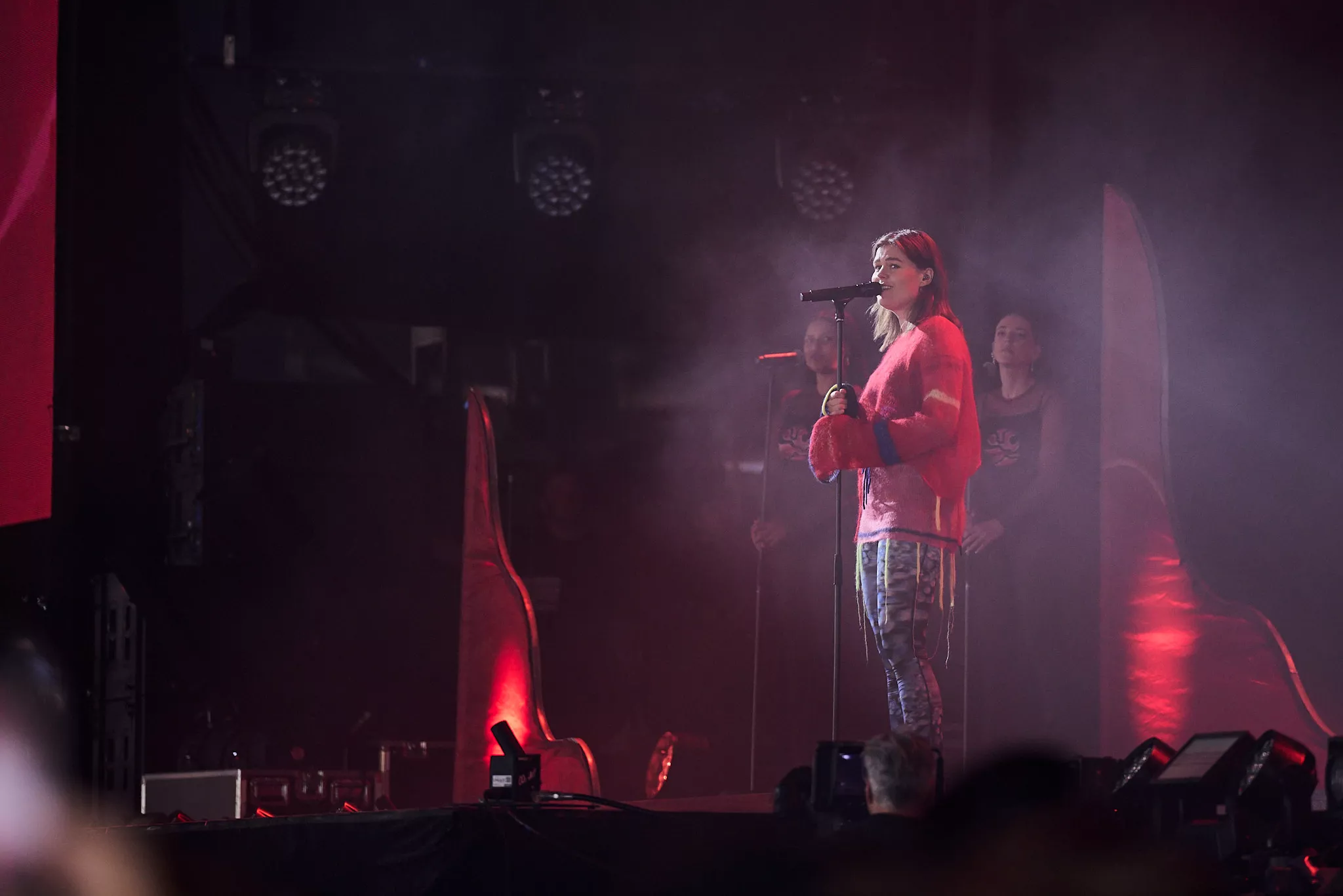 Der er helt proppet inde i såvel som foran Arena-teltet 20 minutter inden koncerten. Jeg spotter nogle større organiske konstruktioner på scenen, mens bagskærmen er prydet af dét, jeg først tror er en sæbeboble. Og det er jo dumt. For ”Dronningen af Månen”-sangeren har selvfølgelig