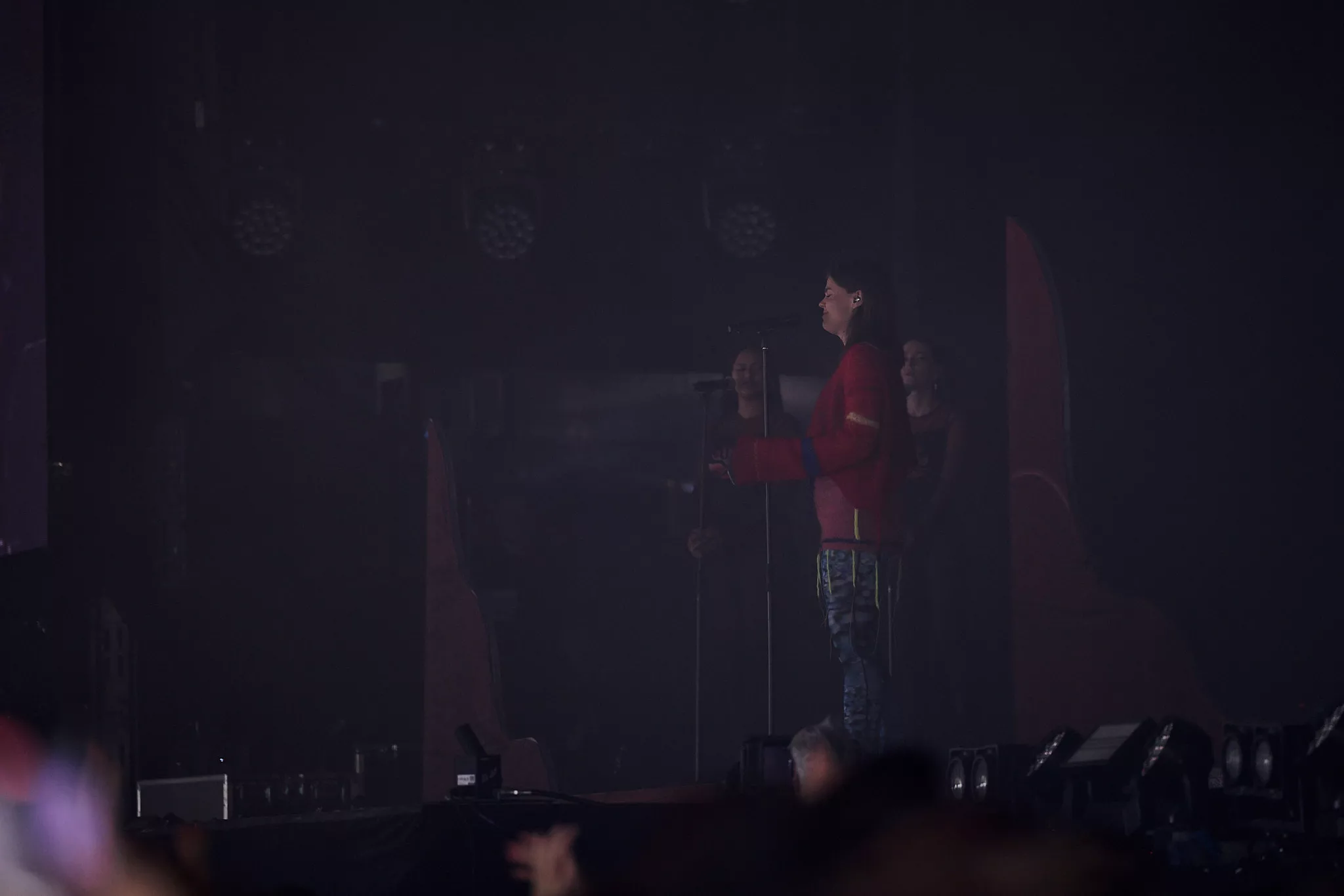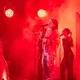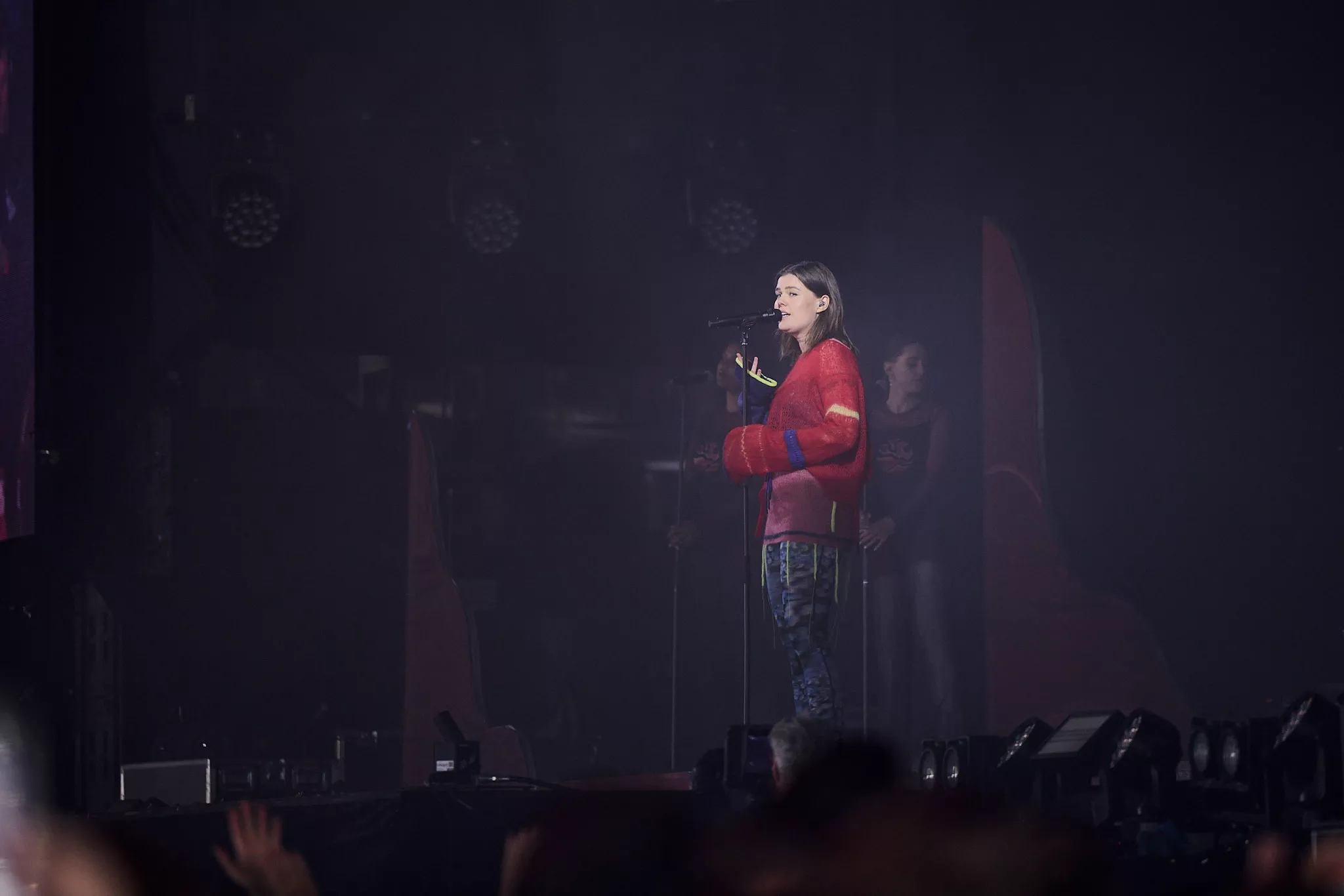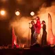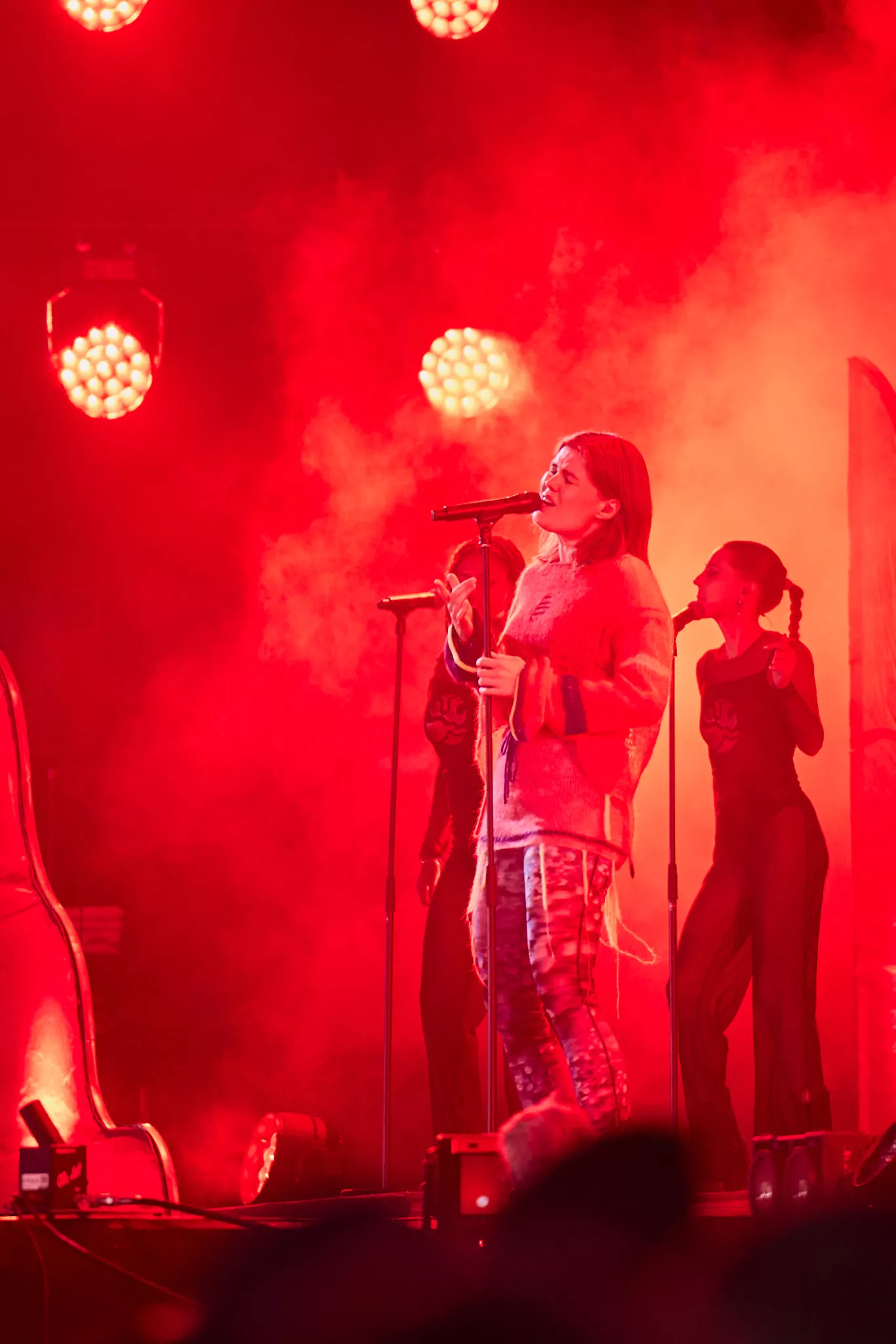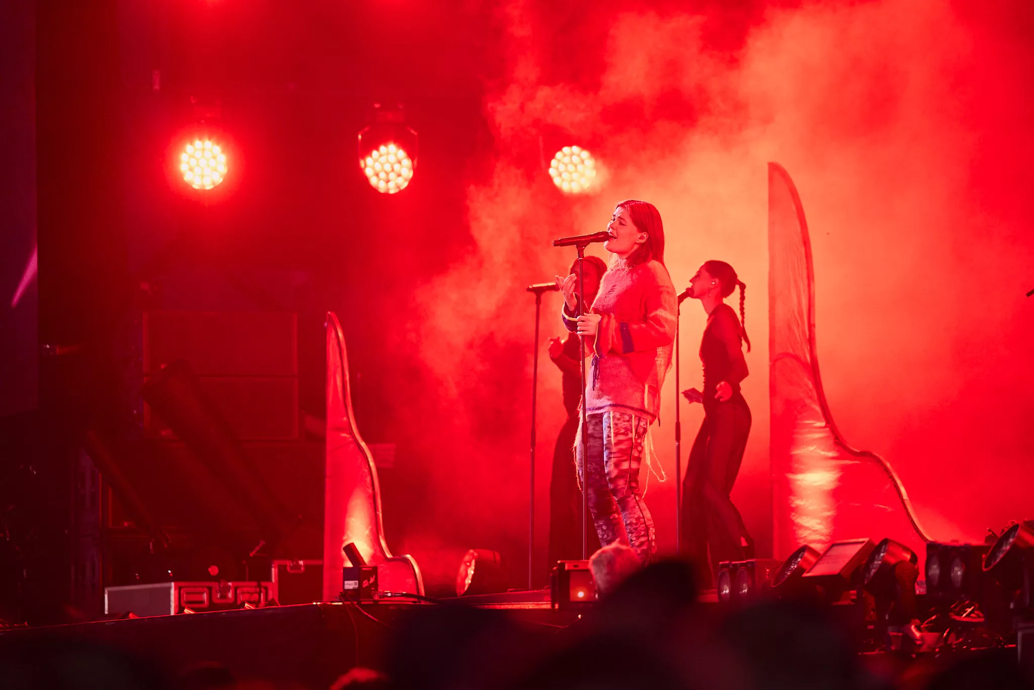 Der er helt proppet inde i såvel som foran Arena-teltet 20 minutter inden koncerten. Jeg spotter nogle større organiske konstruktioner på scenen, mens bagskærmen er prydet af dét, jeg først tror er en sæbeboble. Og det er jo dumt. For ”Dronningen af Månen”-sangeren har selvfølgelig
