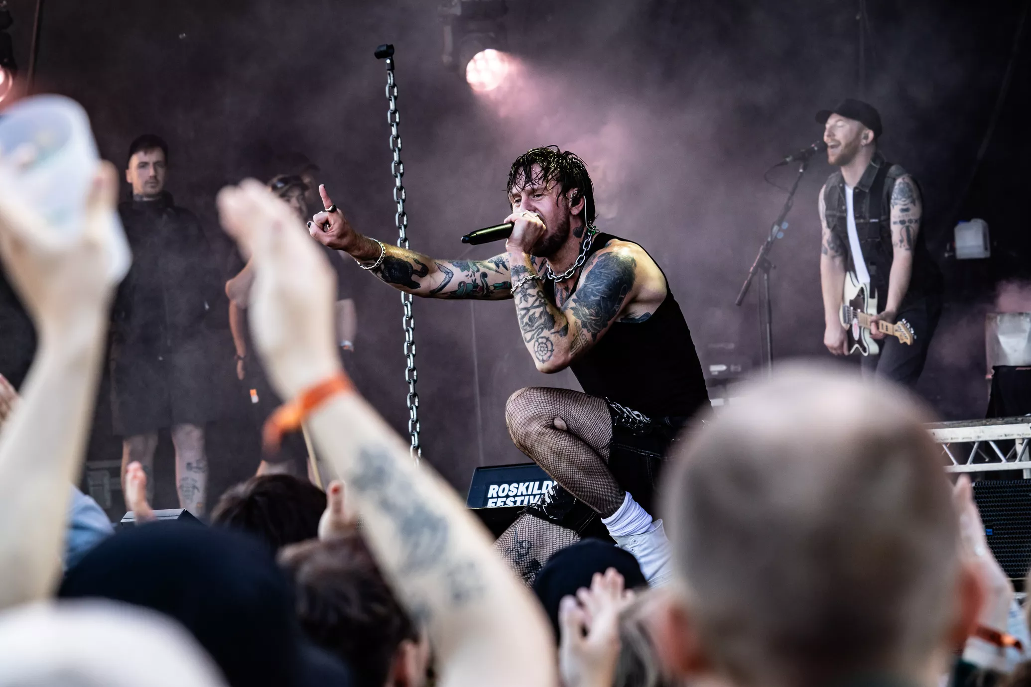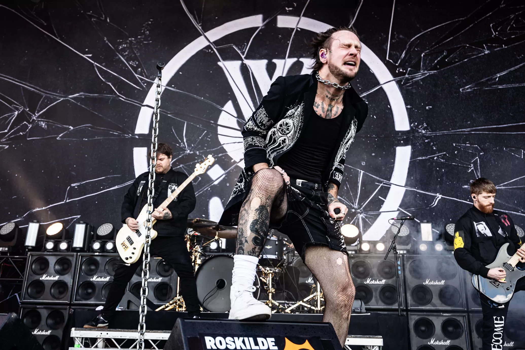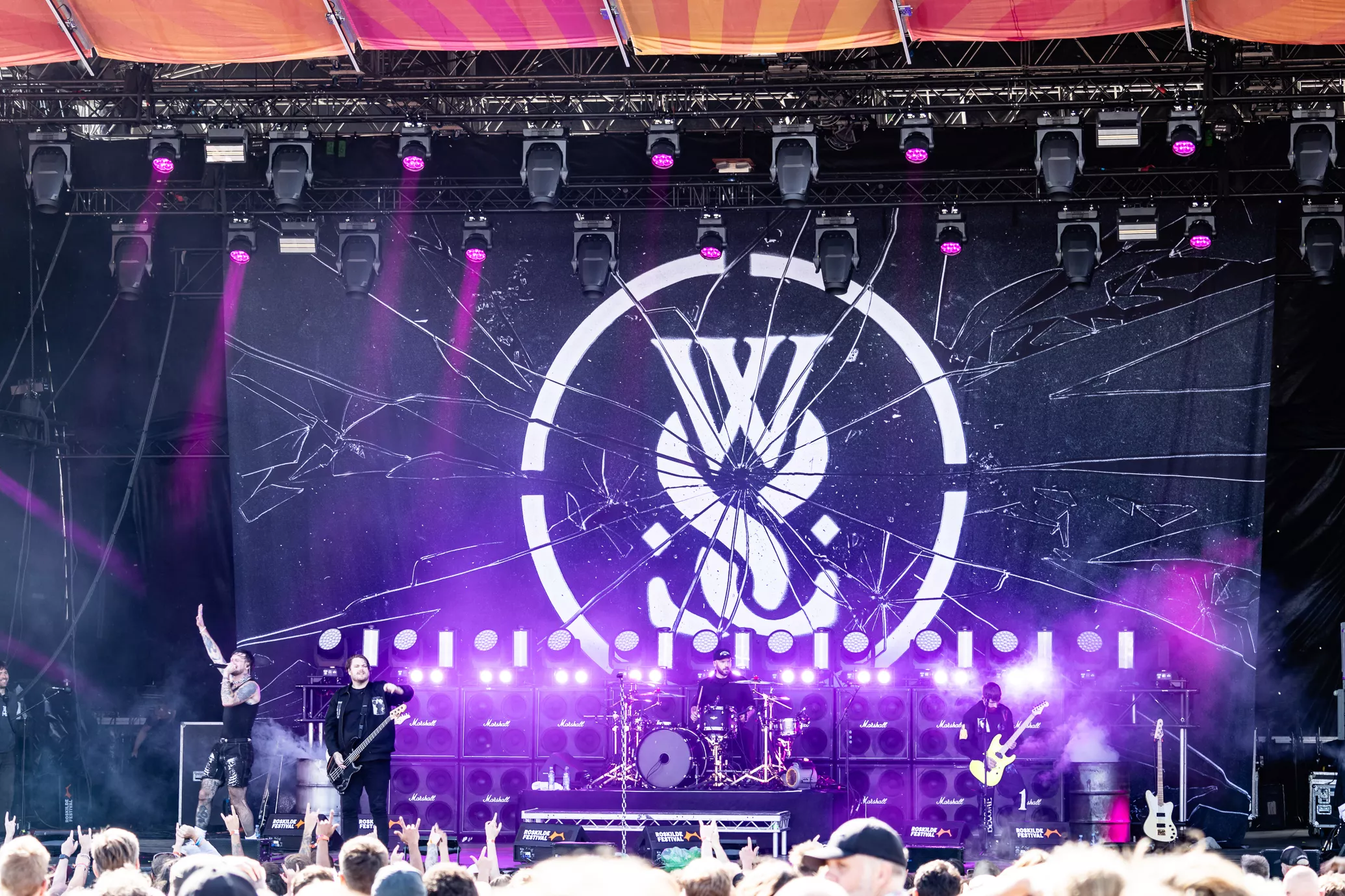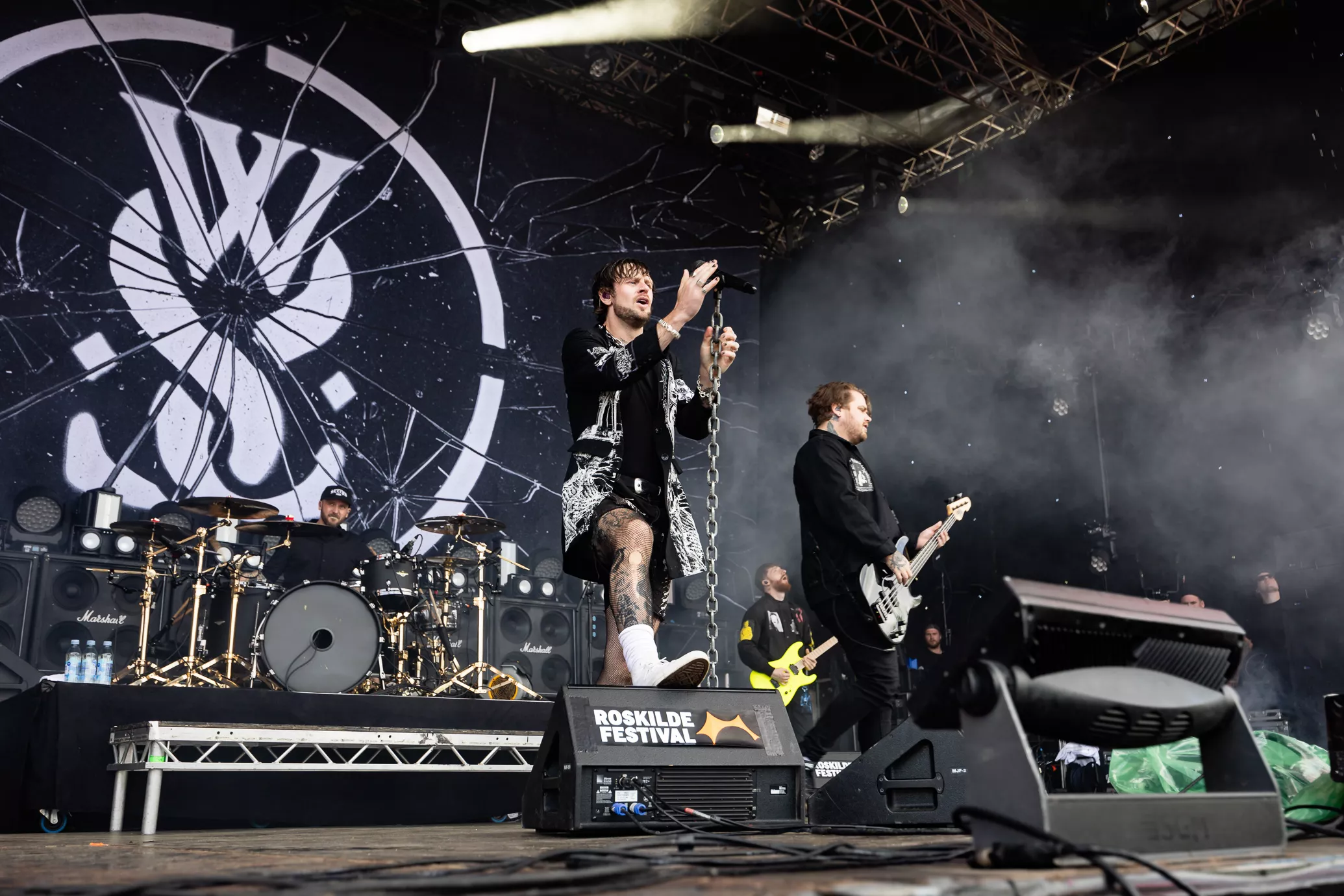 Mage til udfordringer skal man lede længe efter på Roskilde. Først blev de 20 minutter forsinkede, fordi scenen var direkte usikker med projektører i toppen af scenen, som sad løst. Dernæst flød regnvand opsamlet i toppen af scenen ned i kaskader. Ikke godt.
