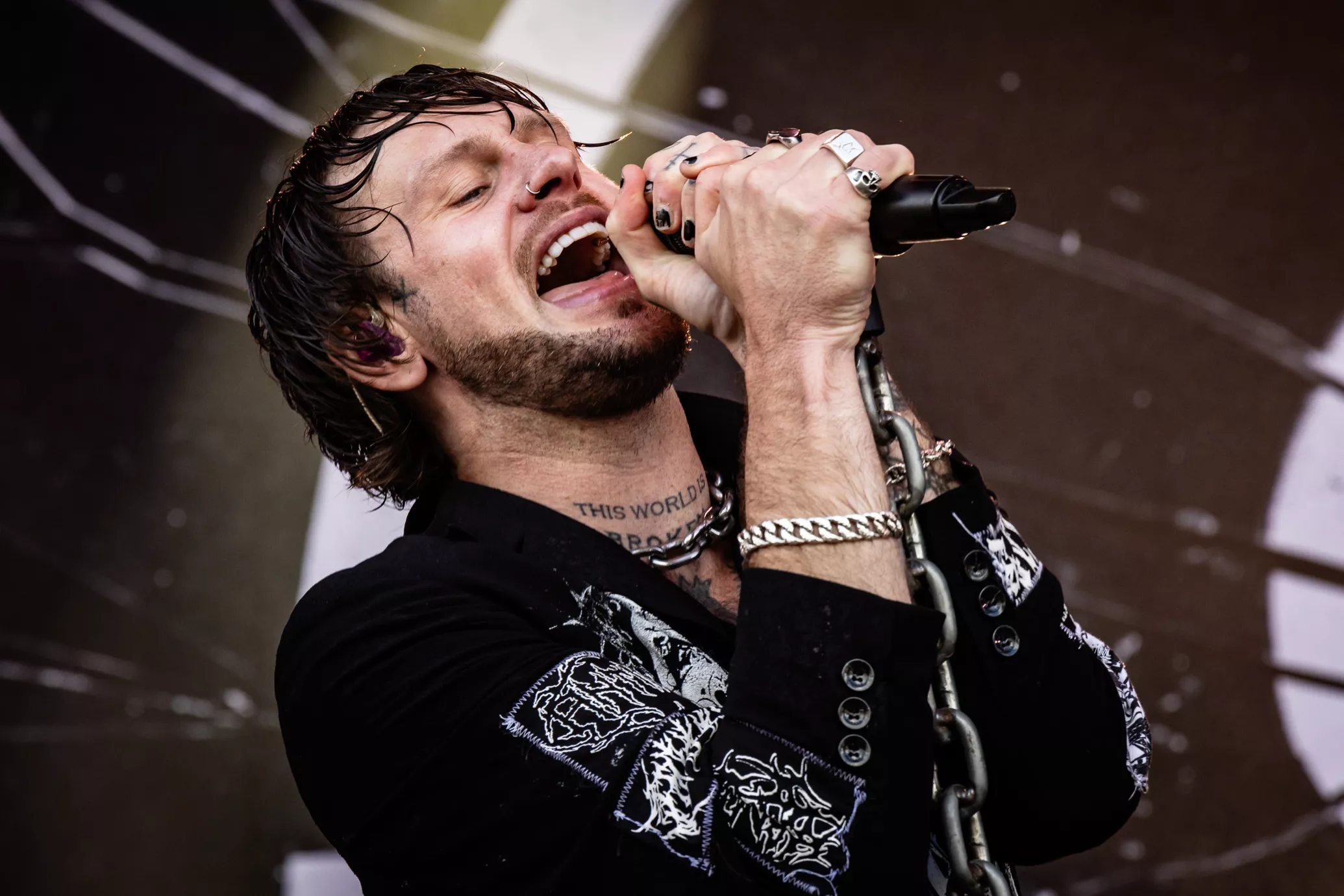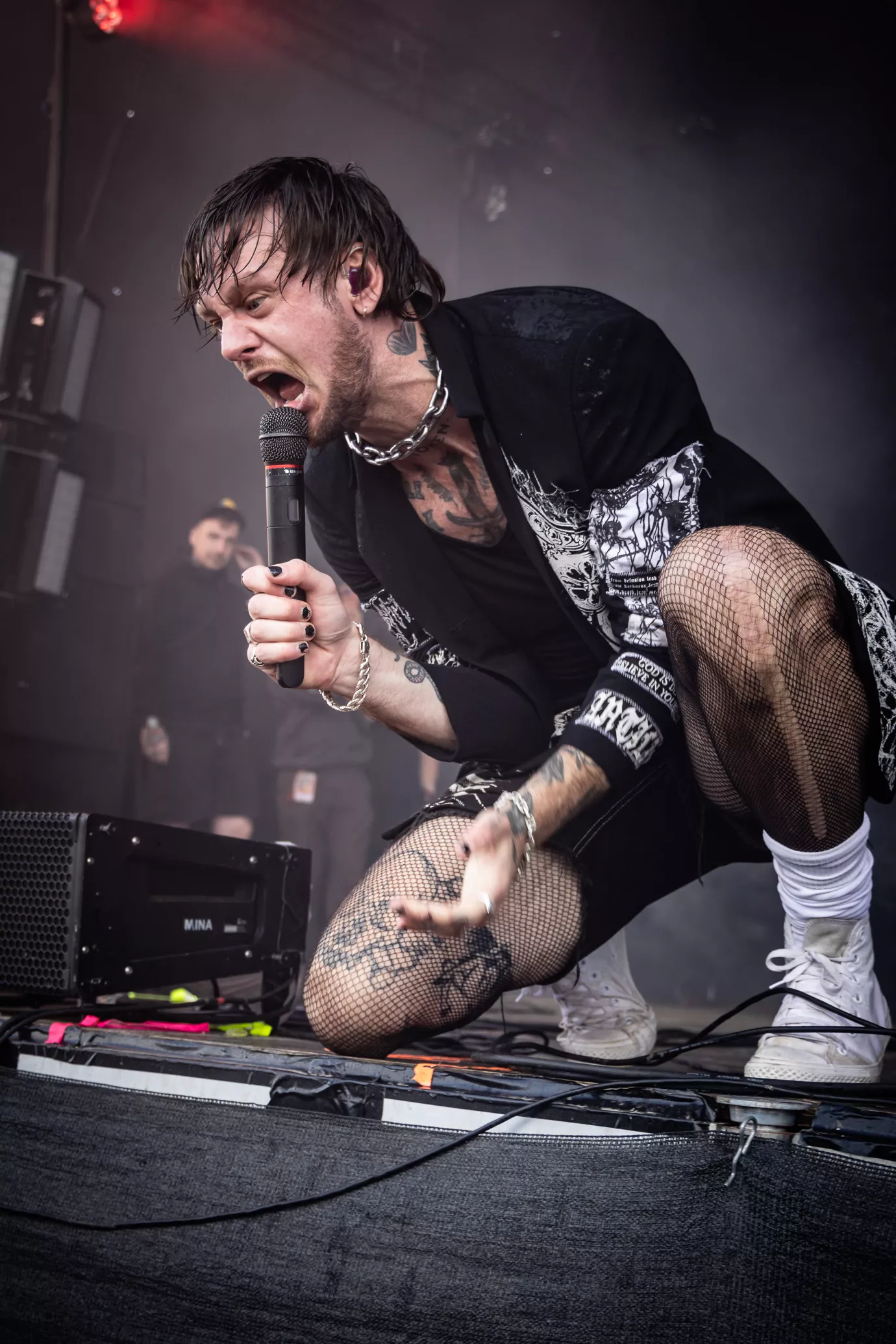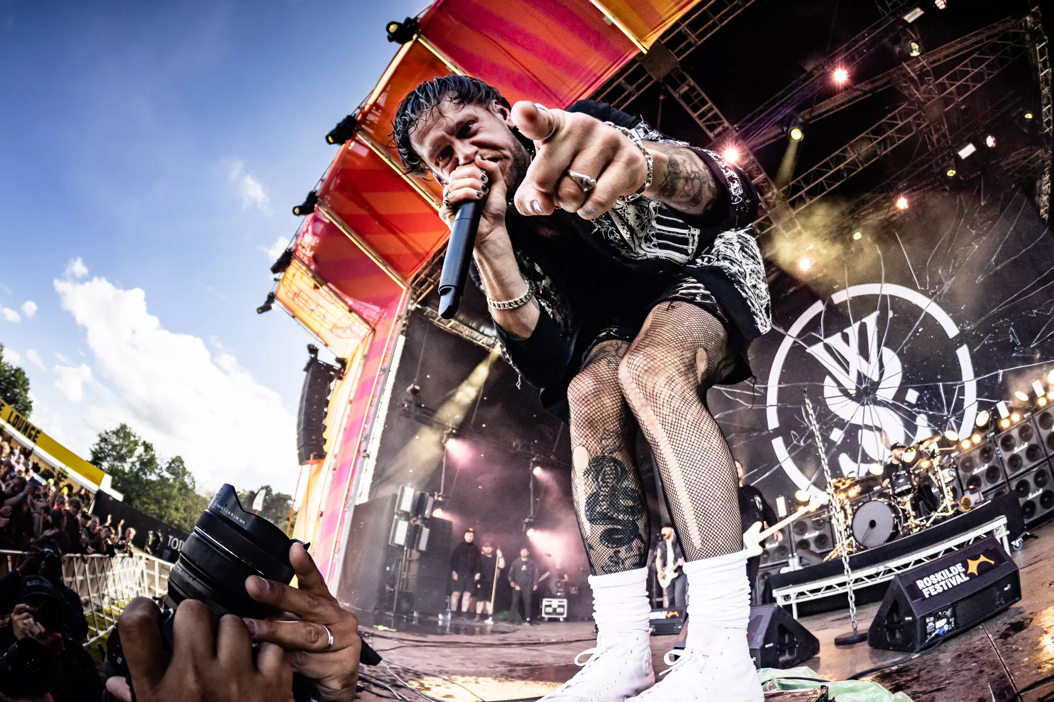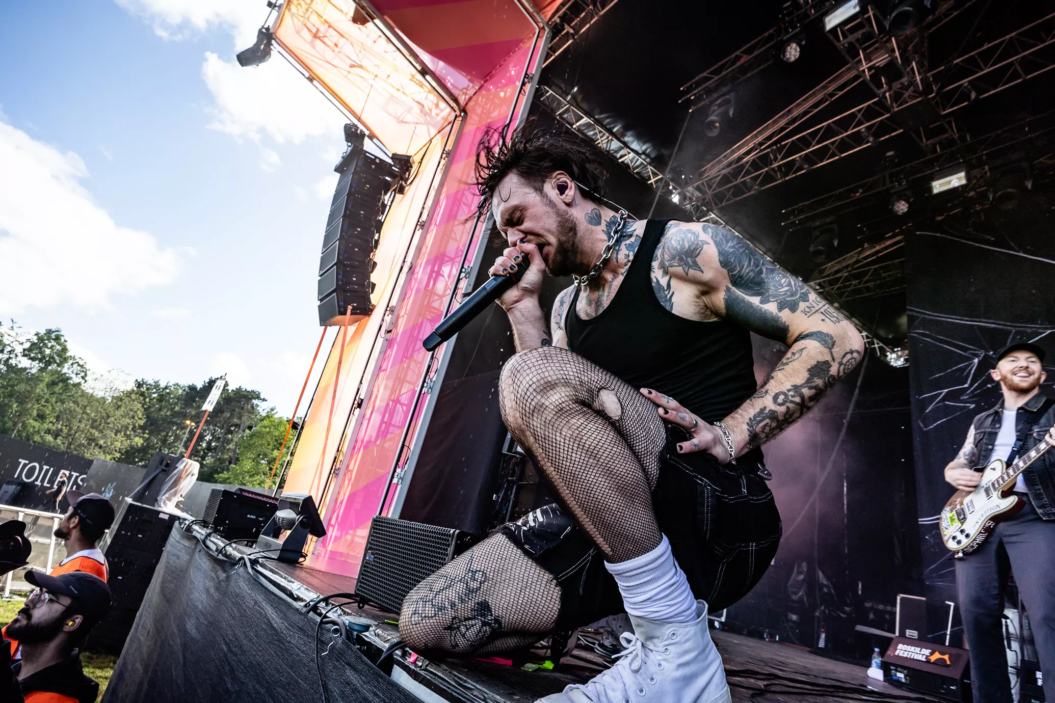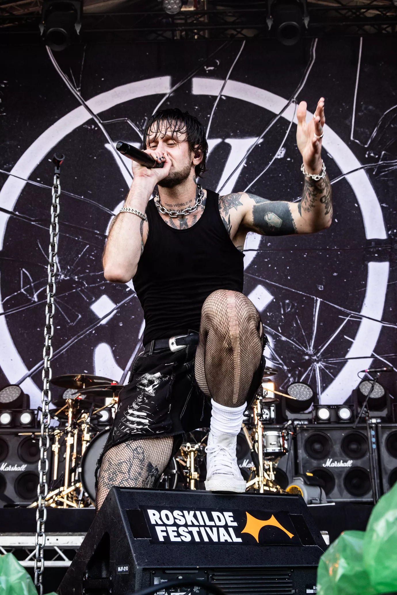 Mage til udfordringer skal man lede længe efter på Roskilde. Først blev de 20 minutter forsinkede, fordi scenen var direkte usikker med projektører i toppen af scenen, som sad løst. Dernæst flød regnvand opsamlet i toppen af scenen ned i kaskader. Ikke godt.