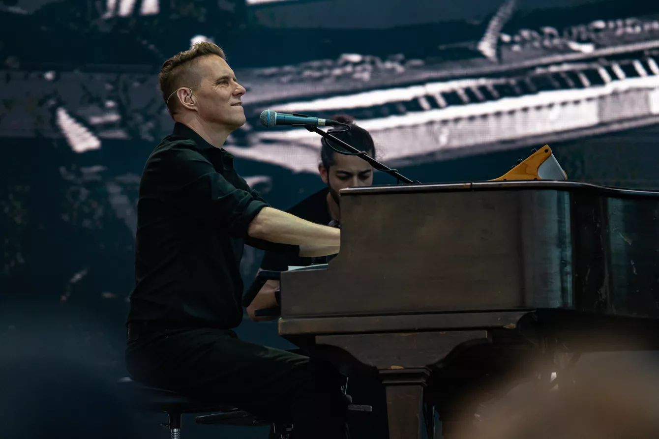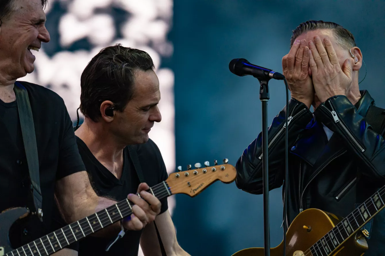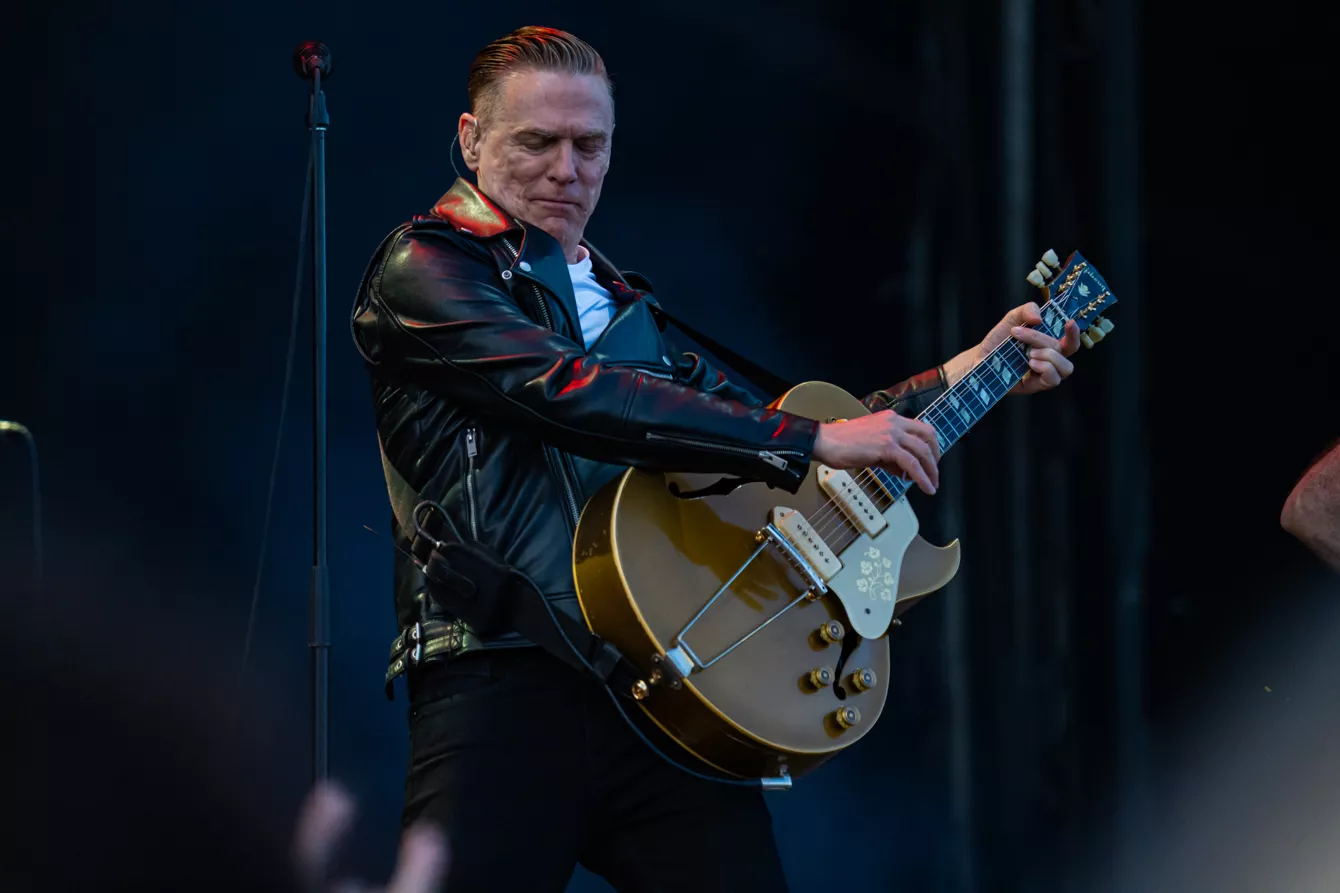 Det er heldigvis yderst sjældent, at kunstnere begynder før tid på en festival, men fem minutter før annonceret programstart, mens publikum stadig er ved at finde vej fra den netop afsluttede Rasmus Seebach-koncert på modsatte scene, løber Bryan Adams ind på scenen, råber ”Let there be guitar”, og