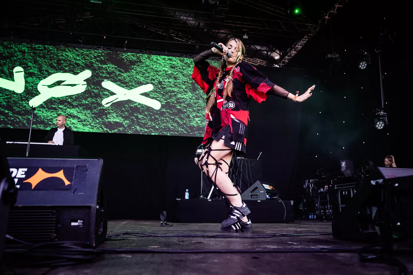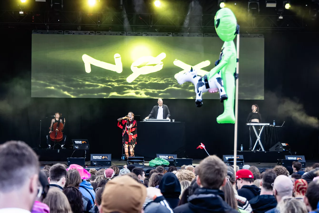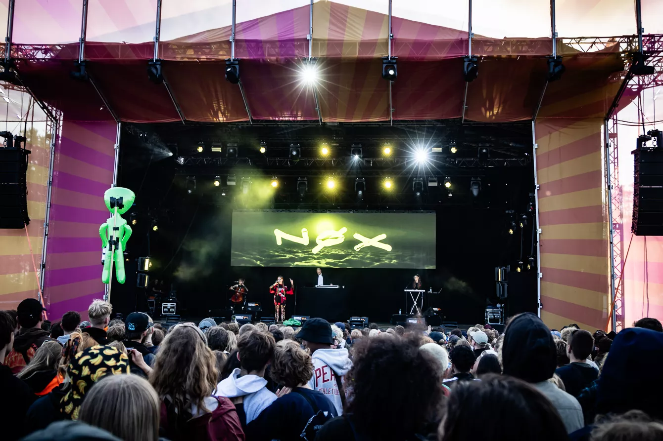 Det virker meget passende, at smatten har meldt sin ankomst på Roskilde samtidig med Nøx. Efter en drivvåd formiddag, hvor regnen nådesløst smadrede gennem pavillonerne, er festivalgængerne trukket i gummirøjsere og regnjakker. Men inden under er der alligevel glimt af pailletter og guldkjoler. Roskildes