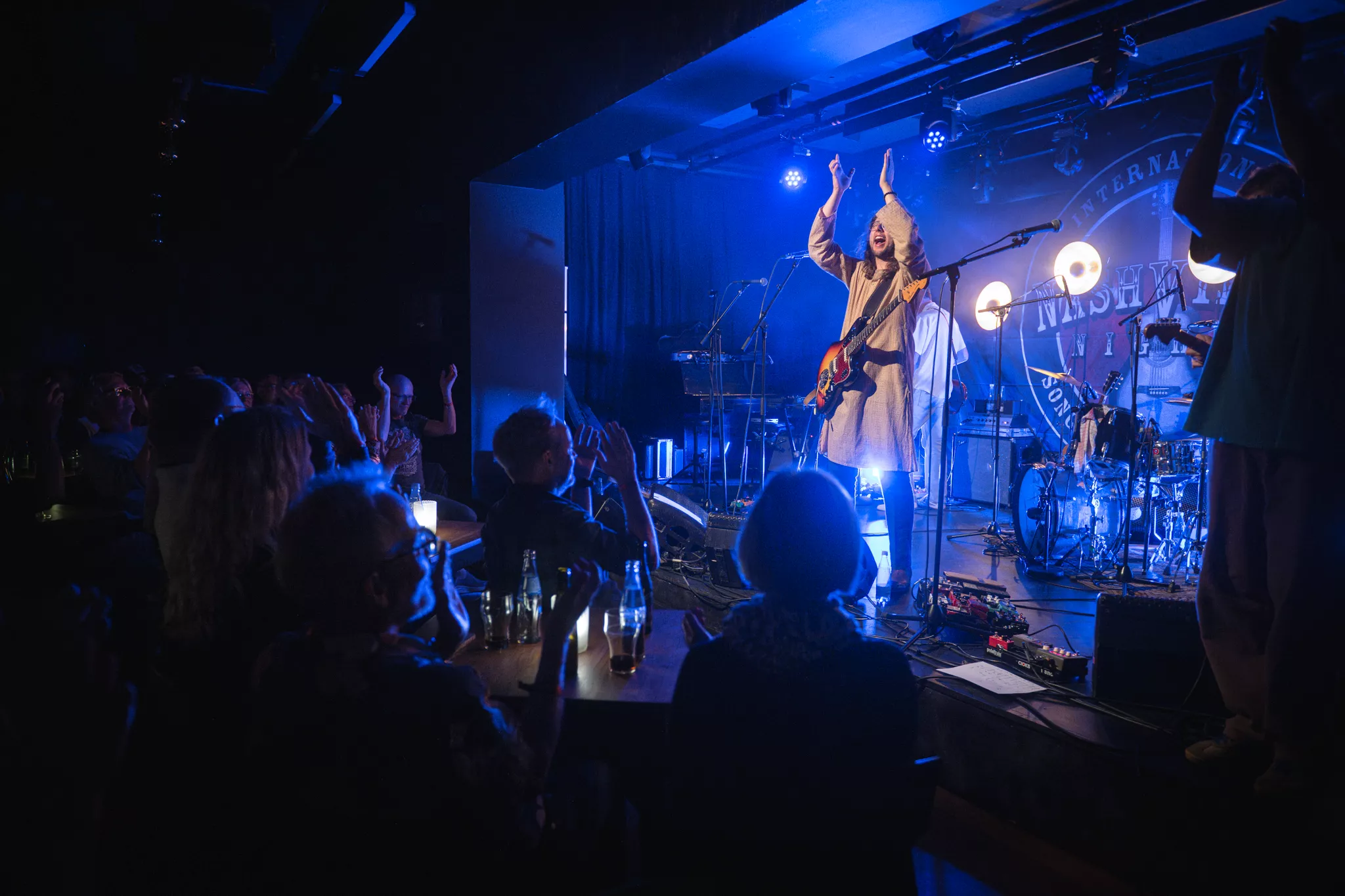 19:32. Frølageret har ikke været så proppet siden - ja, det er svært at sige. Godt nok er det en siddekoncert. Men fred være med det. Der er ikke megen plads at boltre sig på i den mellemstore venue. Det skal bandet sande ved koncertens slutning.