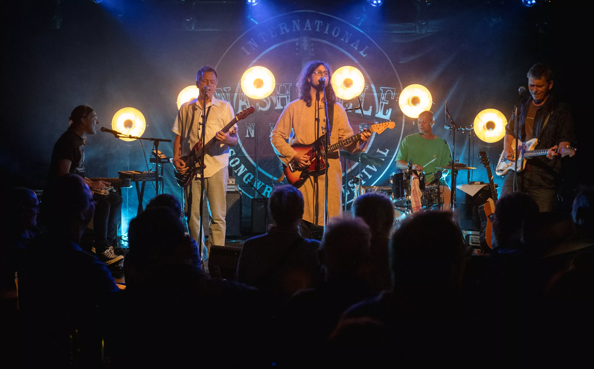 Mukherjee Development er en california-rocket americana-kvintet skabt under død og ødelæggelse. Covid, Putin, heksekedler i mellemøsten, et busted knæ og Tinder i dvale. Ja, verden er et crazy sted. Orkestret har udgivet to albums: Burnin' Time (2022) og Should I Dance for You (2023). Og disse danner til aften rygraden i det fem kvarter lange sæt på førstedagen af den odenseanske roots-festival, Nashville Nights International Songwriters Festival.